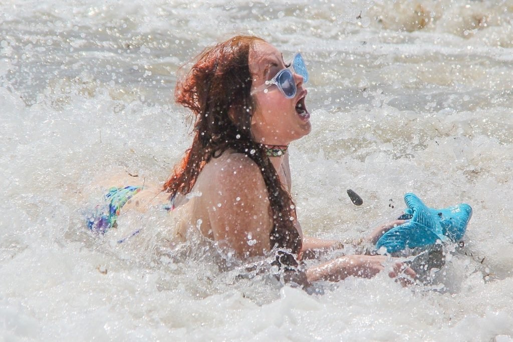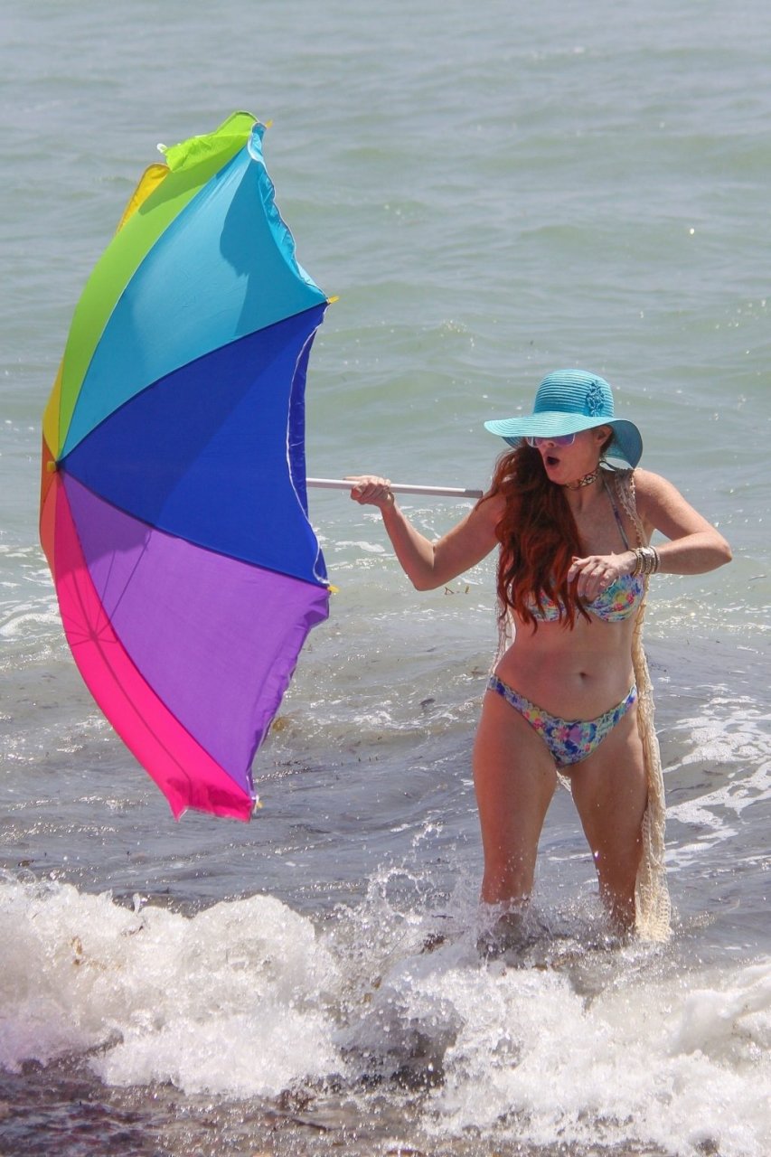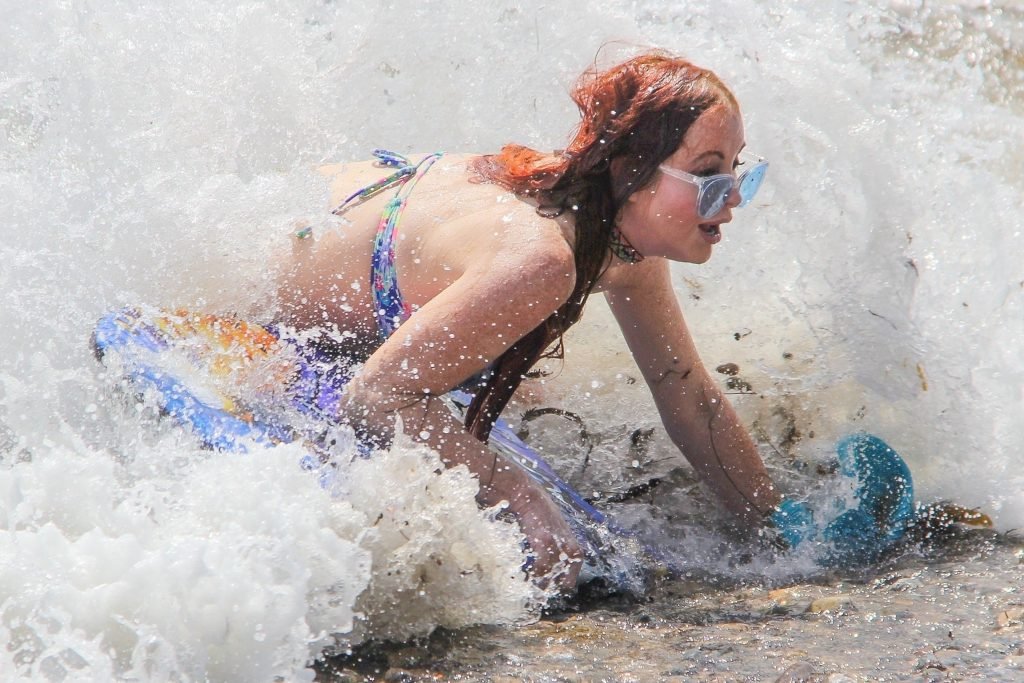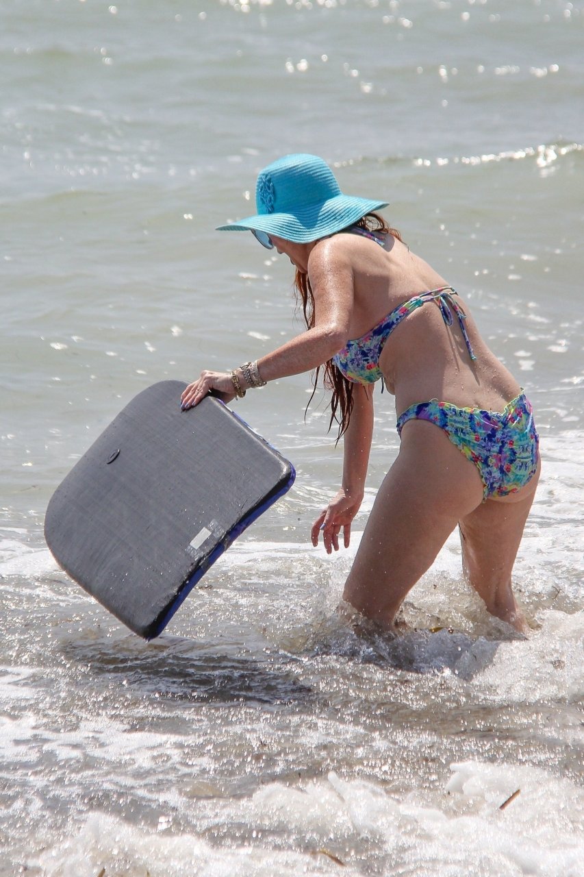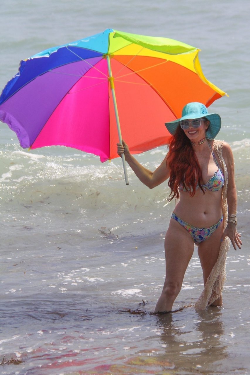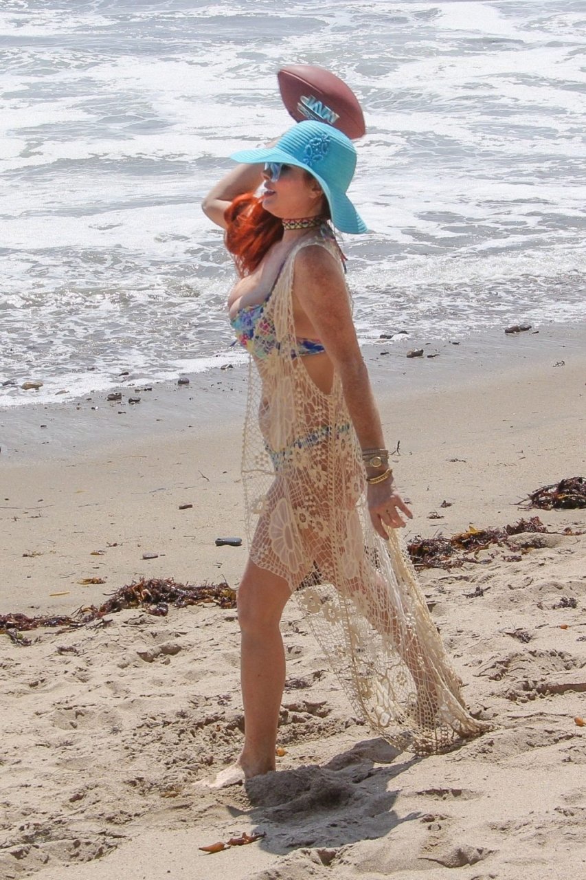 Пышногрудая MILF, бывшая актриса Фиби Прайс наслаждается остатком лета с хорошей подругой Марселой Иглесиас на пляже в Малибу, 21.08.2018.