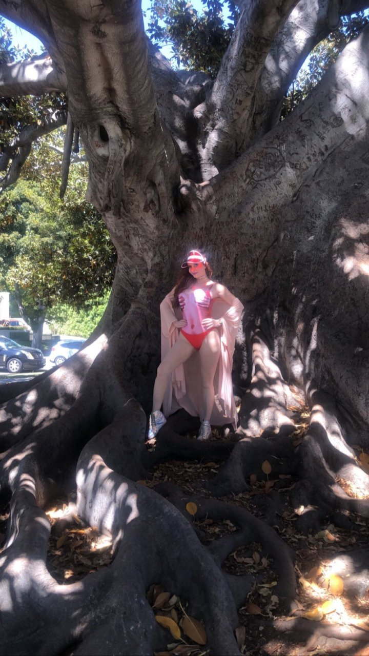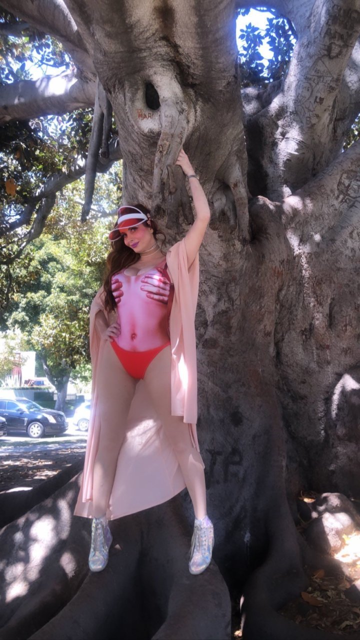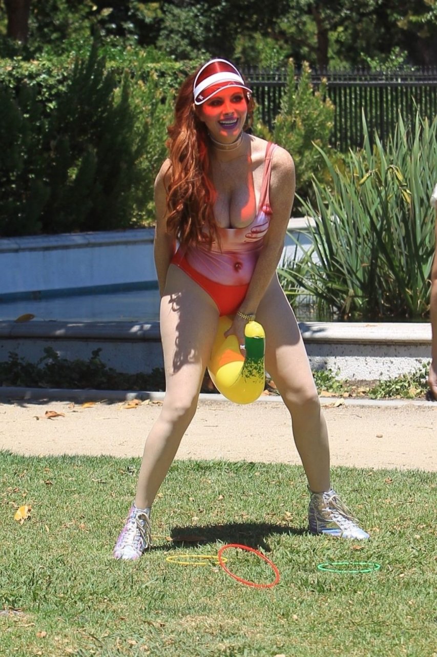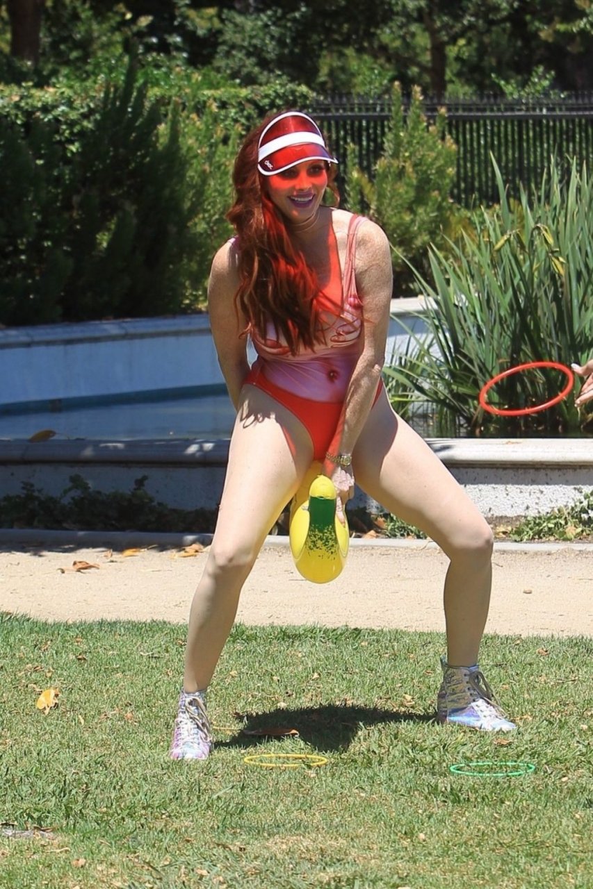 Фиби Прайс и Марсела Иглесиас весело проводят время в парке в Беверли-Хиллз и демонстрируют смелый образ в красных боди, 15.08.2019. Фиби, пора поиграть с “обычным” бананом!