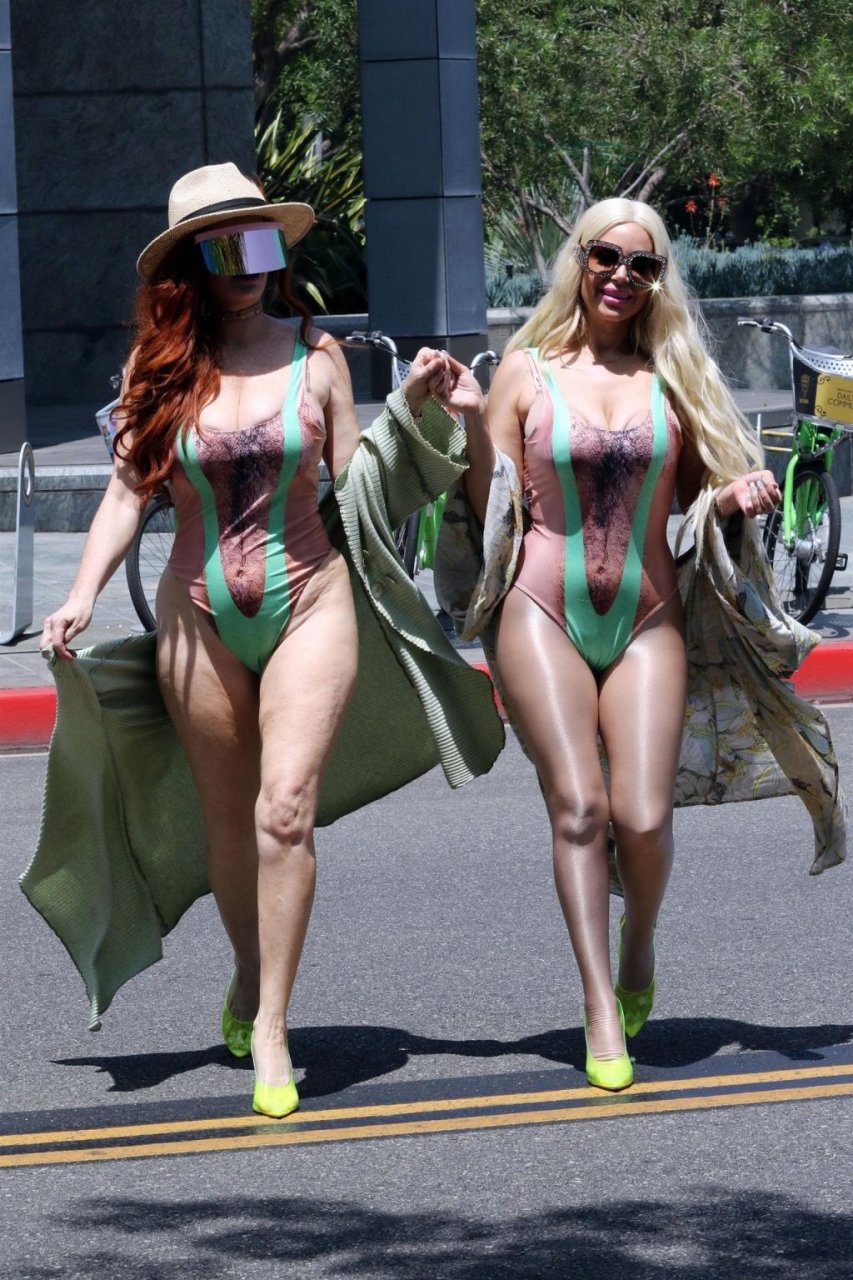 Фиби Прайс и её подруга Марсела Иглесиас в манкини, вдохновлённых Боратом, катаются на велосипедах в WeHo Pedals в Уэст-Голливуде, 31.07.2019. Эти женщины могли бы устроить горячую ню фотосессию в постели!