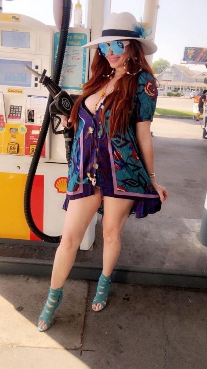 Wannabe актриса Фиби Прайс выглядит так, будто забыла штаны, чтобы бегать по делам в Лос-Анджелесе, 05.06.2019. Вечно стремящаяся актриса выгуливала свою собаку, а затем заправлялась бензином в том, что выглядело как бирюзовое нижнее белье с яркой рубашкой.