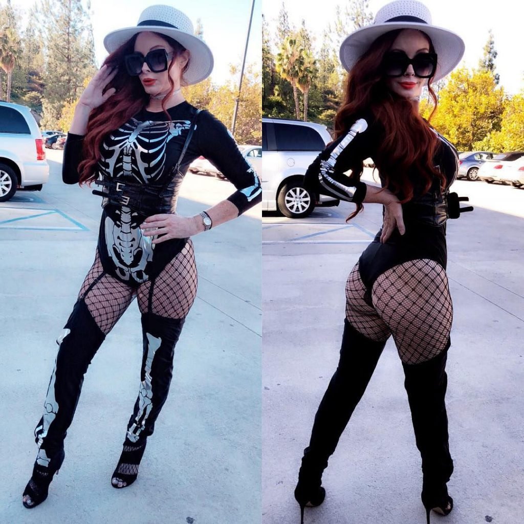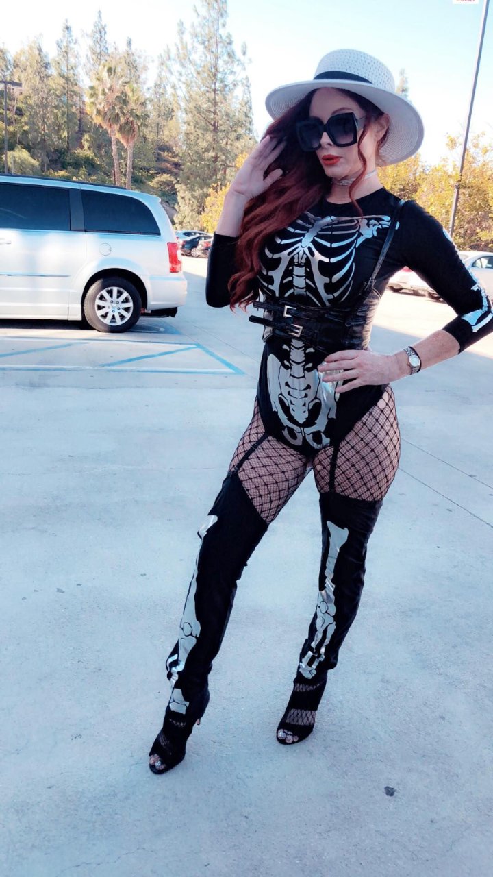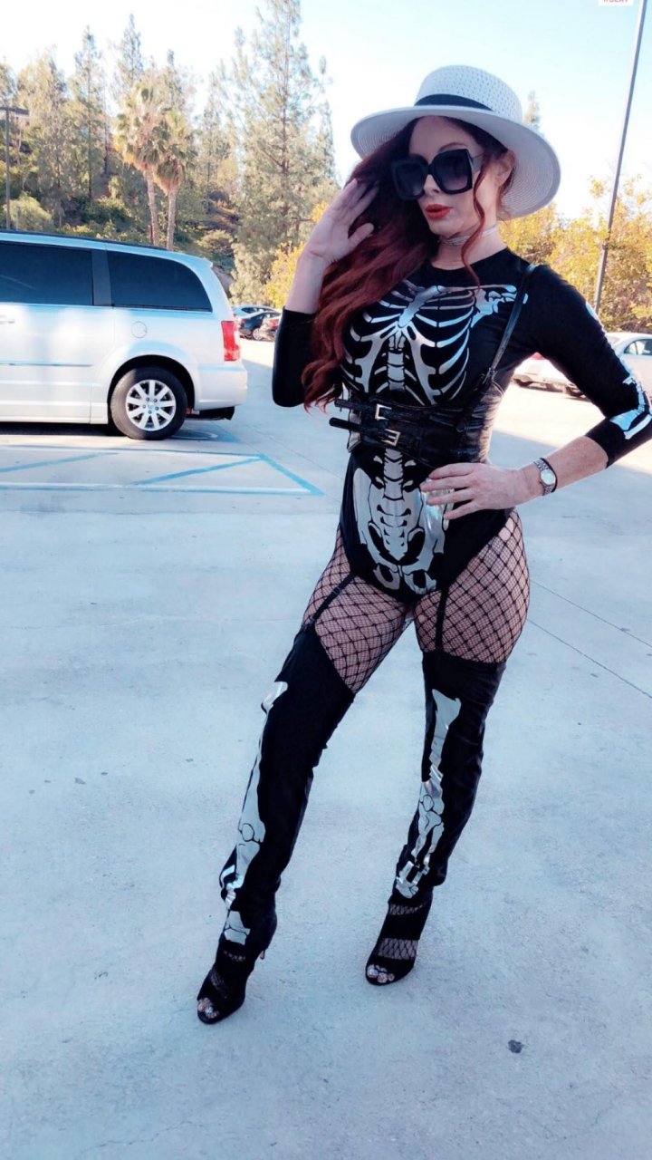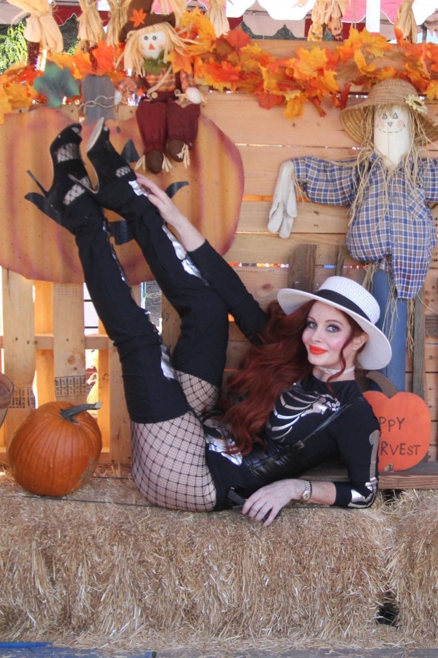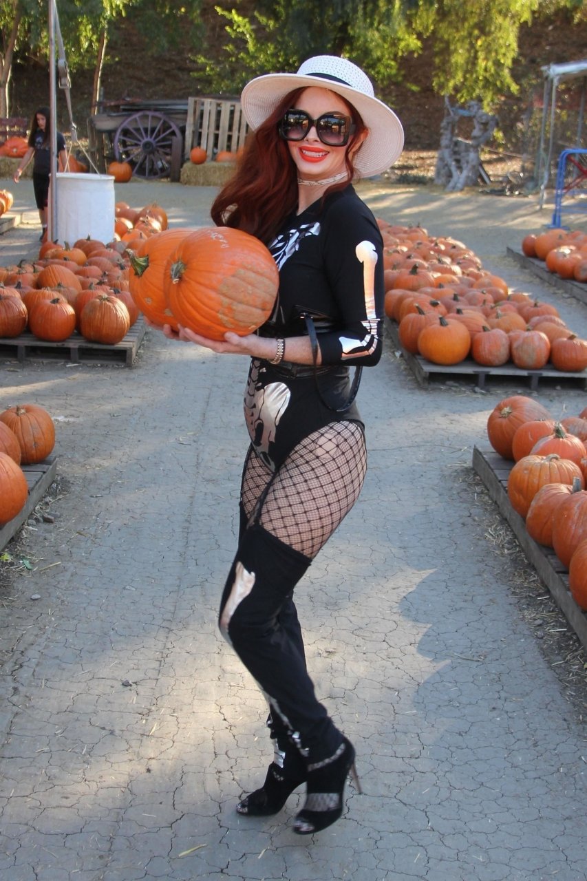 Актриса Фиби Прайс была замечена позирующей в костюме скелета на тыквенной ферме в Лос-Анджелесе, 17.10.2018.
