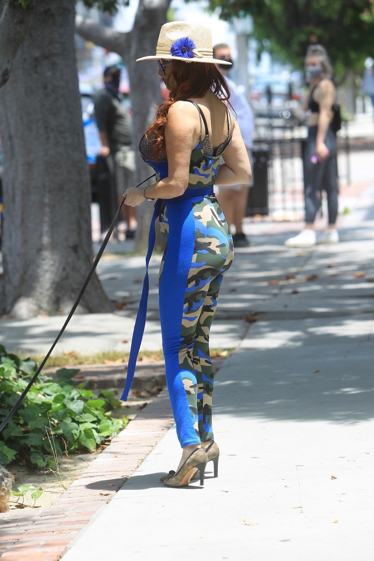 Пышногрудая актриса Фиби Прайс выгуливает свою собаку в Голливуде, 25.06.2020.