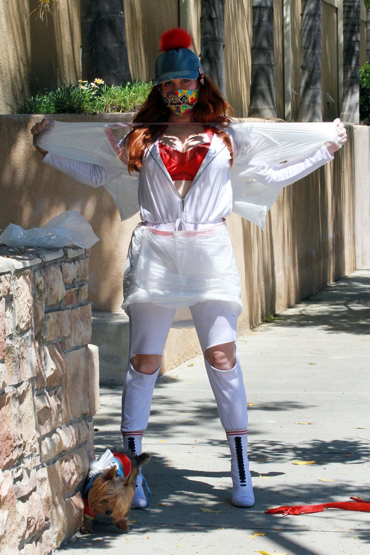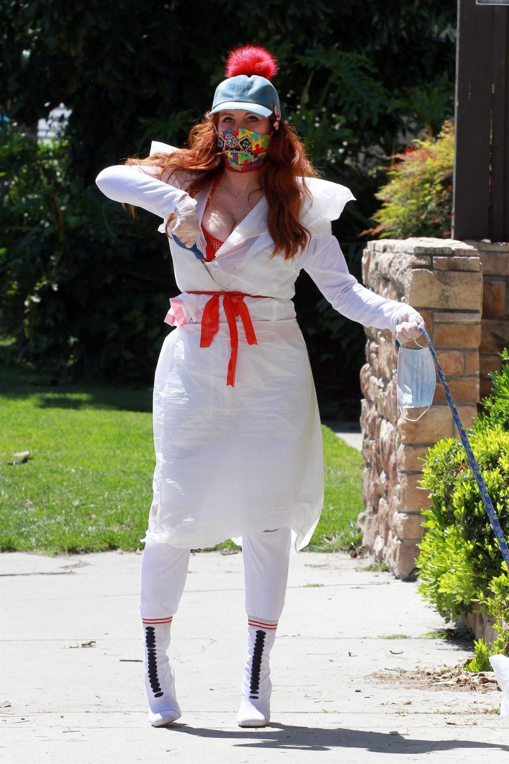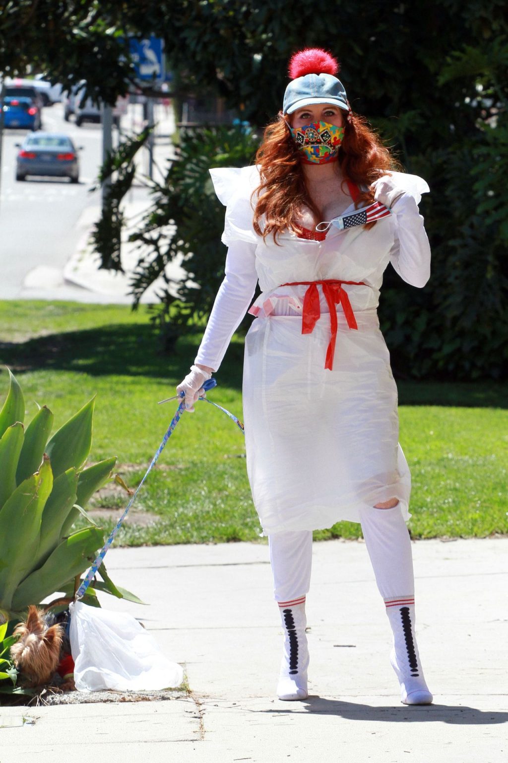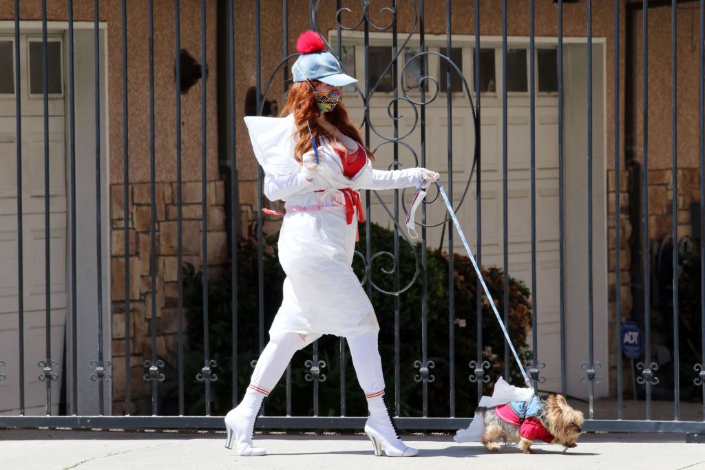 Актриса Фиби Прайс была замечена в самодельном платье из пластиковых мусорных пакетов в Лос-Анджелесе, 15.04.2020.
