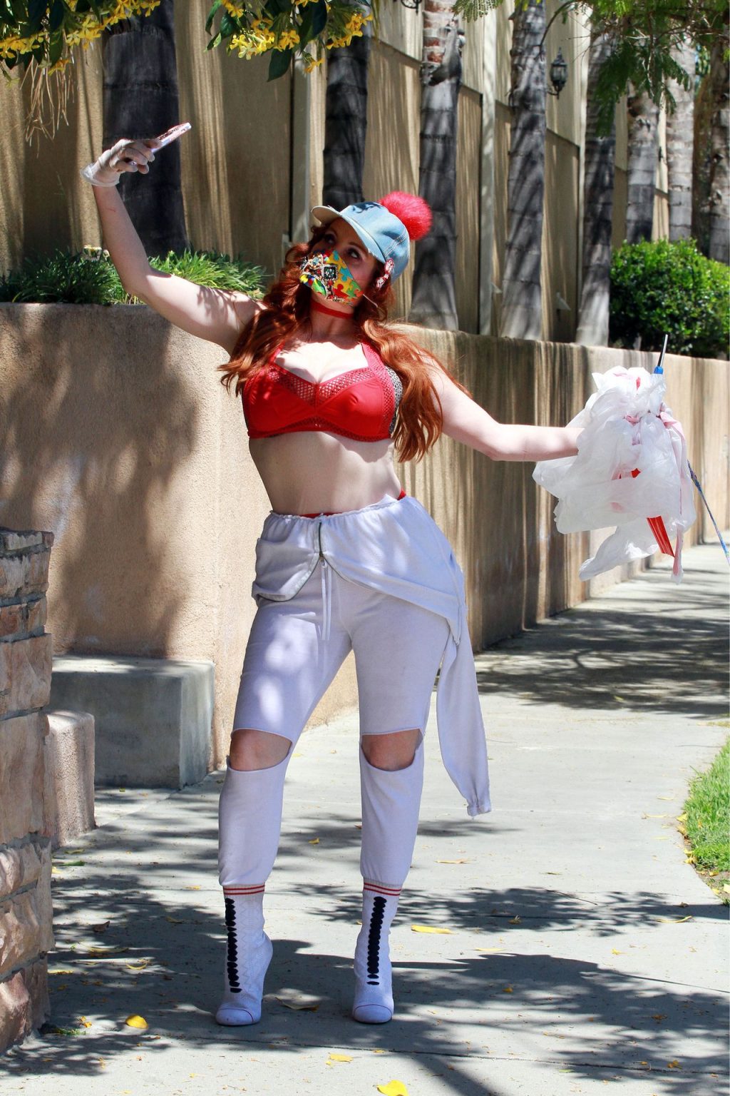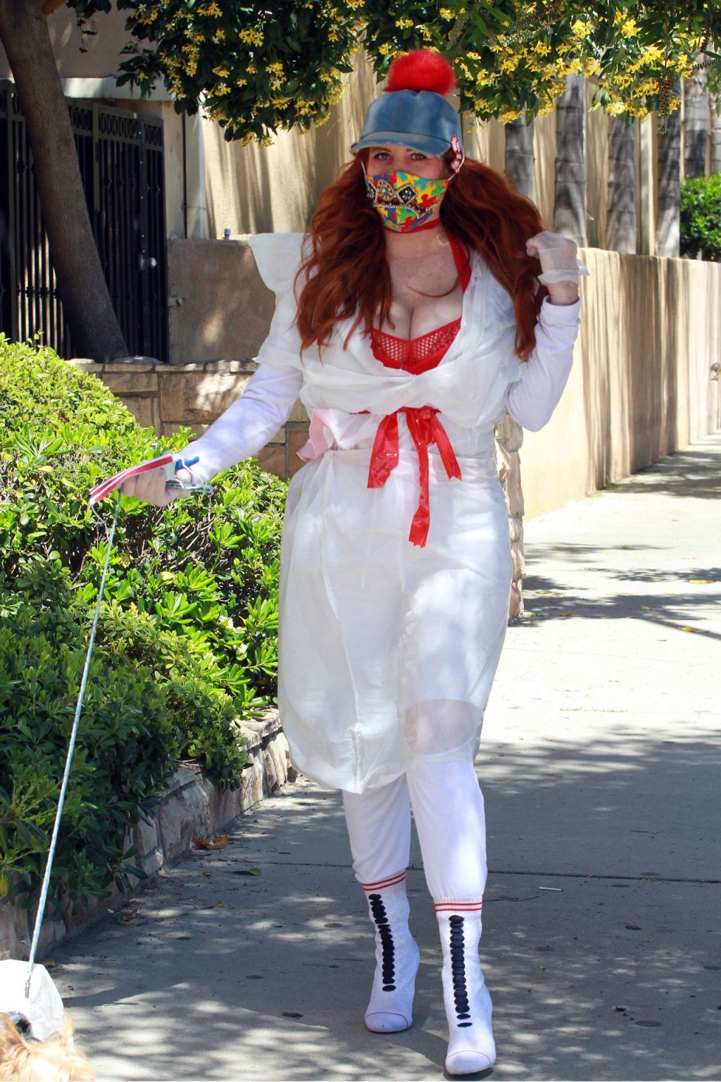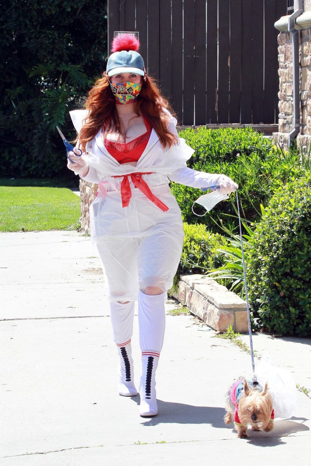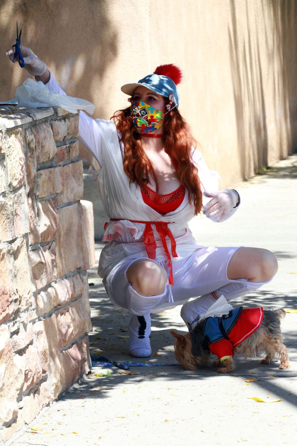 Актриса Фиби Прайс была замечена в самодельном платье из пластиковых мусорных пакетов в Лос-Анджелесе, 15.04.2020.