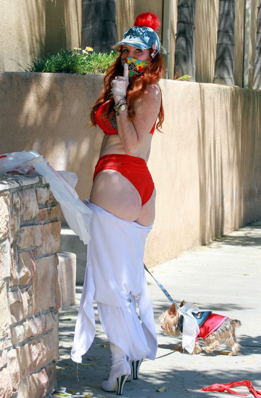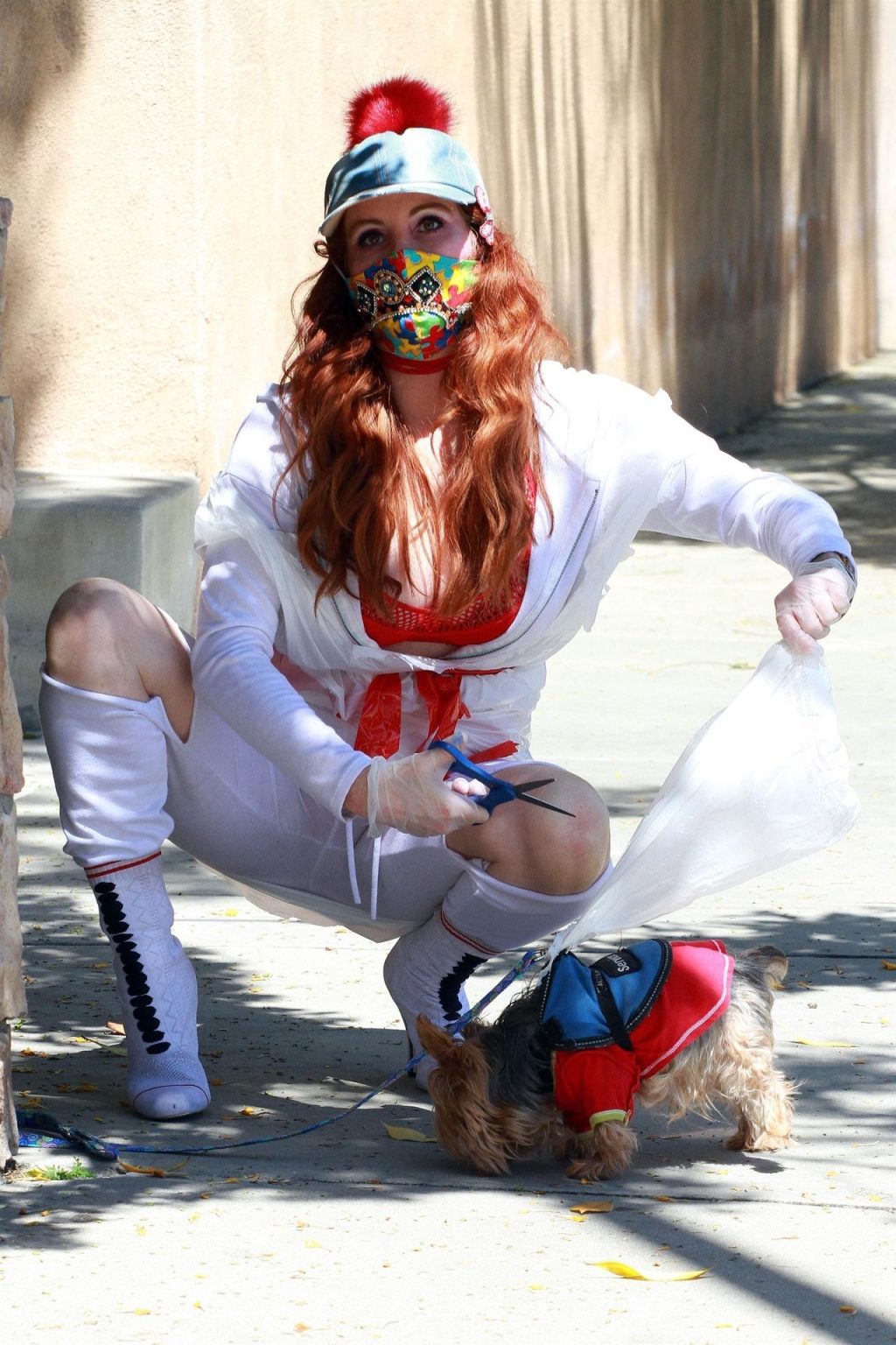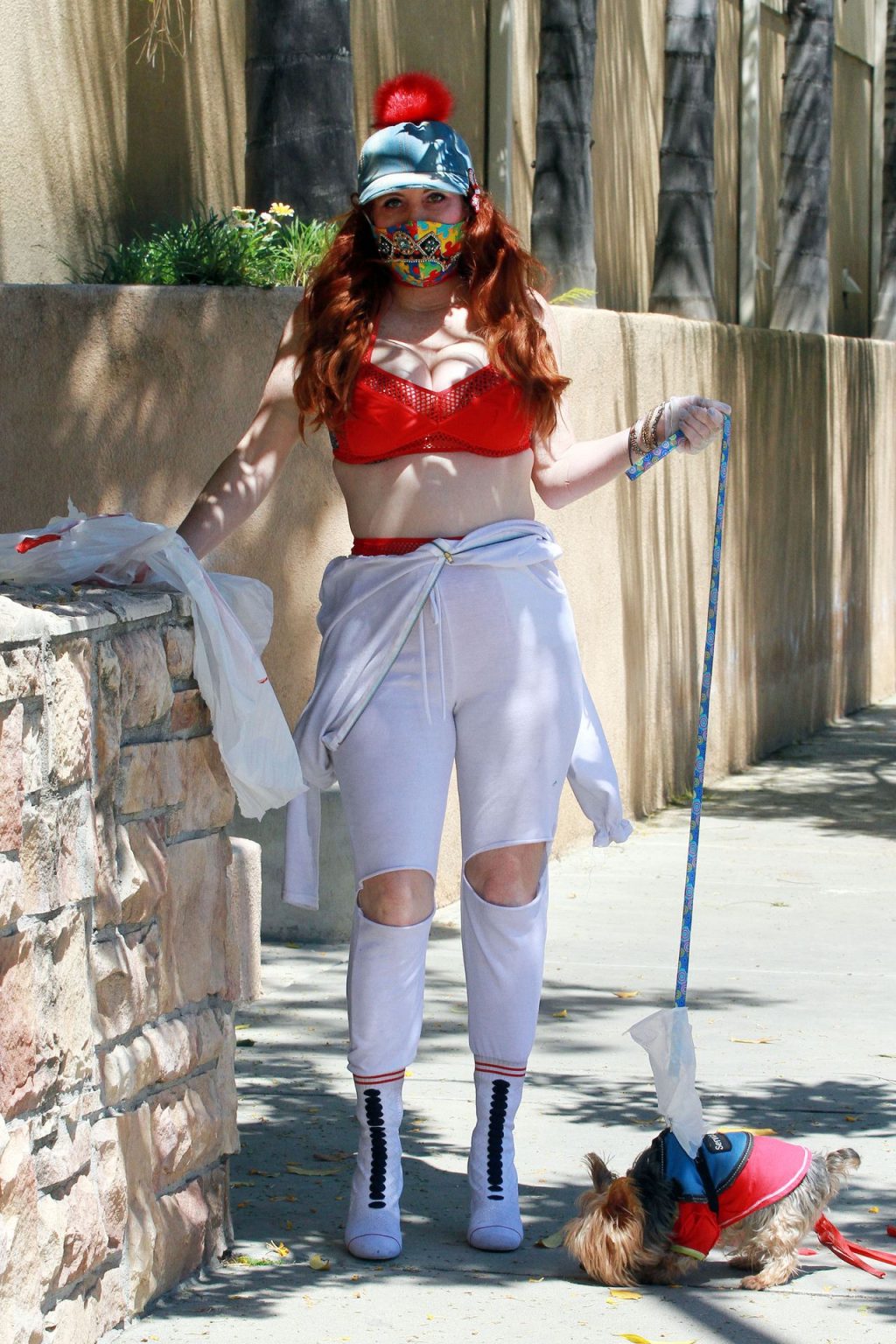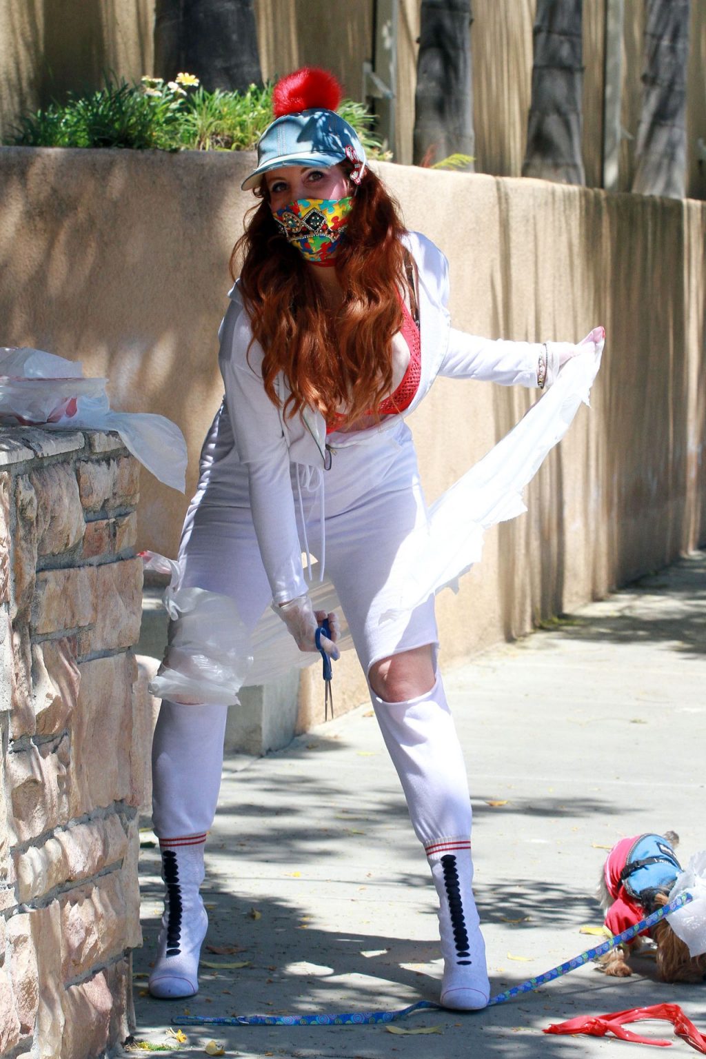 Актриса Фиби Прайс была замечена в самодельном платье из пластиковых мусорных пакетов в Лос-Анджелесе, 15.04.2020.