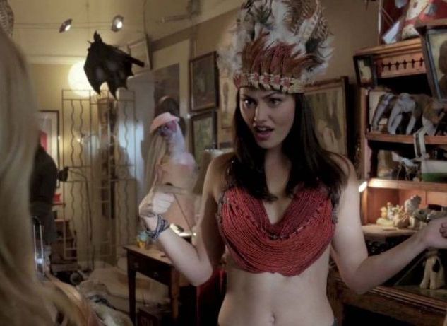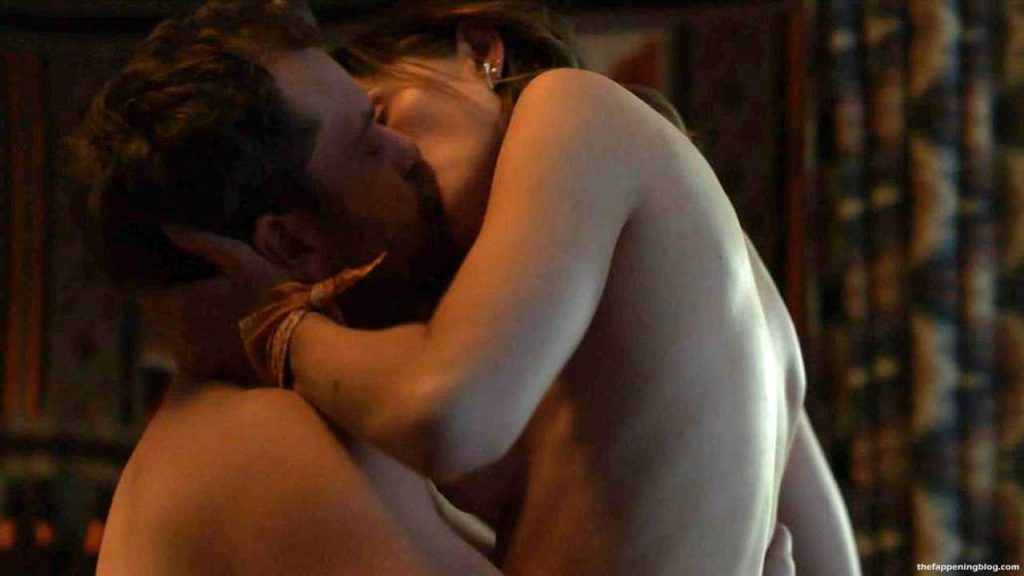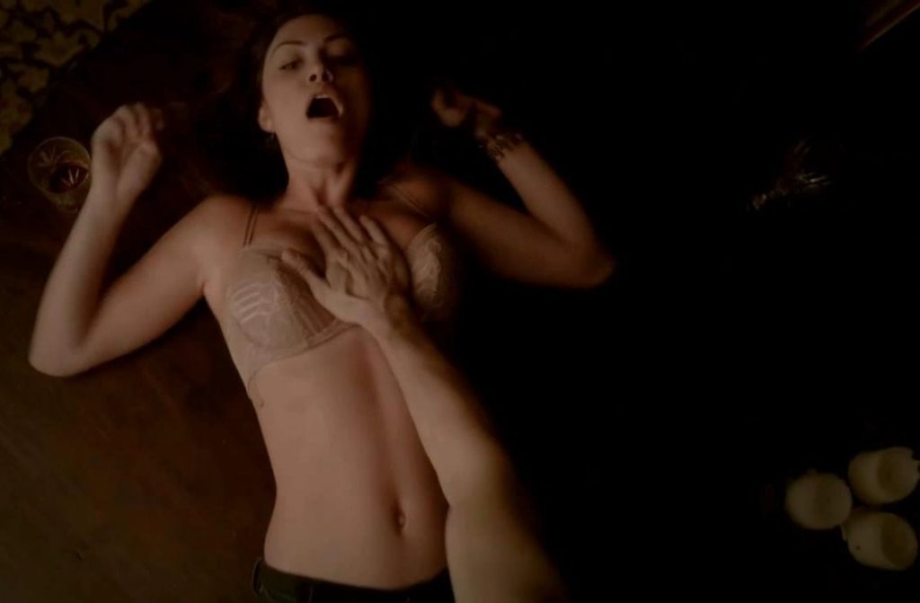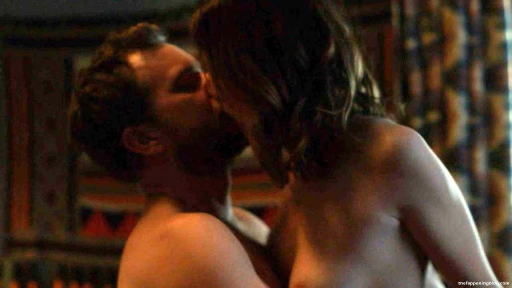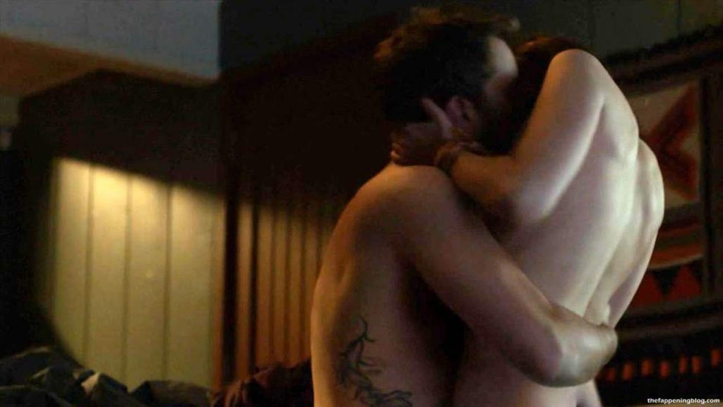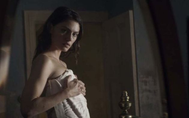 Phoebe Tonkin is dropping the towel and walking topless into a room, giving us a good look at her breasts before she wraps her arms around the guy and kisses him. She is lying in bed with a guy, resting her head on his shoulder as she shows some cleavage. She then sits up, revealing her breasts before she gets out of bed.