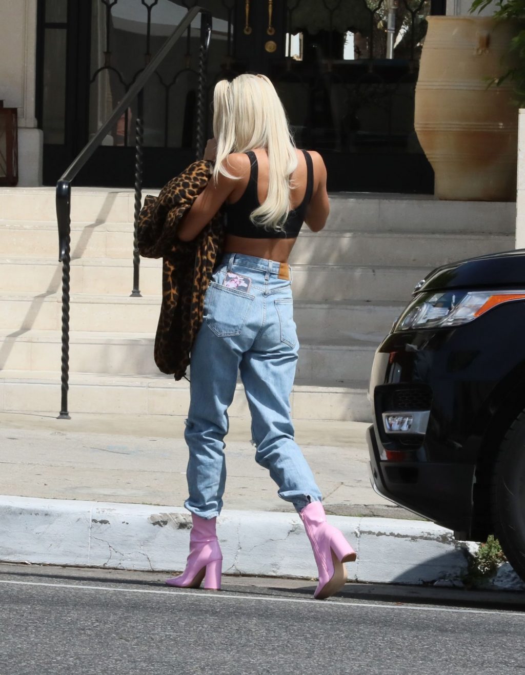 Гуамская певица была замечена в отеле Cara в Голливуде, показывая плоский живот в майке, приветствуя свою подругу.