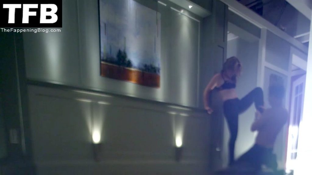 Пайпер Перабо, известная по фильму “Койот Угли“, целуется с парнем, который снимает с неё рубашку, открывая чёрный бюстгальтер, затем прижимает её к стене и целует по телу, после чего опускается на колени, чтобы снять её ботинки, но она пинает его на землю и забирается сверху — всё это происходит в художественно снятой сцене.