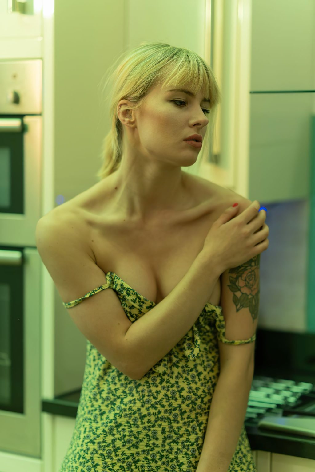 Блондинка модель Пиппа Долл демонстрирует свои татуировки и красивые сиськи на кухне в новой фотосессии от Фрэнка фон Марса (2020). Единороги существуют! 🦄