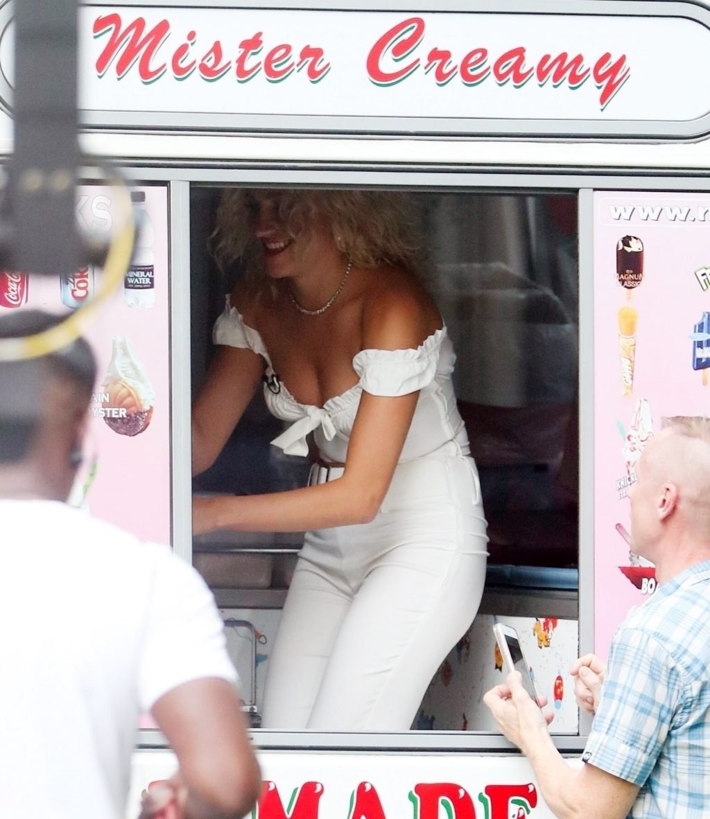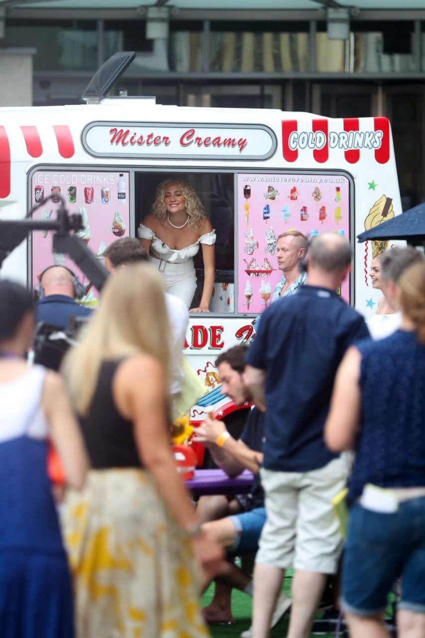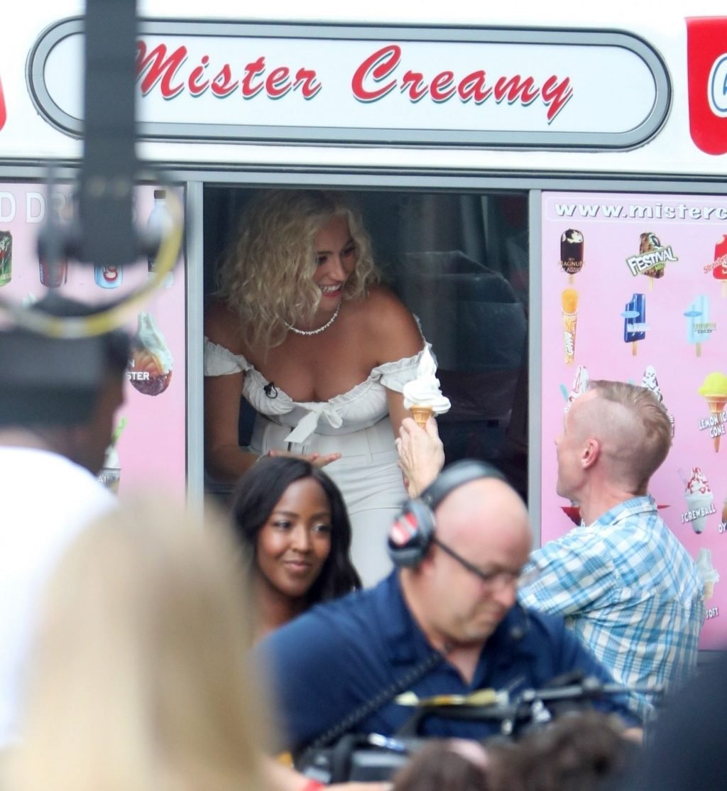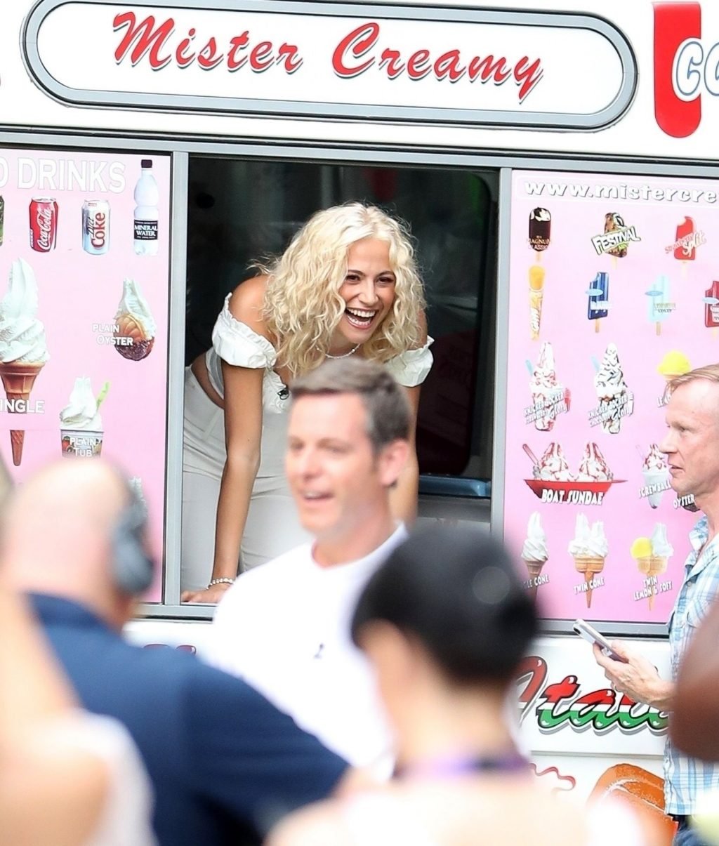 Pixie Lott появилась в очень откровенном образе, рискуя сбоем в гардеробе, пока раздавала мороженое в прямом эфире шоу The One Show в прайм-тайм – Лондон, 25.07.2019.
