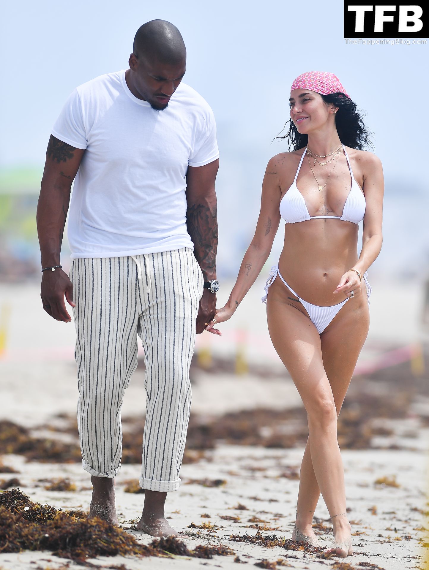 Николь Уильямс идет по пляжу после объявления о своей беременности во время 2022 Swim Week в Майами, Флорида, 17.07.2022. Николь Уильямс и ее муж Ларри Инглиш наслаждались днем на пляже, держась за руки.