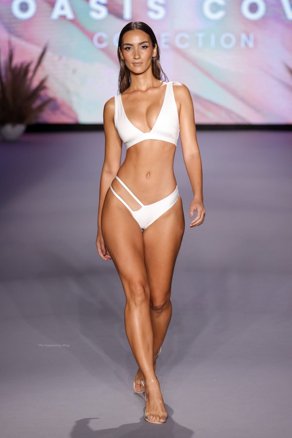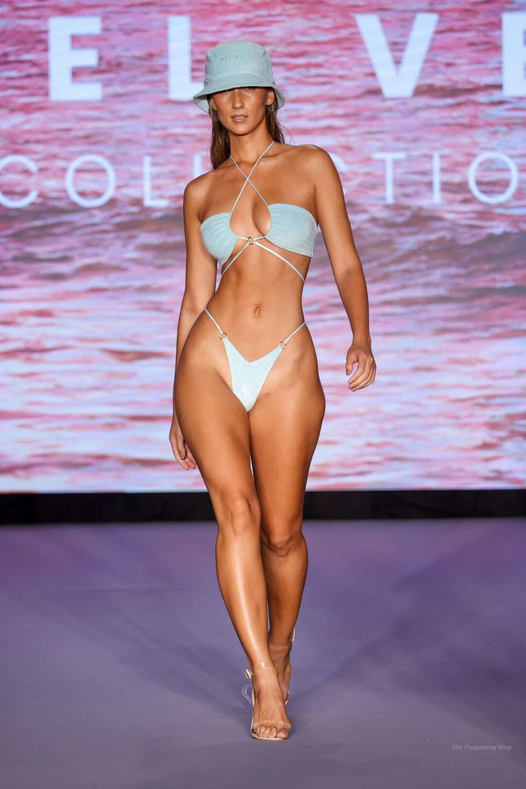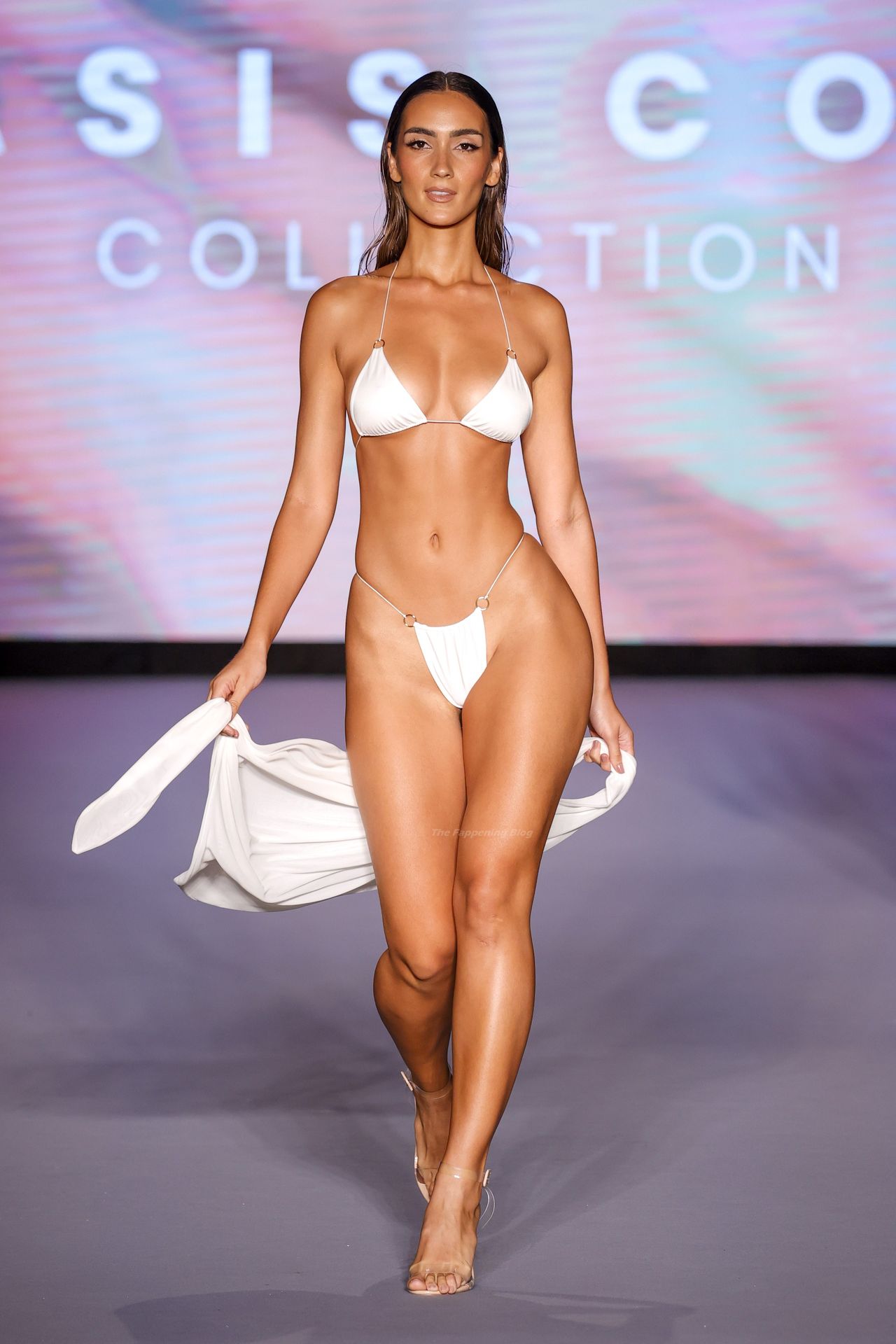 Бразильская модель, проживающая в США, Присцилла Рикарт запечатлена на подиуме, демонстрируя новую коллекцию бренда Neena Swim от Oh Polly во время Miami Swim Week в Майами, 07/09/2021.