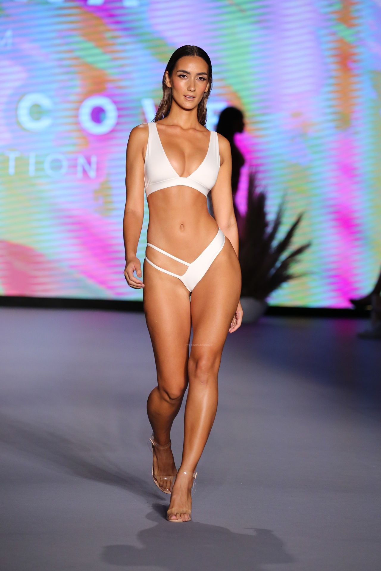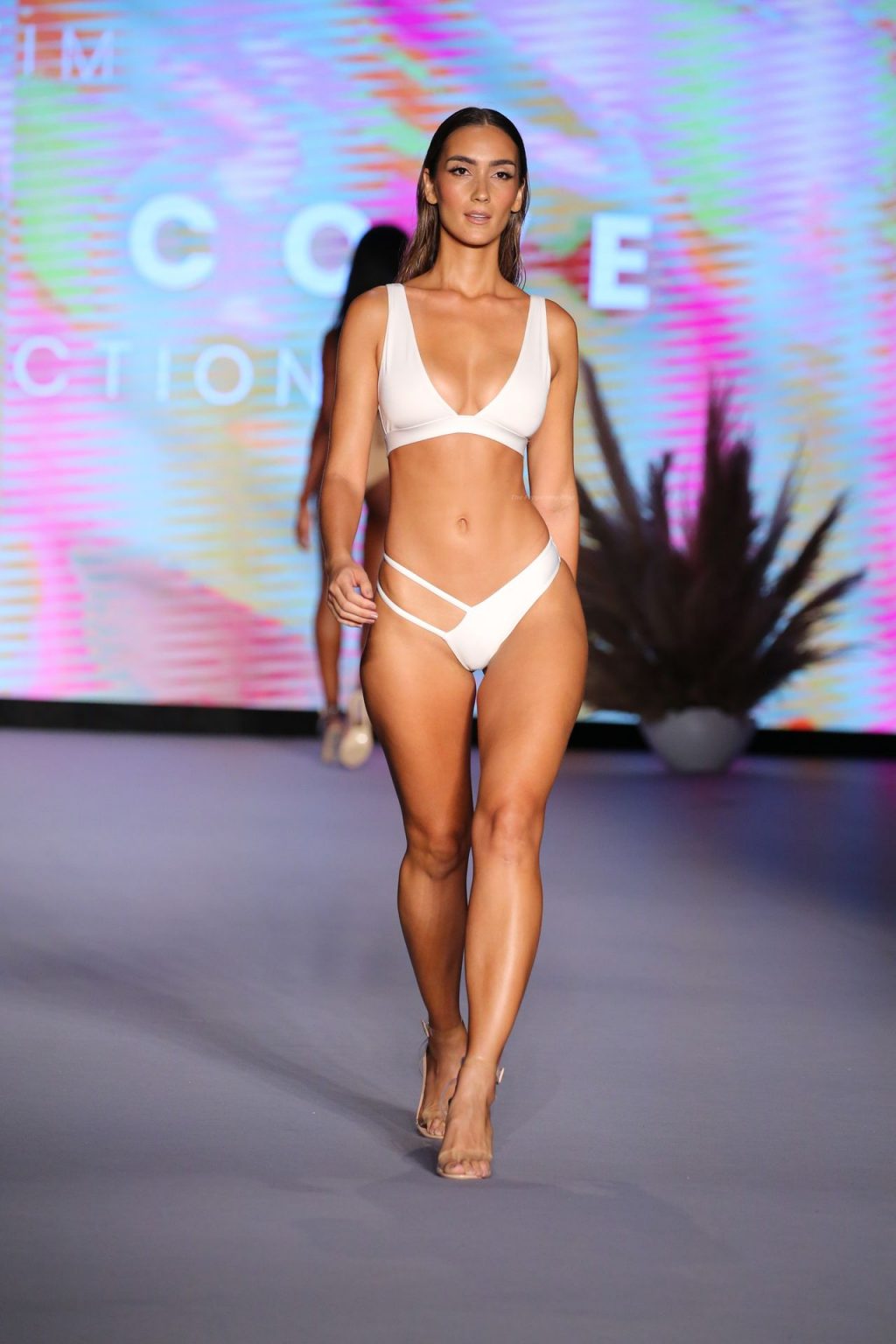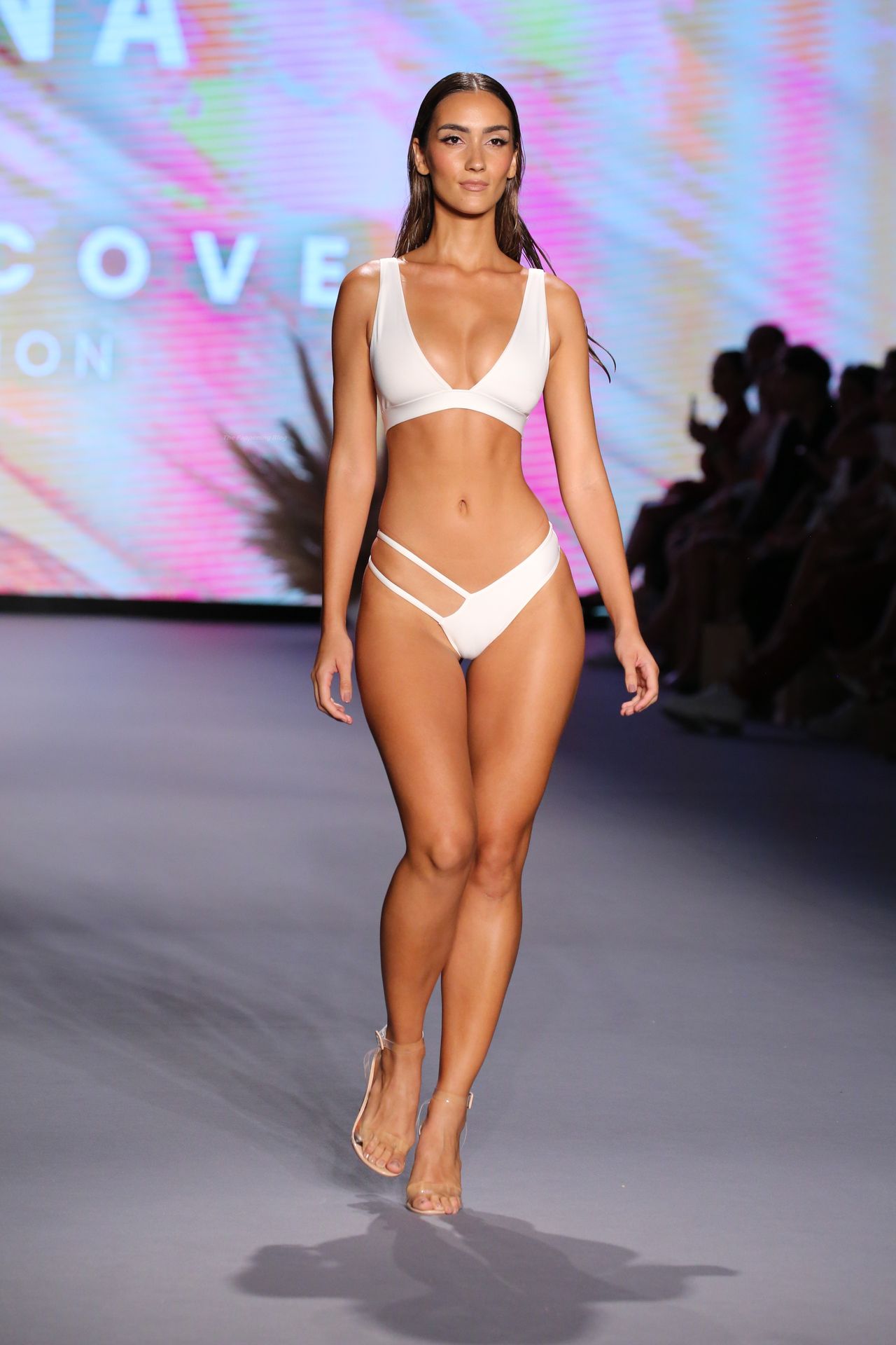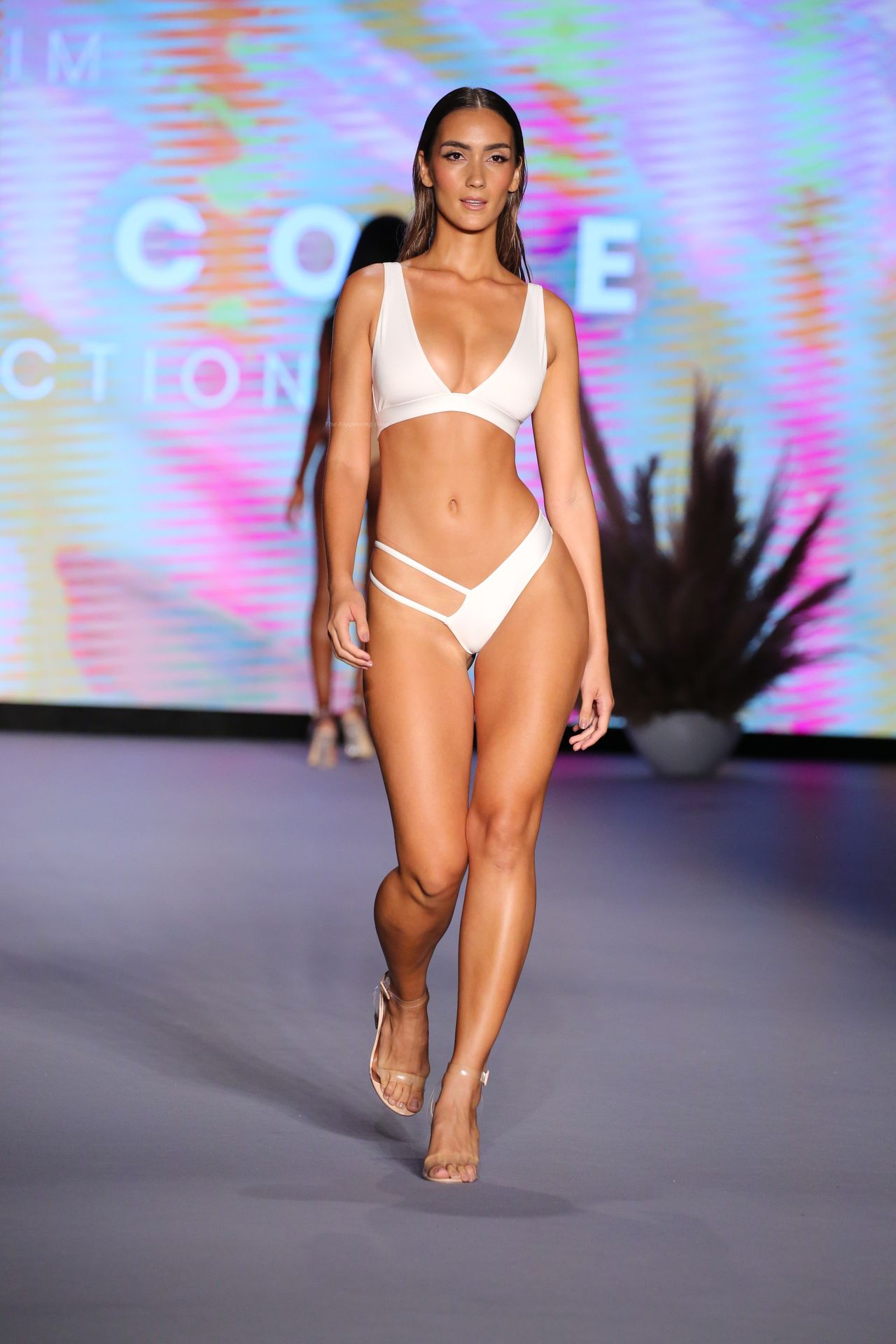 Бразильская модель, проживающая в США, Присцилла Рикарт запечатлена на подиуме, демонстрируя новую коллекцию бренда Neena Swim от Oh Polly во время Miami Swim Week в Майами, 07/09/2021.