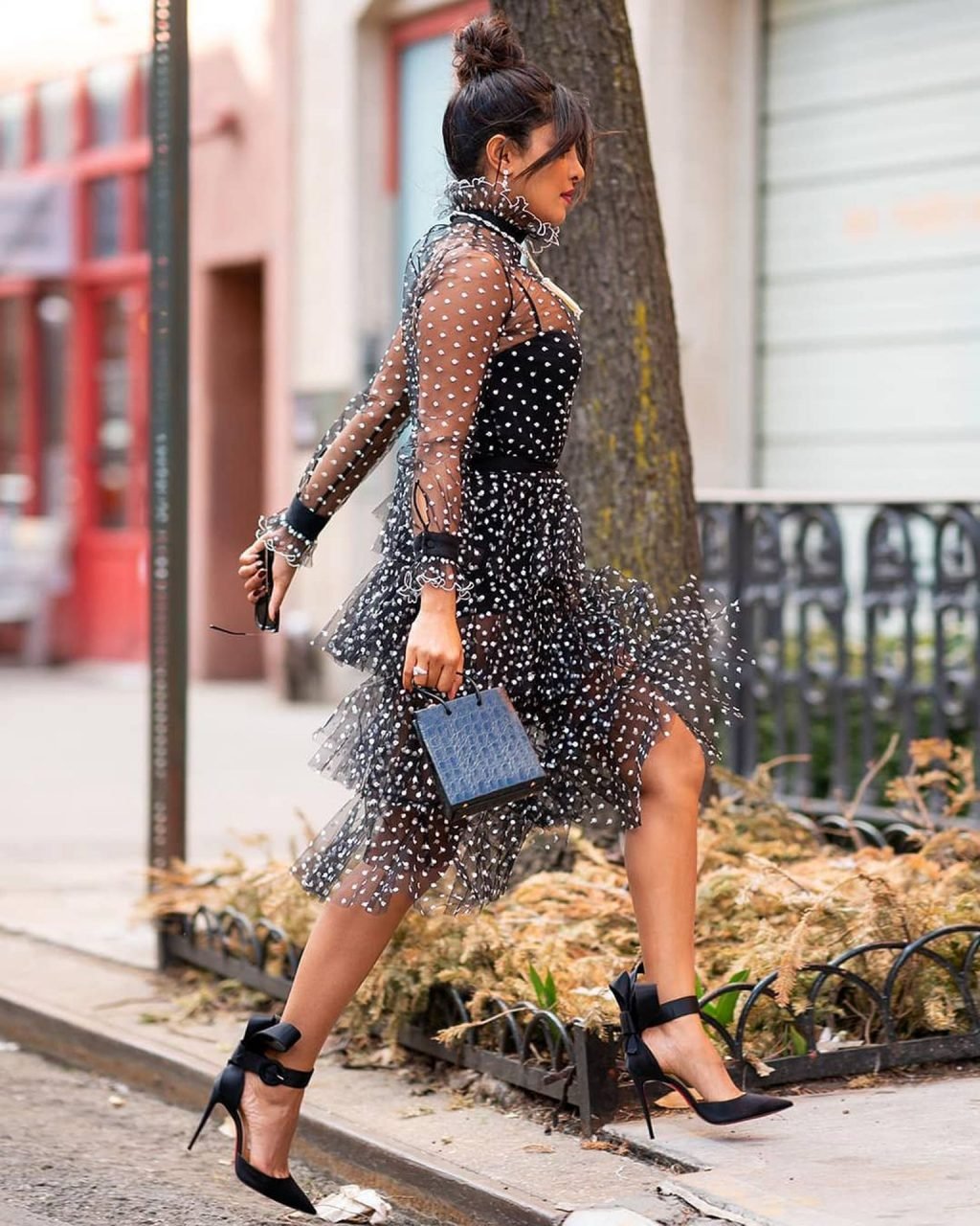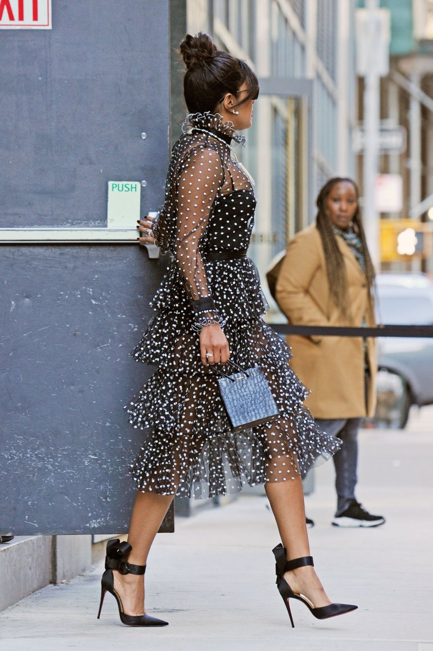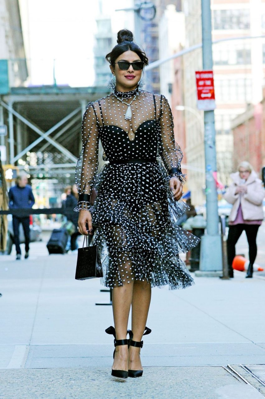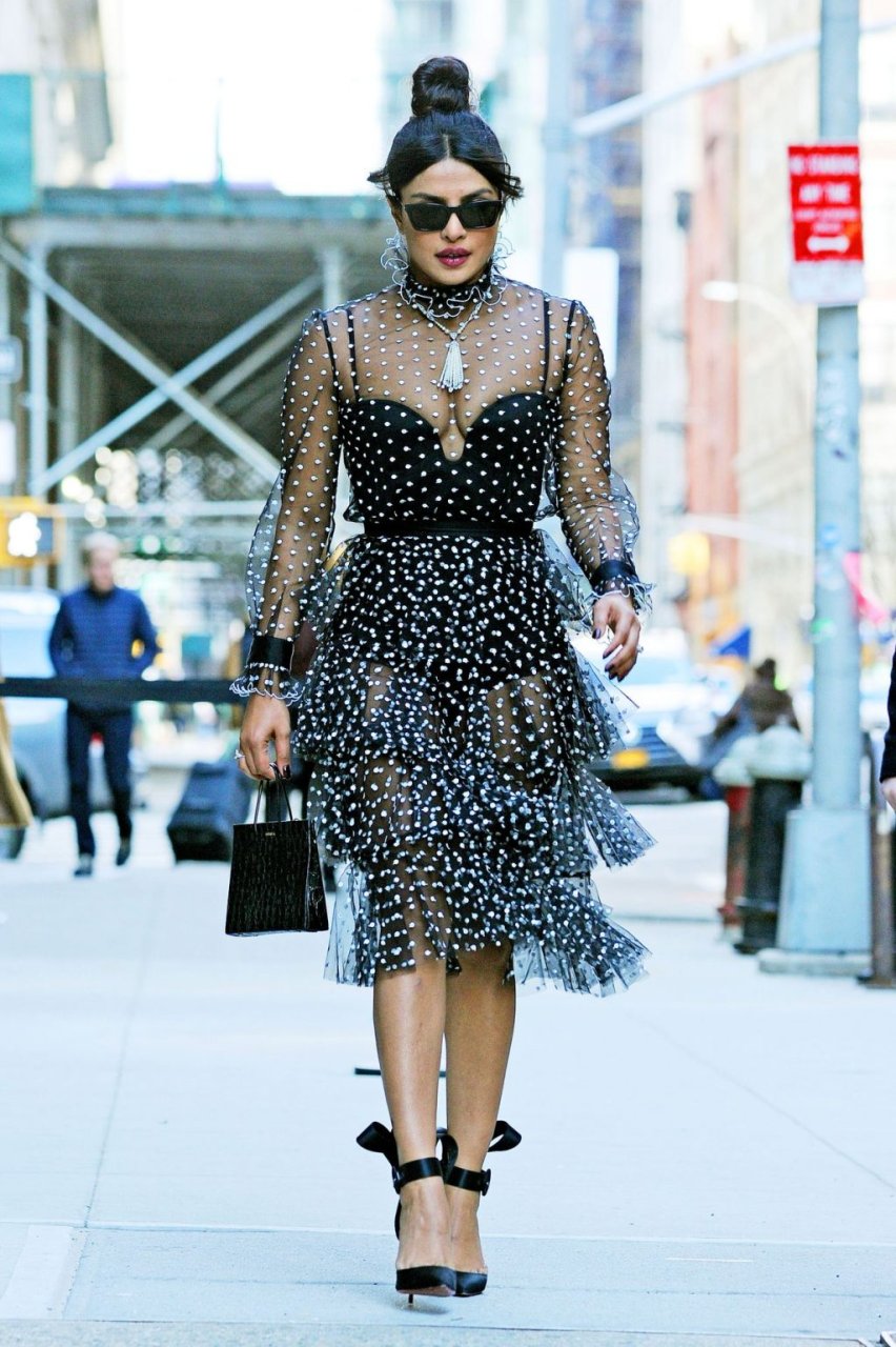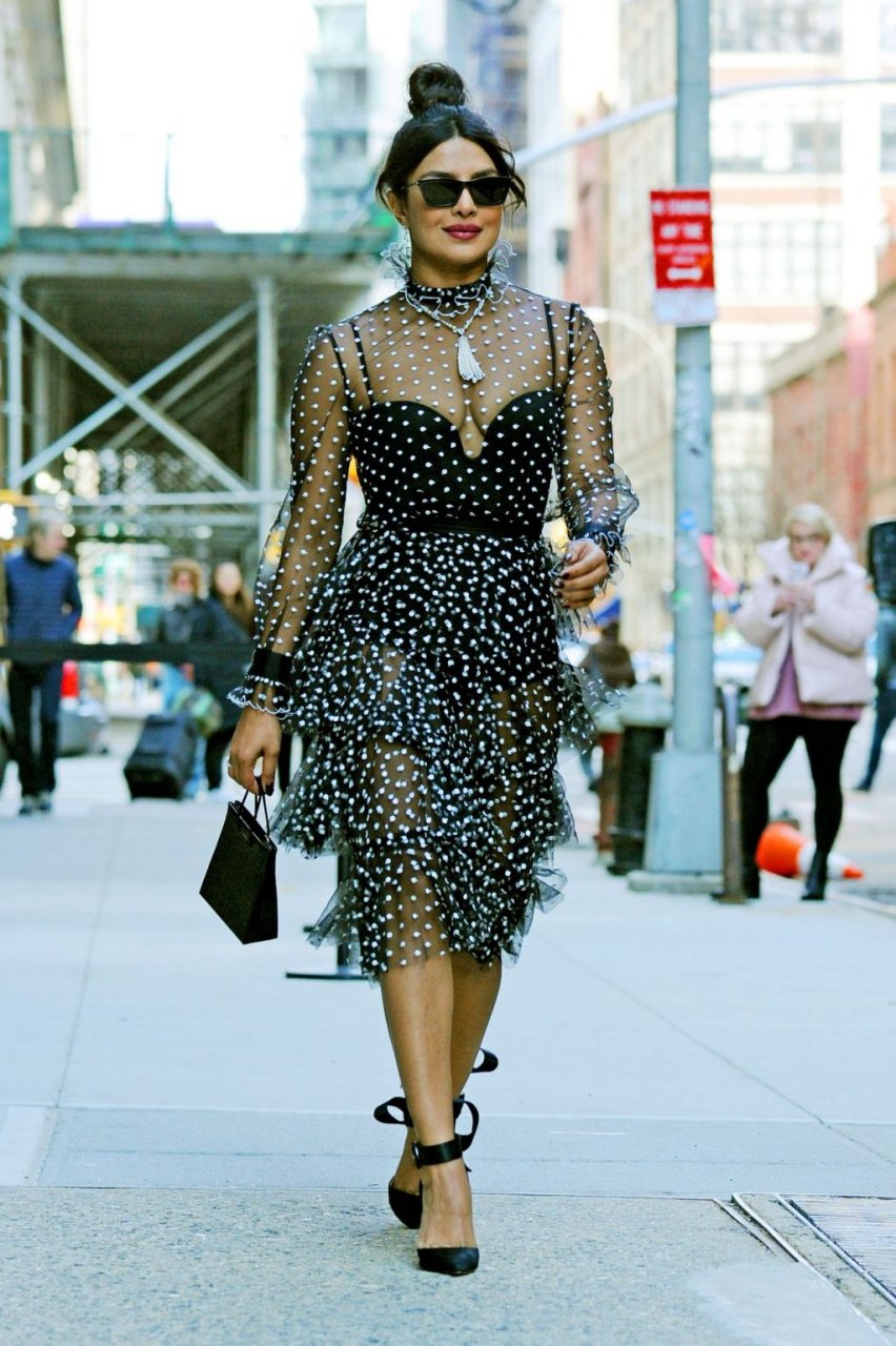 Актриса Приянка Чопра вышла в прозрачном платье в горошек в Нью-Йорке, 19.03.2019.