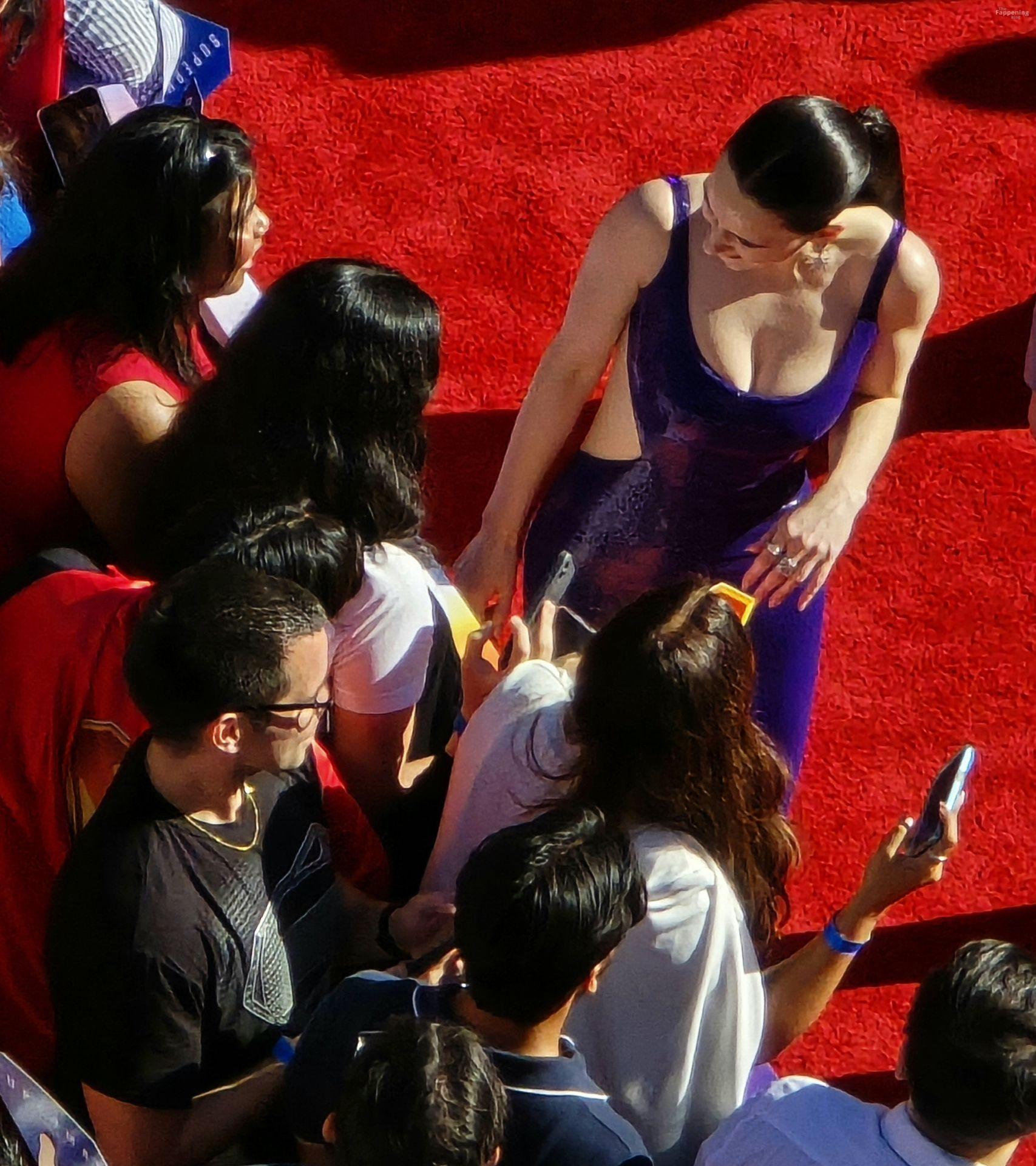 Рэйчел Броснахэн была замечена на премьере «Супермена» в TCL Chinese Theatre в Лос-Анджелесе в этом смелом, облегающем пурпурном платье.