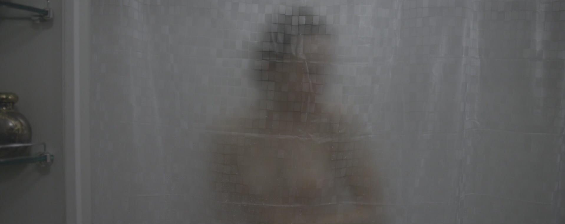 Рэйчел Макадамс в душе за занавеской. Слишком размыто, чтобы что-то разглядеть, хотя она поворачивается к ней, когда её муж подходит к двери. Всё ещё слишком размыто, чтобы что-то увидеть.