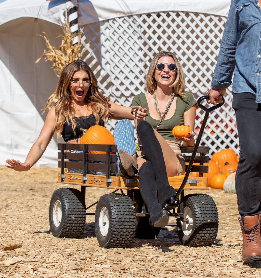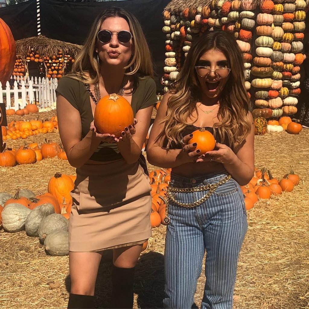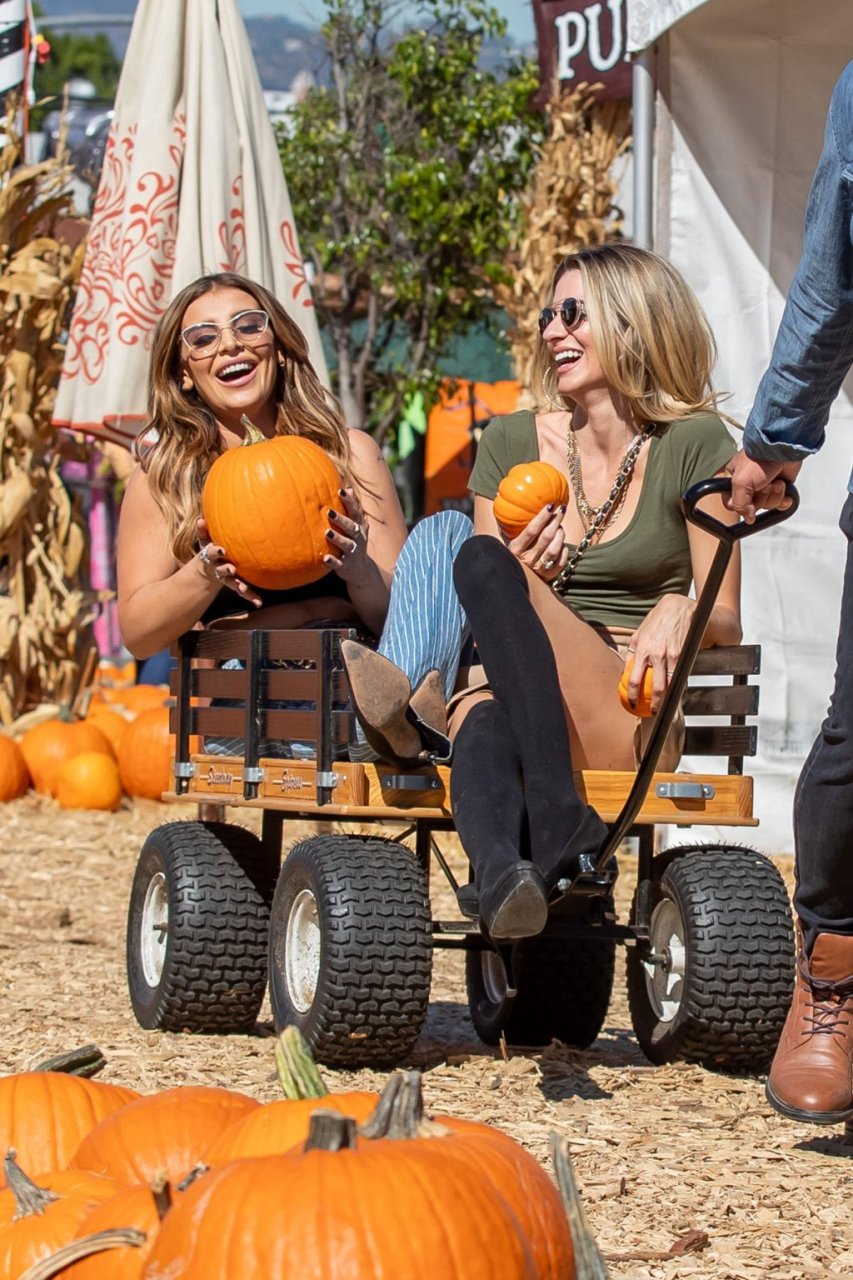 Американская блогер Рейчел МакКорд и певица/актриса/дизайнер Хана Гиральдо были замечены с друзьями на Mr. Bones Pumpkin Patch в Лос-Анджелесе, 18.10.2018.