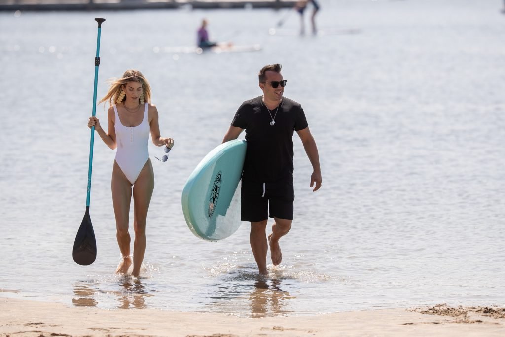 Rachel McCord демонстрирует свое потрясающее тело на пляже в Санта-Монике, 31.08.2018. 28-летняя блогерша была в белом купальнике, наслаждаясь паддлбордингом.
