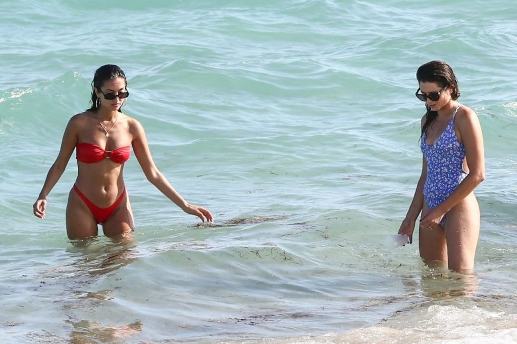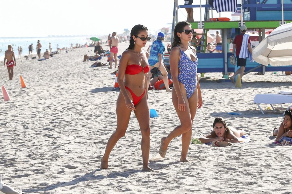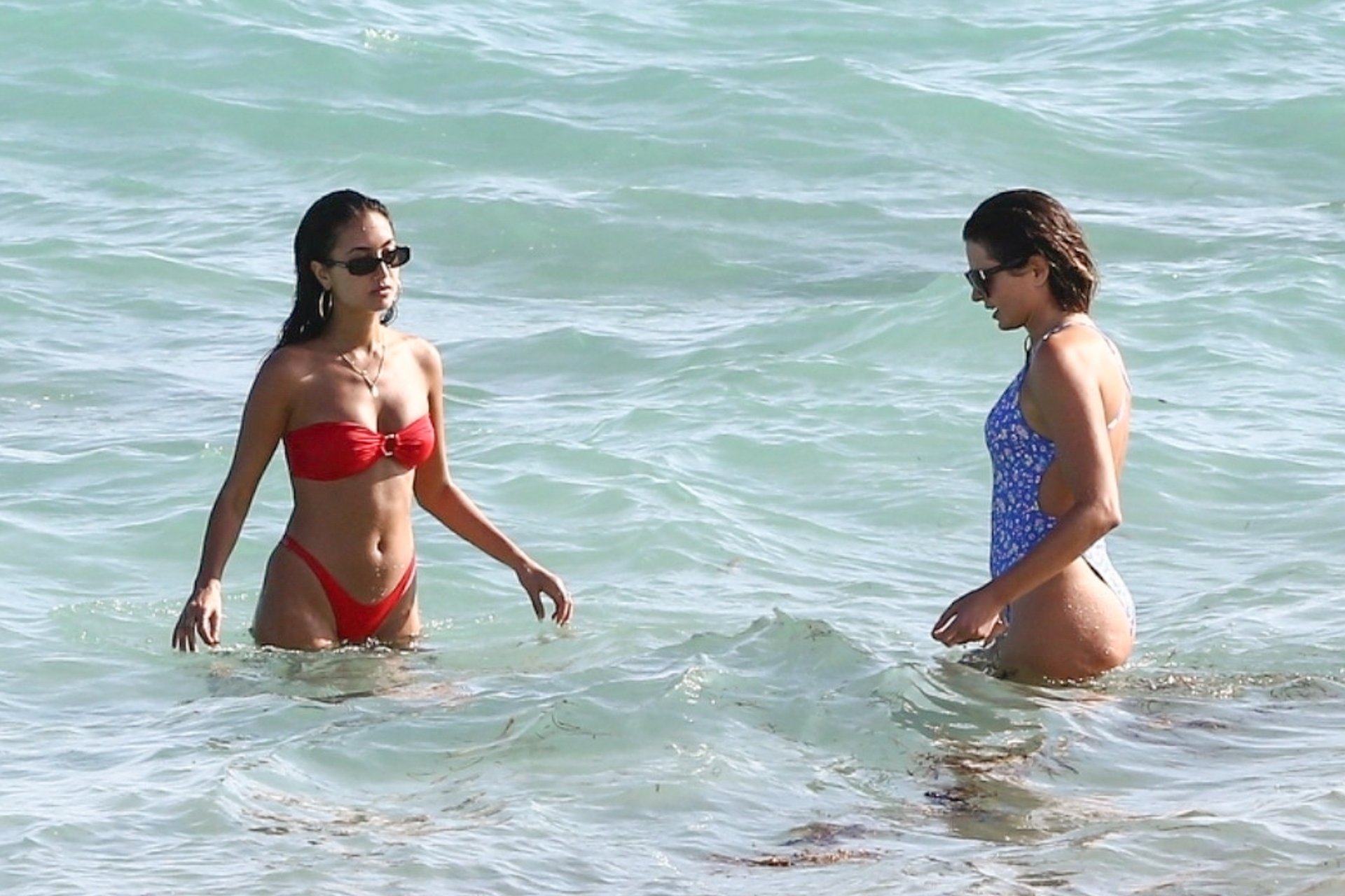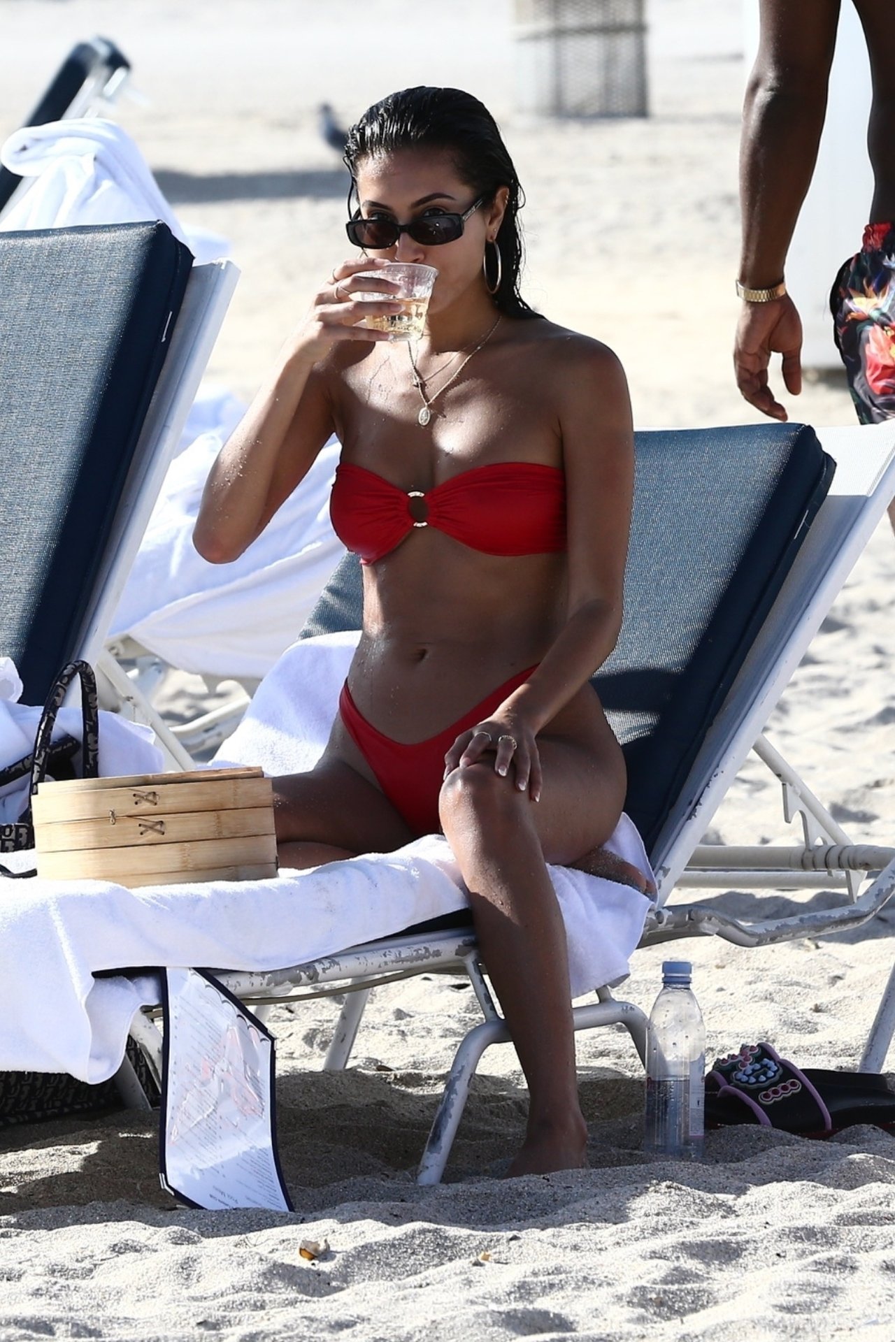 Гвианско-канадская модель Ракель Наташа наслаждается отдыхом на пляже в сексуальном красном бикини – Майами, 12.11.2019. Наташу сопровождала подруга в бикини во время прогулки.