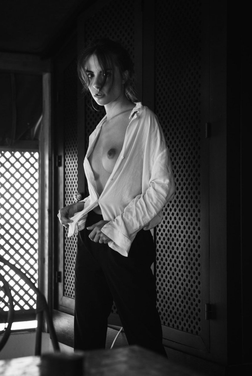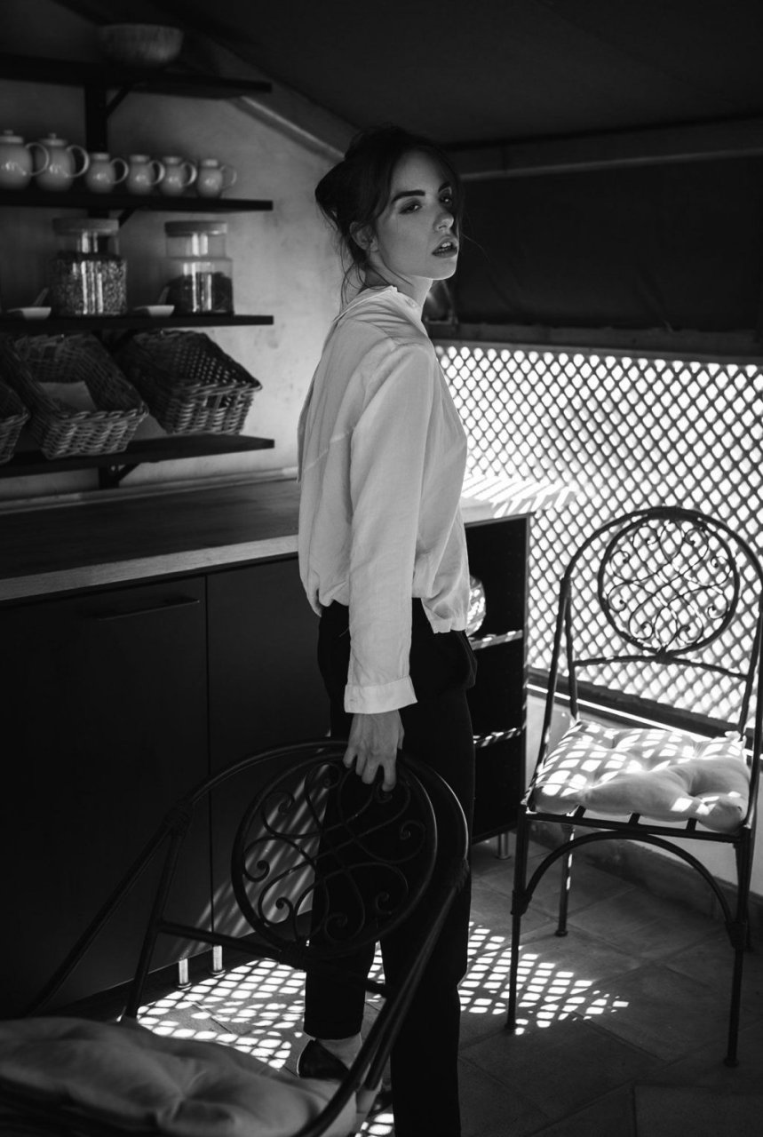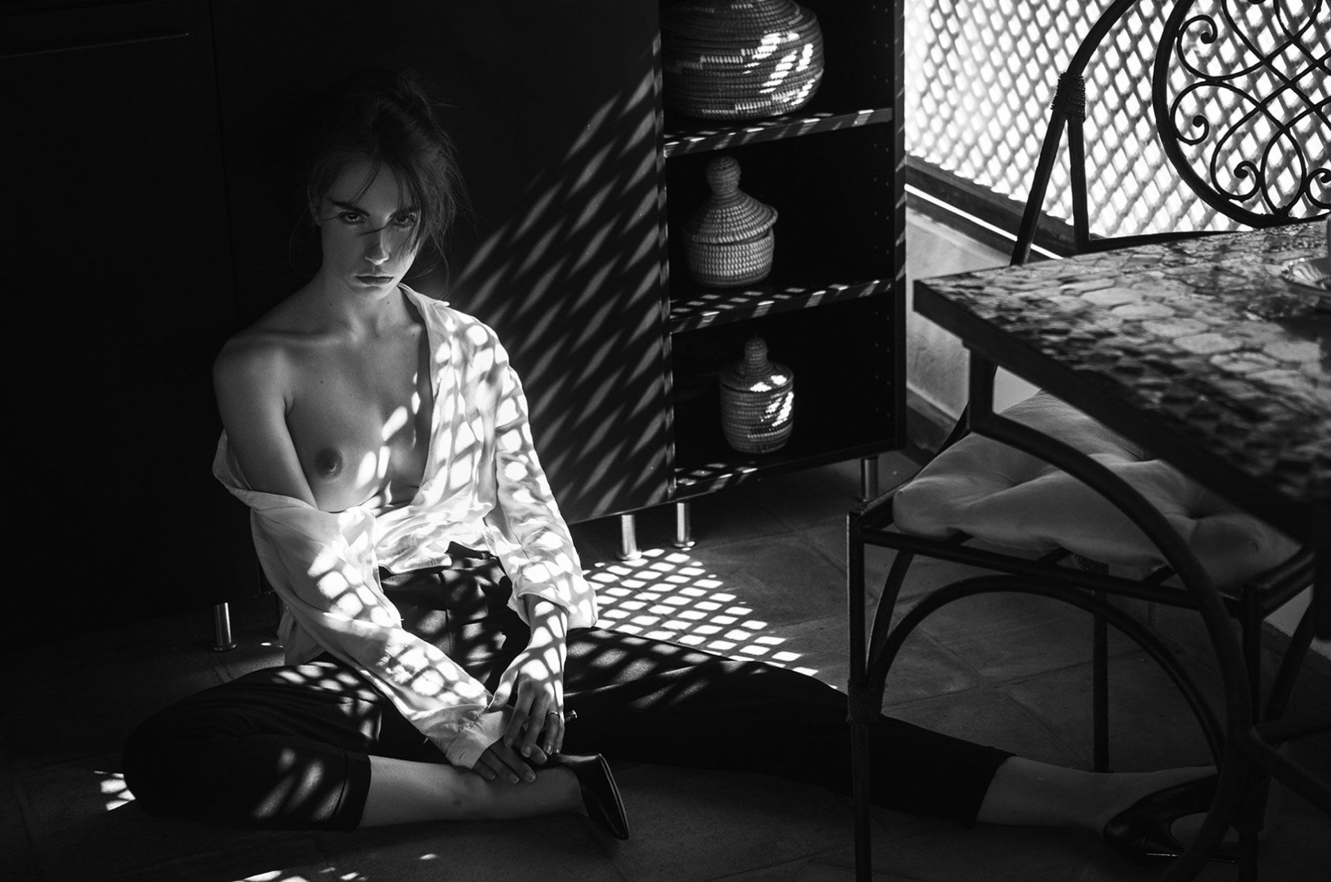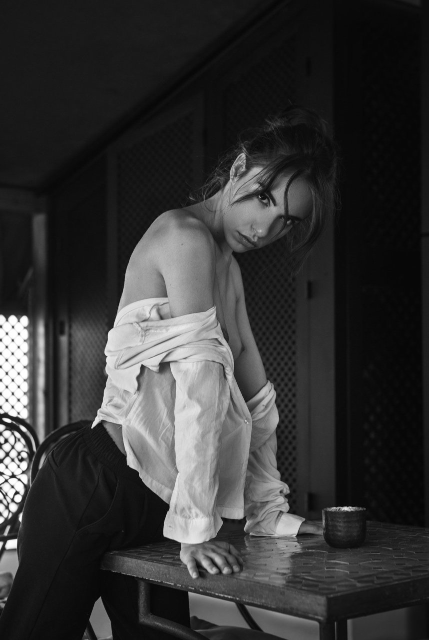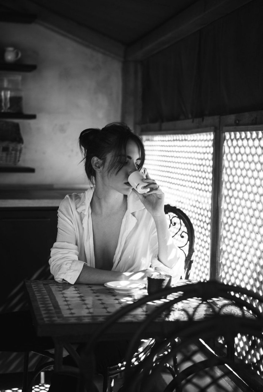 Модель Ребекка Баньоль привезла обнажённые черно-белые воспоминания из Испании с фотосессии Ханнеса Валенди (2019). Эта восхитительная женщина показала грудь в местном кафе.