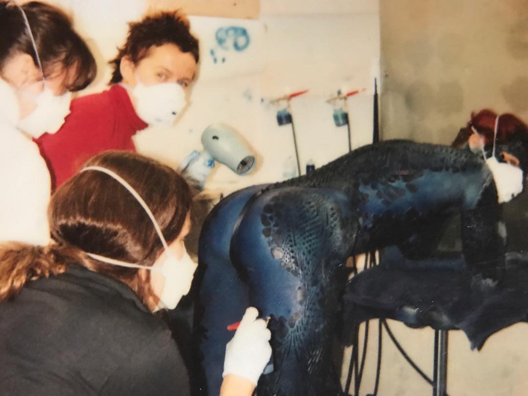 Почему их лица полностью закрыты? Она что, только что пукнула? Кстати, на мой взгляд, это не обнажённая фигура. Скорее похоже на костюм.