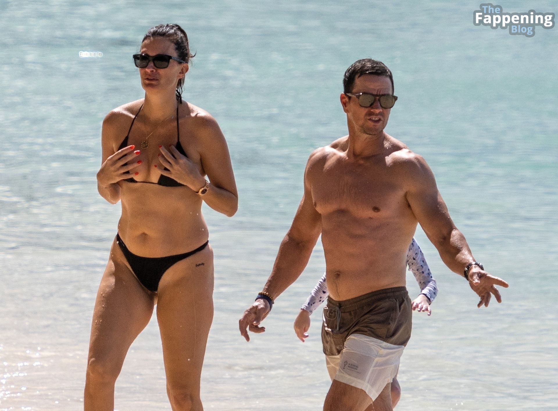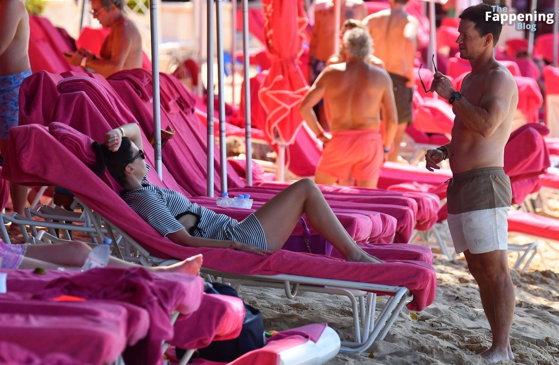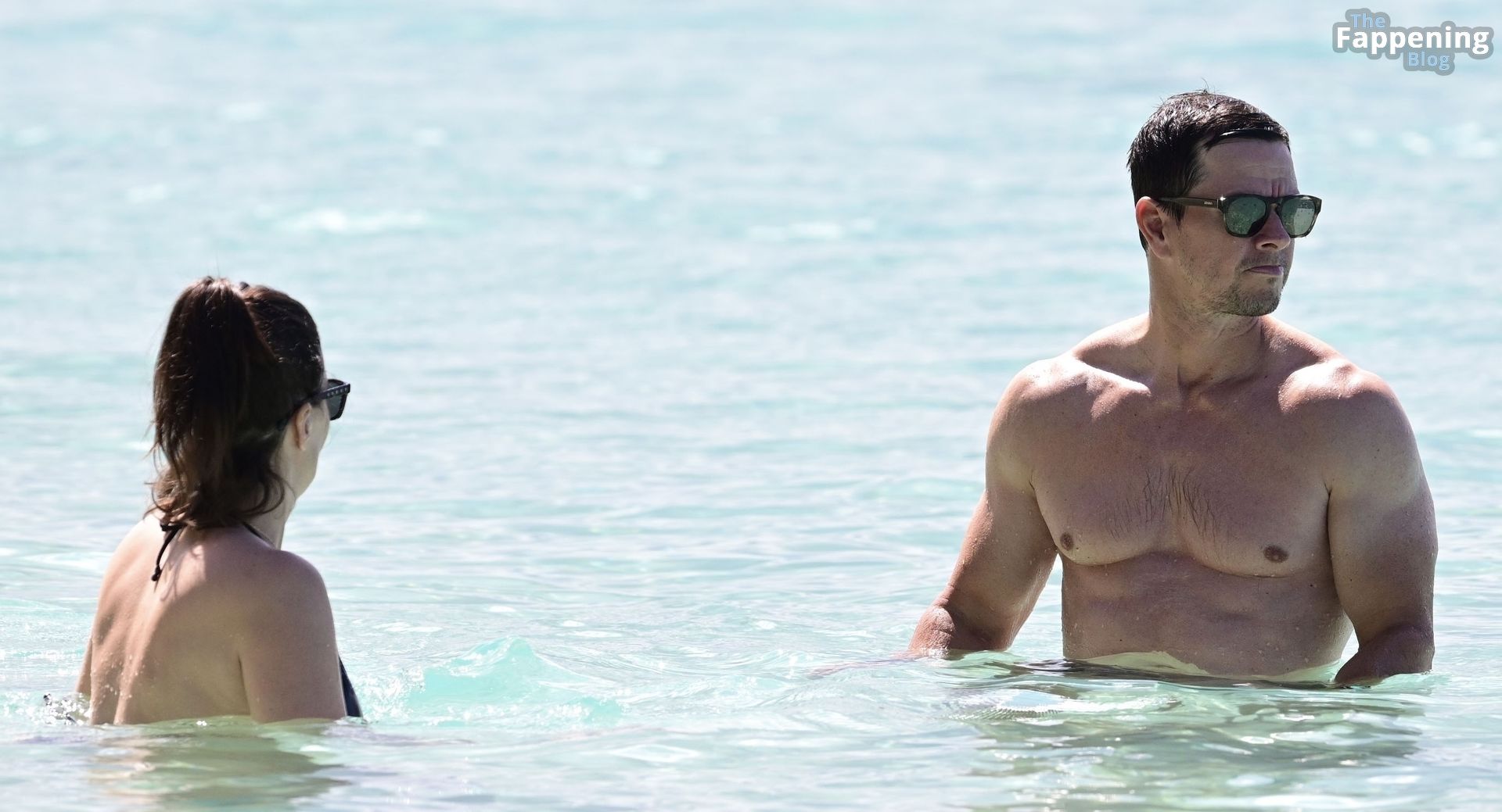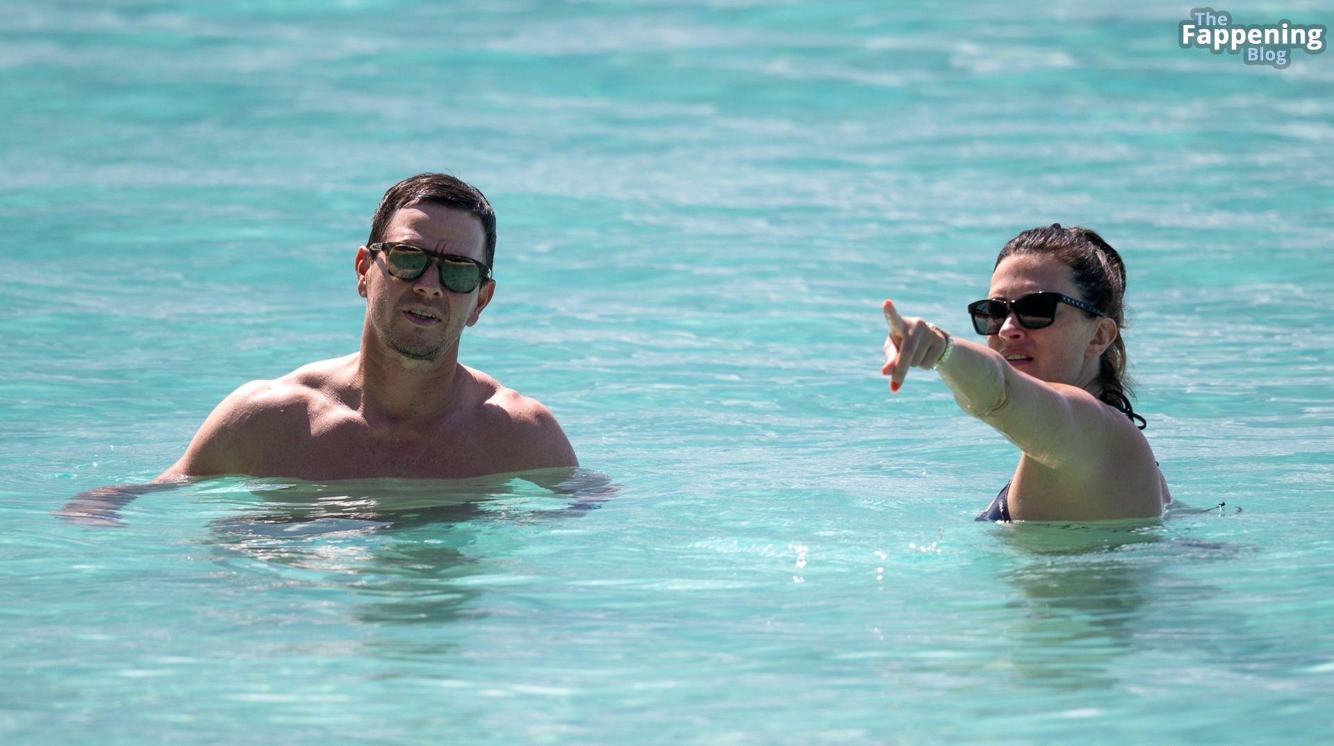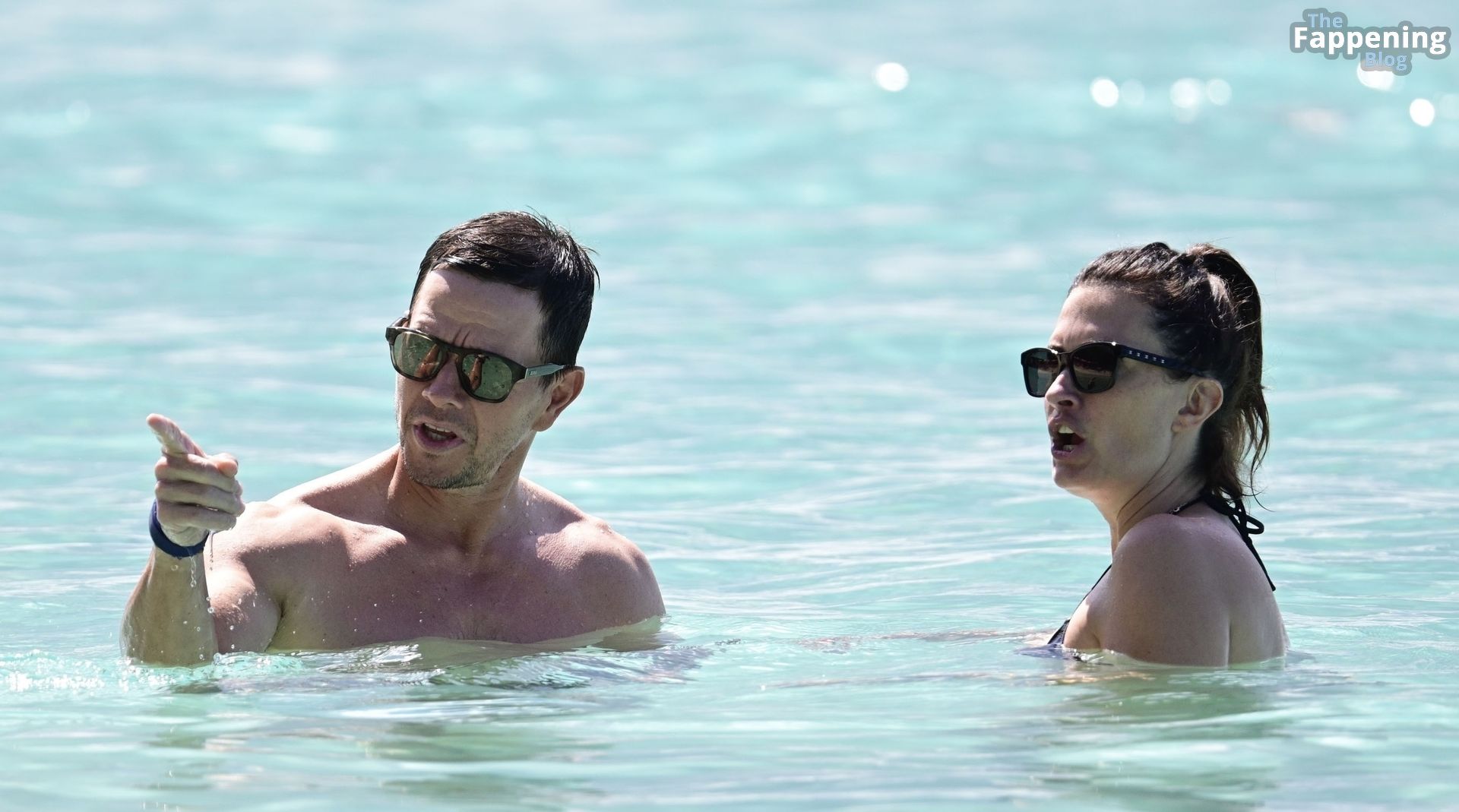 Американский актер Марк Уолберг (52) выглядит в отличной форме, демонстрируя свою впечатляющую мускулистую фигуру во время дня на пляже со своей женой Риа Дарем, 29.12.2023.