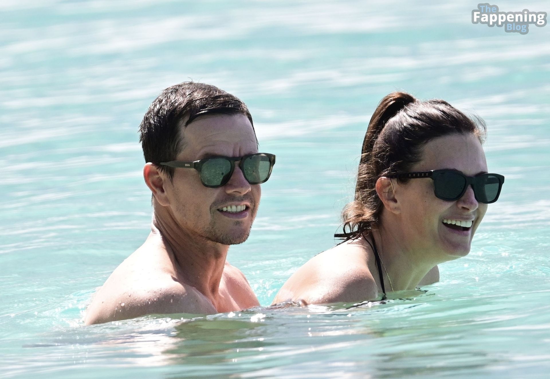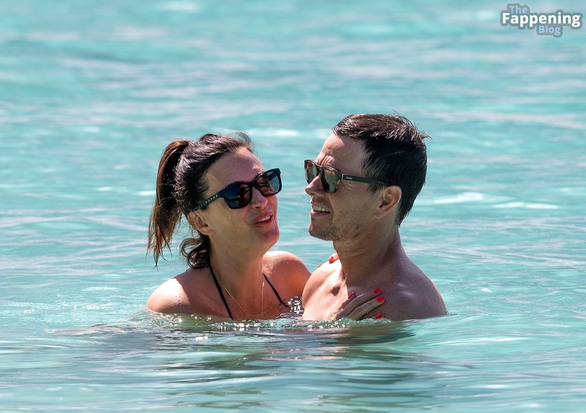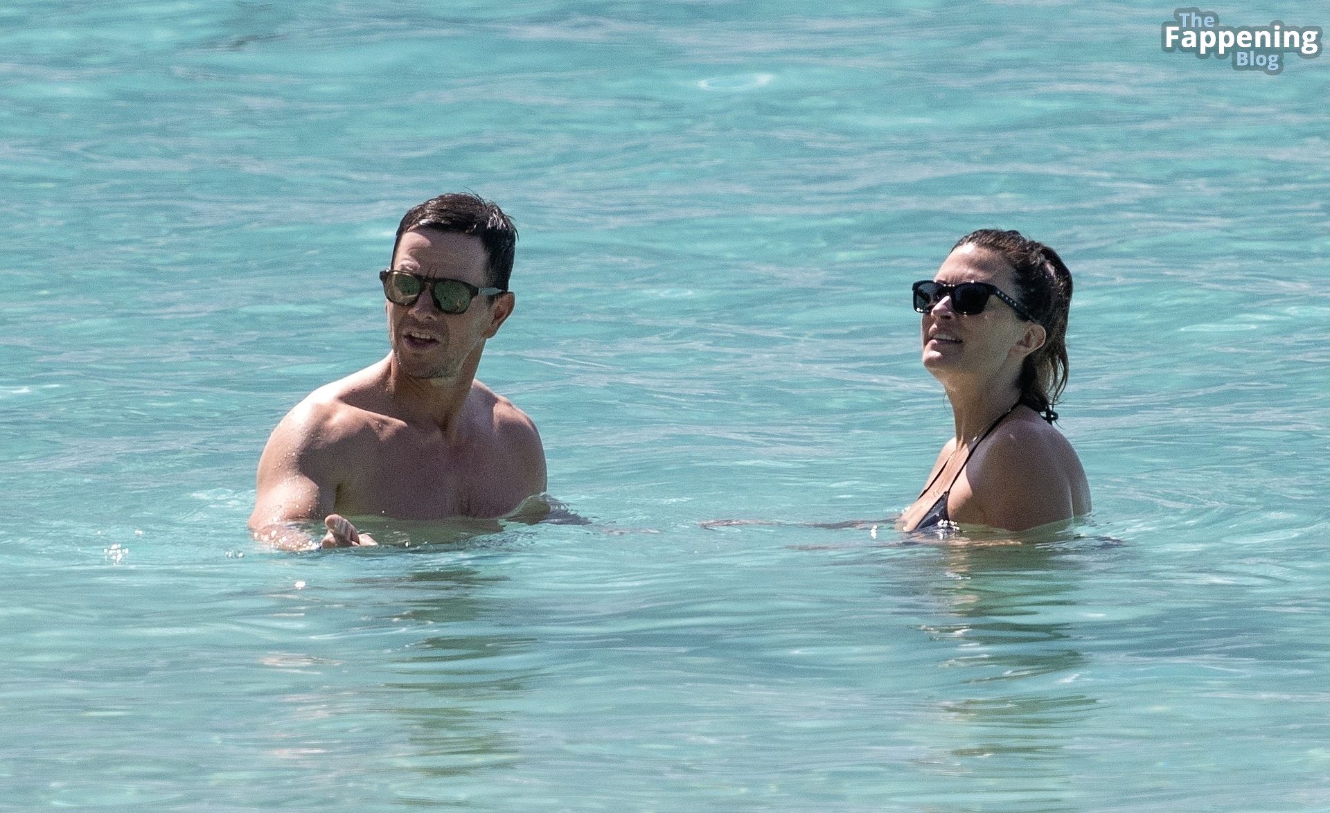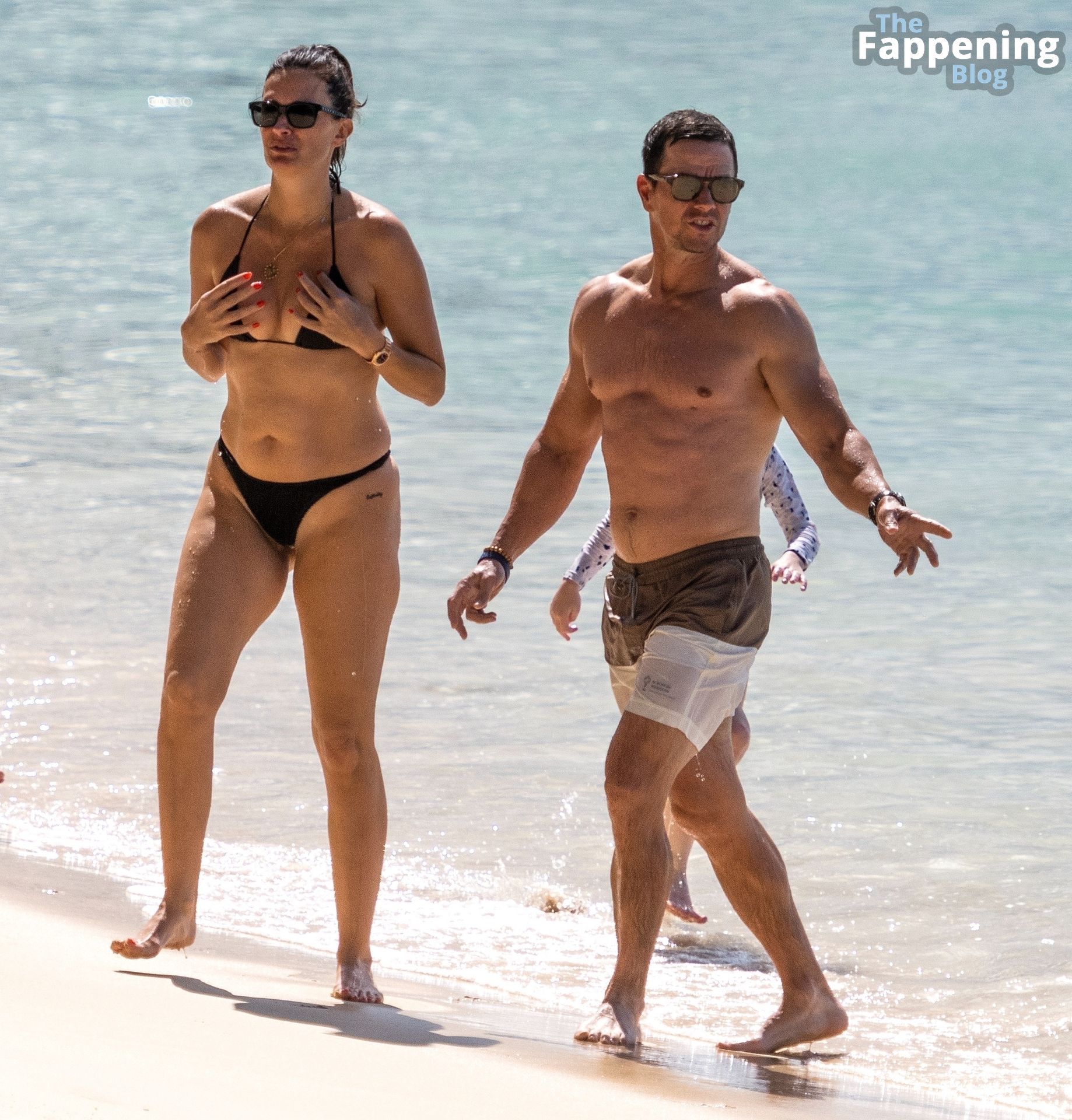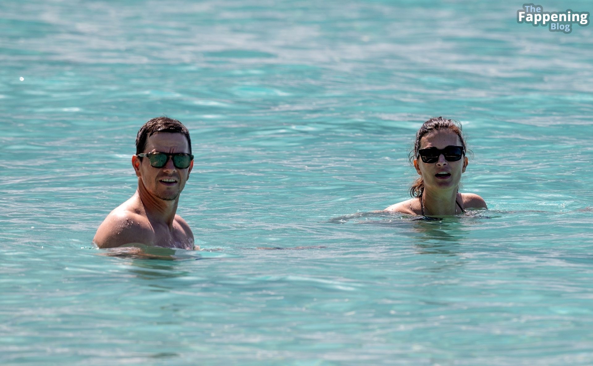 Американский актер Марк Уолберг (52) выглядит в отличной форме, демонстрируя свою впечатляющую мускулистую фигуру во время дня на пляже со своей женой Риа Дарем, 29.12.2023.