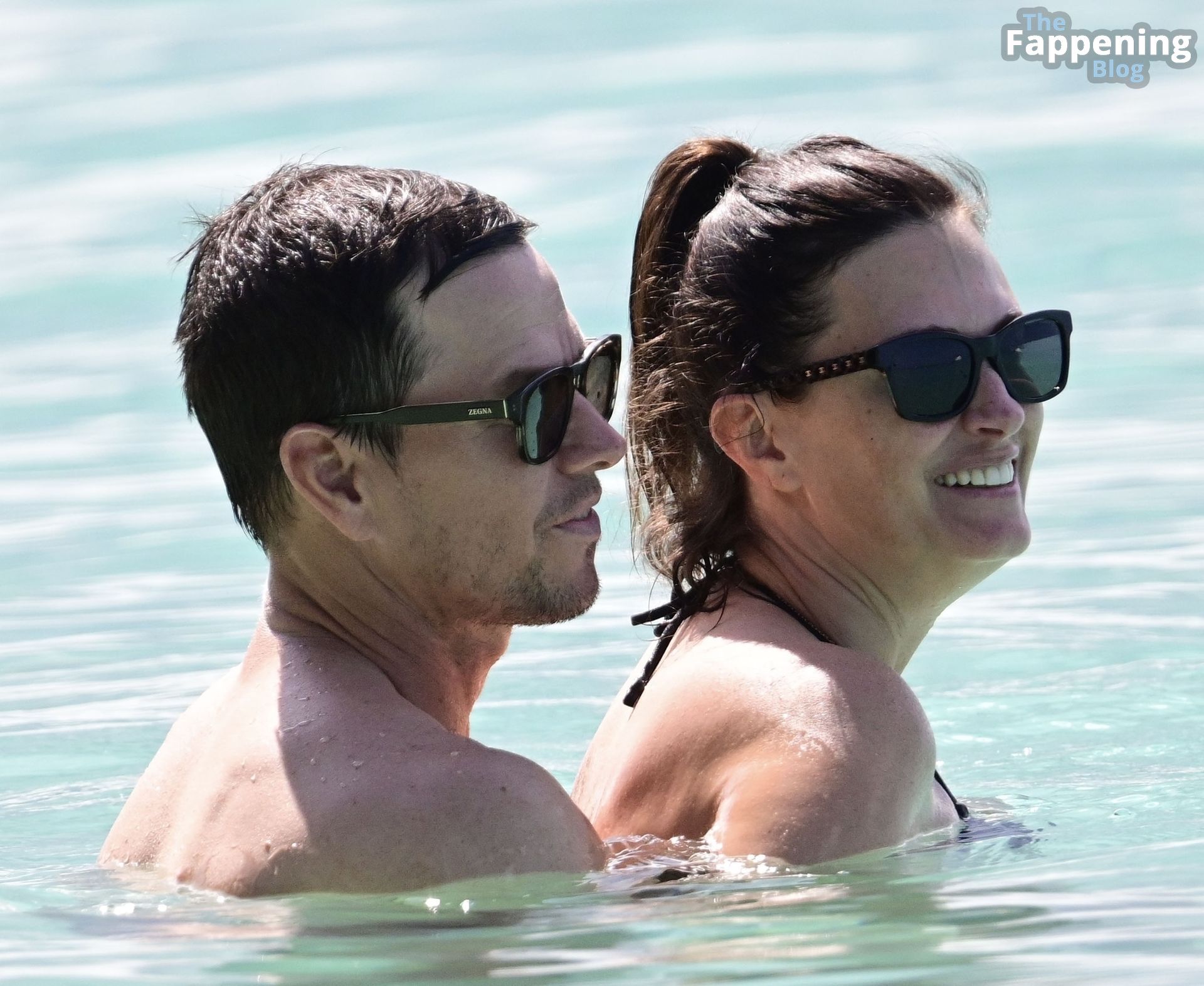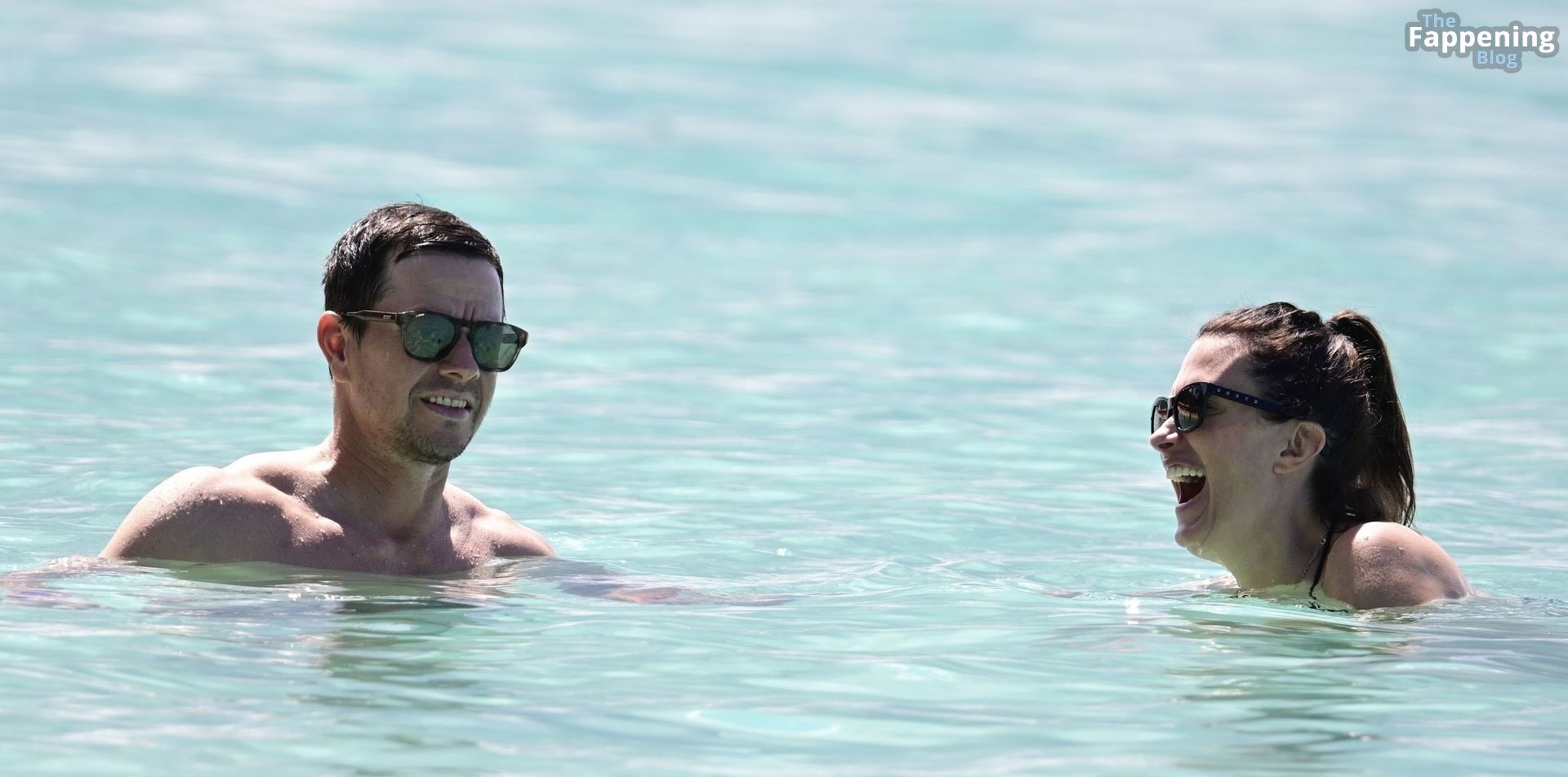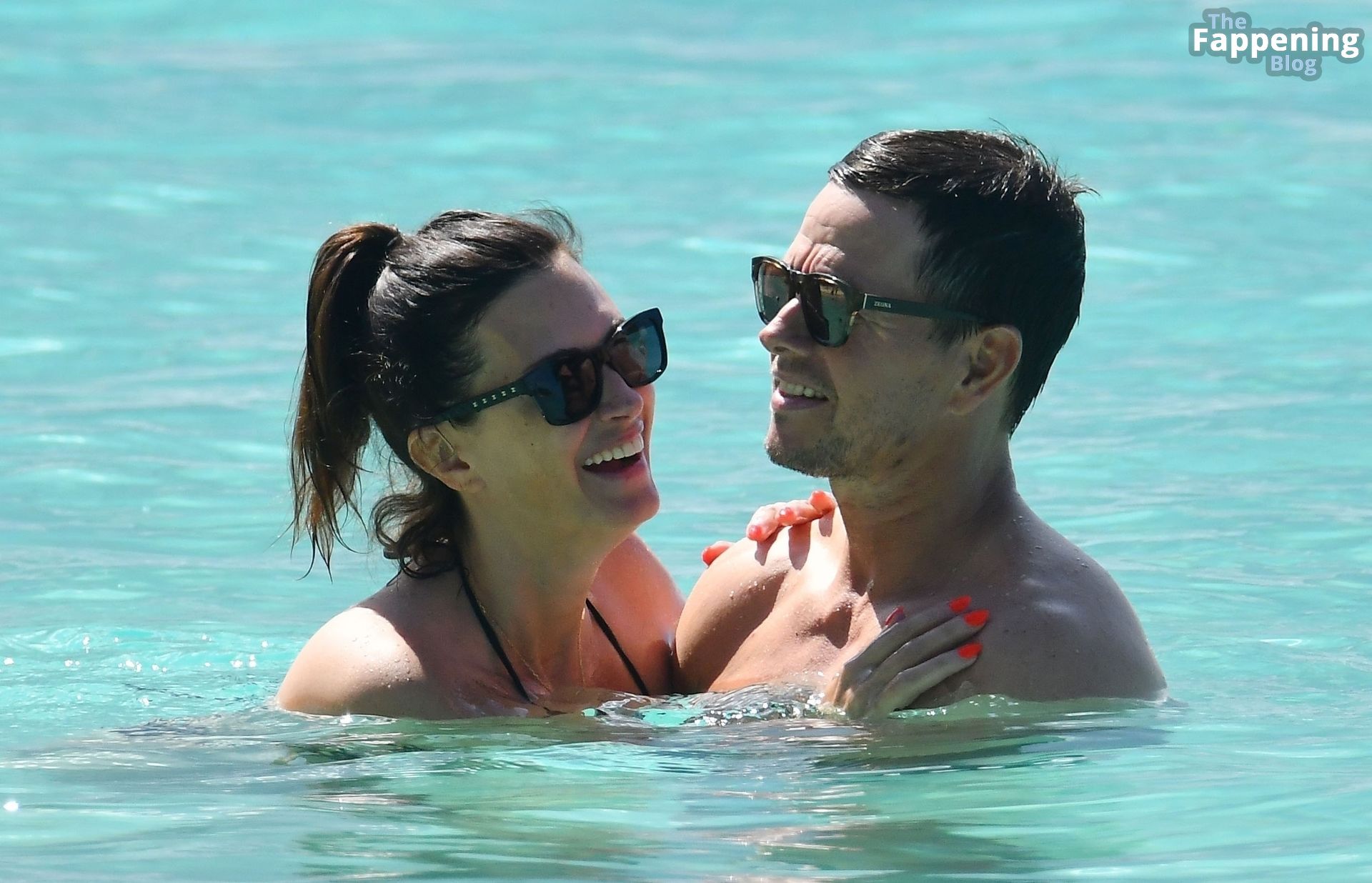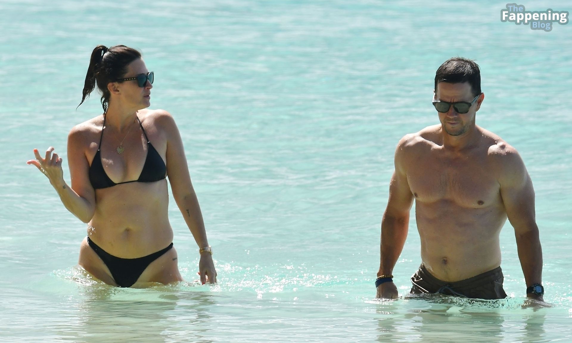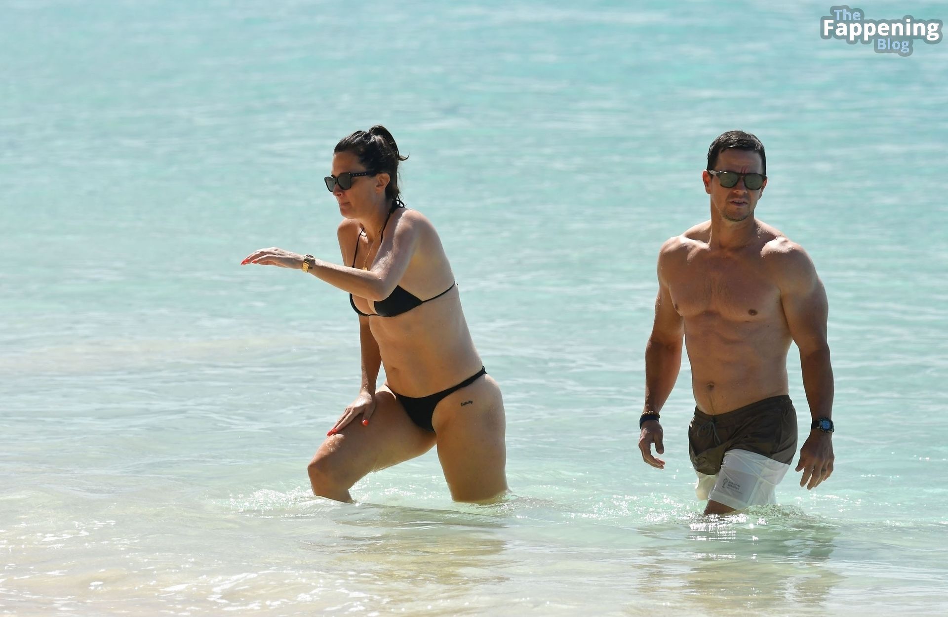Американский актер Марк Уолберг (52) выглядит в отличной форме, демонстрируя свою впечатляющую мускулистую фигуру во время дня на пляже со своей женой Риа Дарем, 29.12.2023.