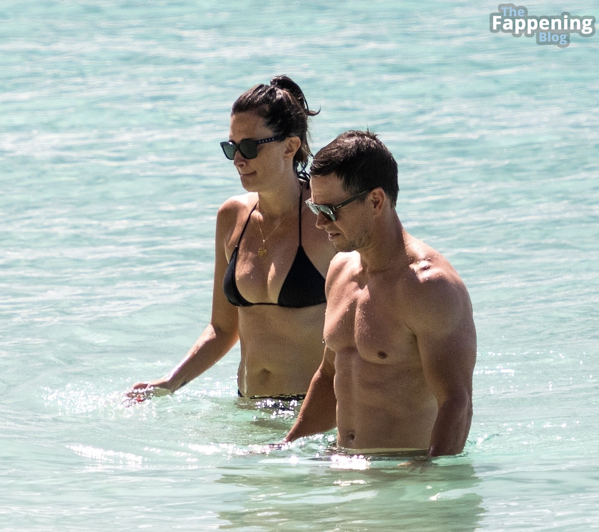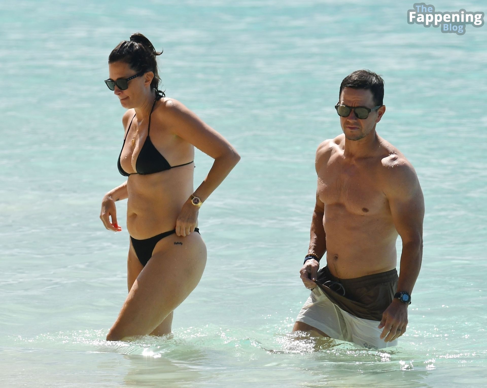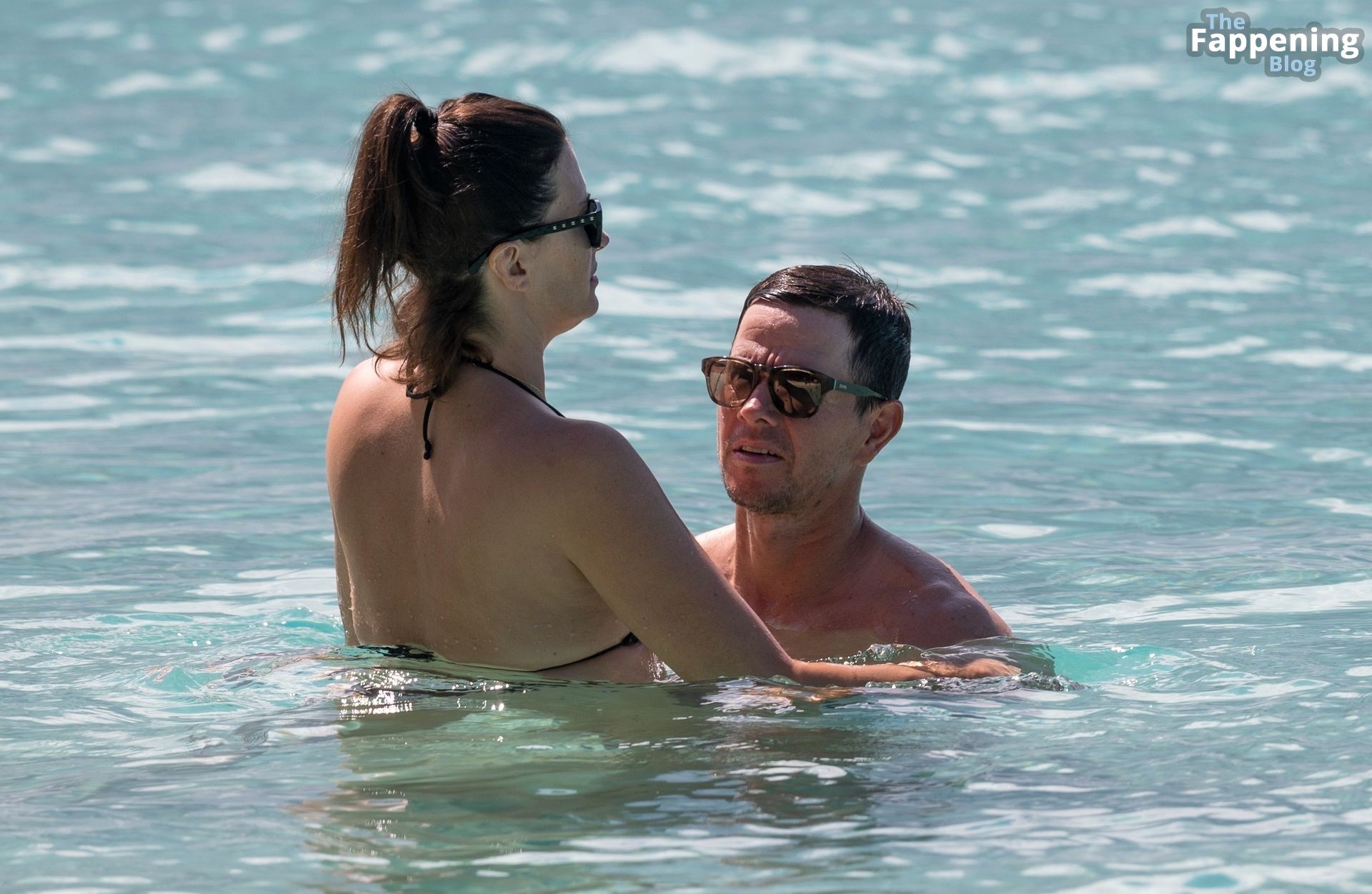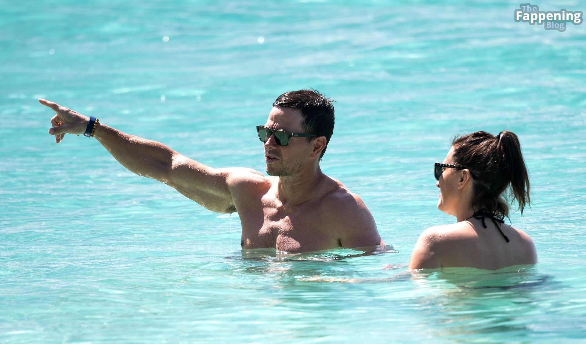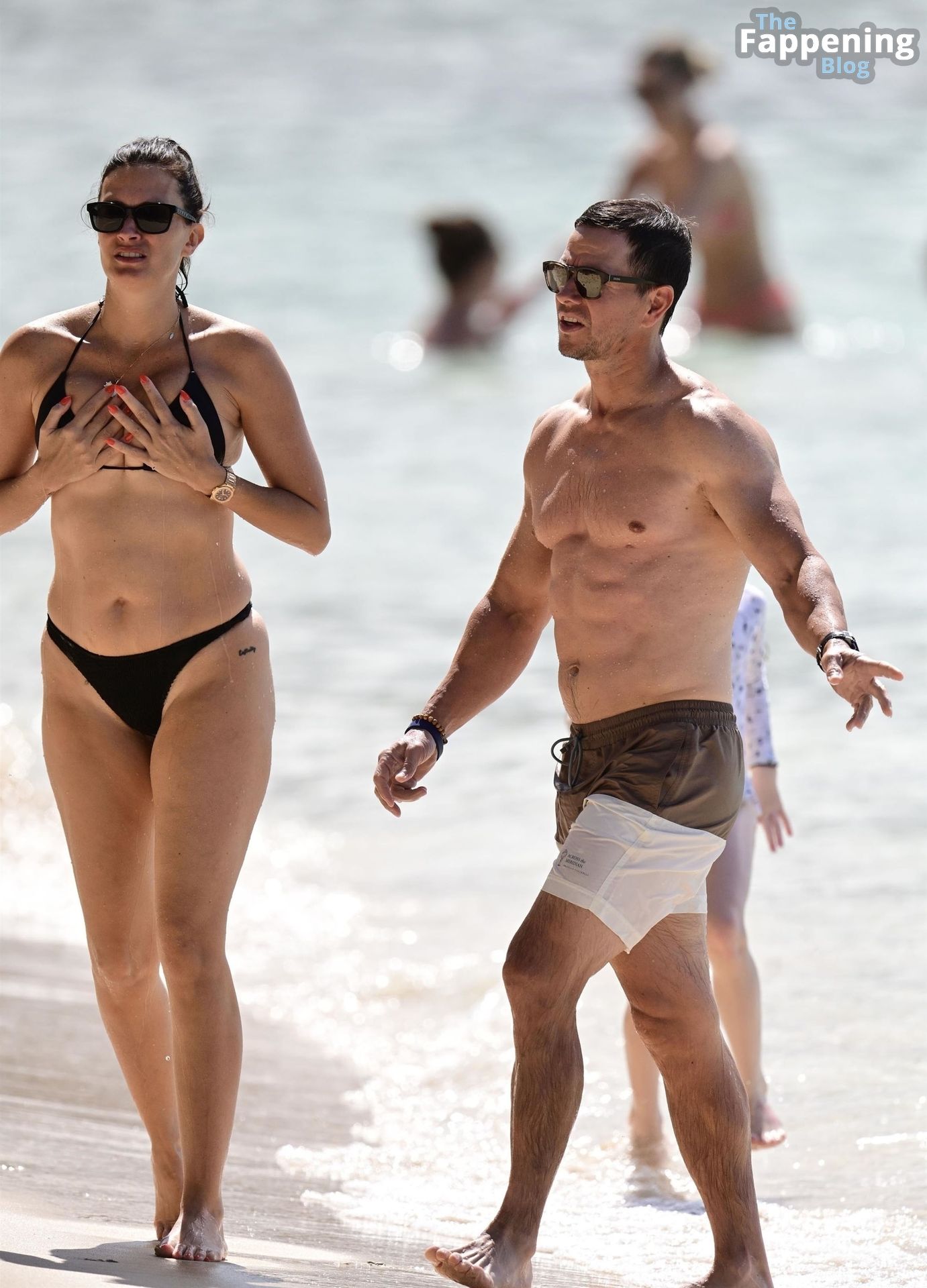 Американский актер Марк Уолберг (52) выглядит в отличной форме, демонстрируя свою впечатляющую мускулистую фигуру во время дня на пляже со своей женой Риа Дарем, 29.12.2023.