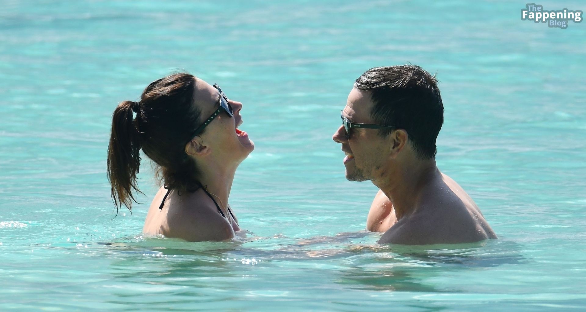 Риа блистала в своем черном бикини, пока пара наслаждалась жарким карибским солнцем и охлаждалась в море, не скрывая нежных чувств друг к другу во время зимних каникул на Барбадосе.