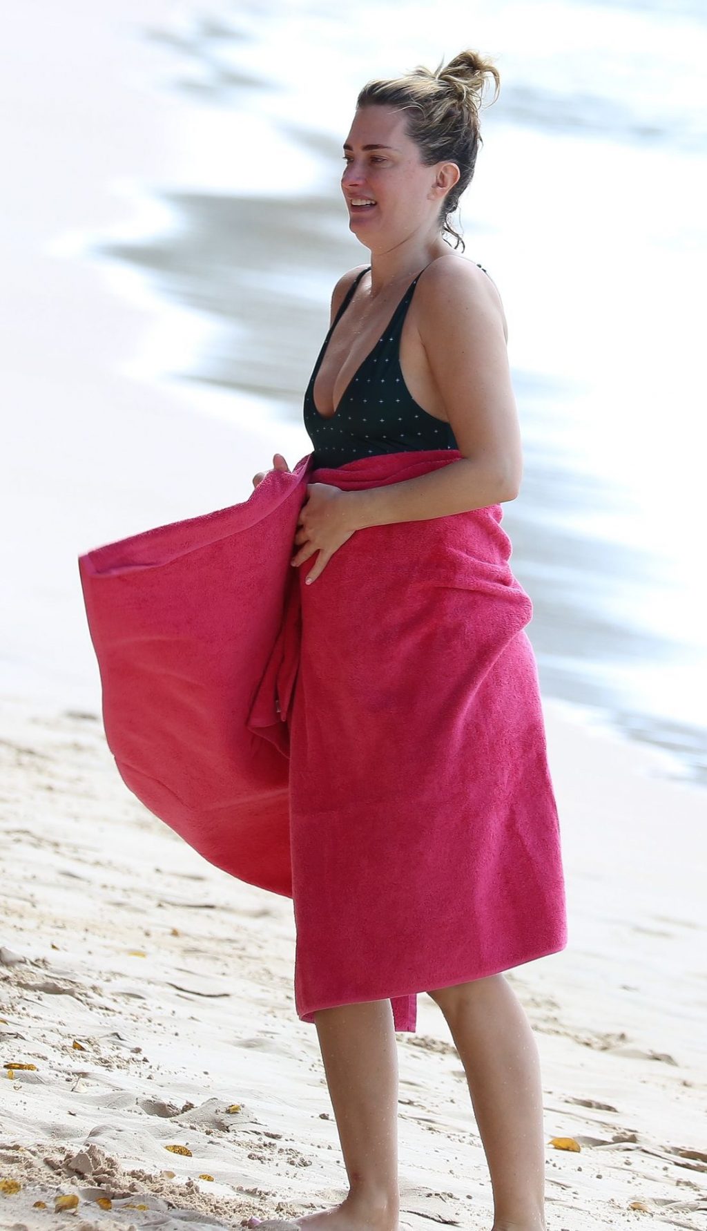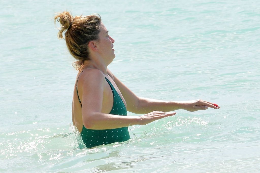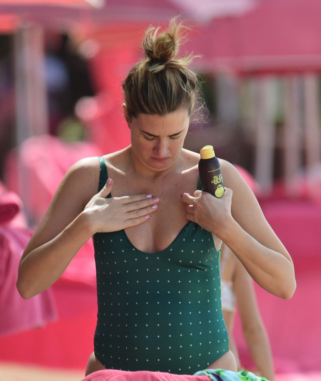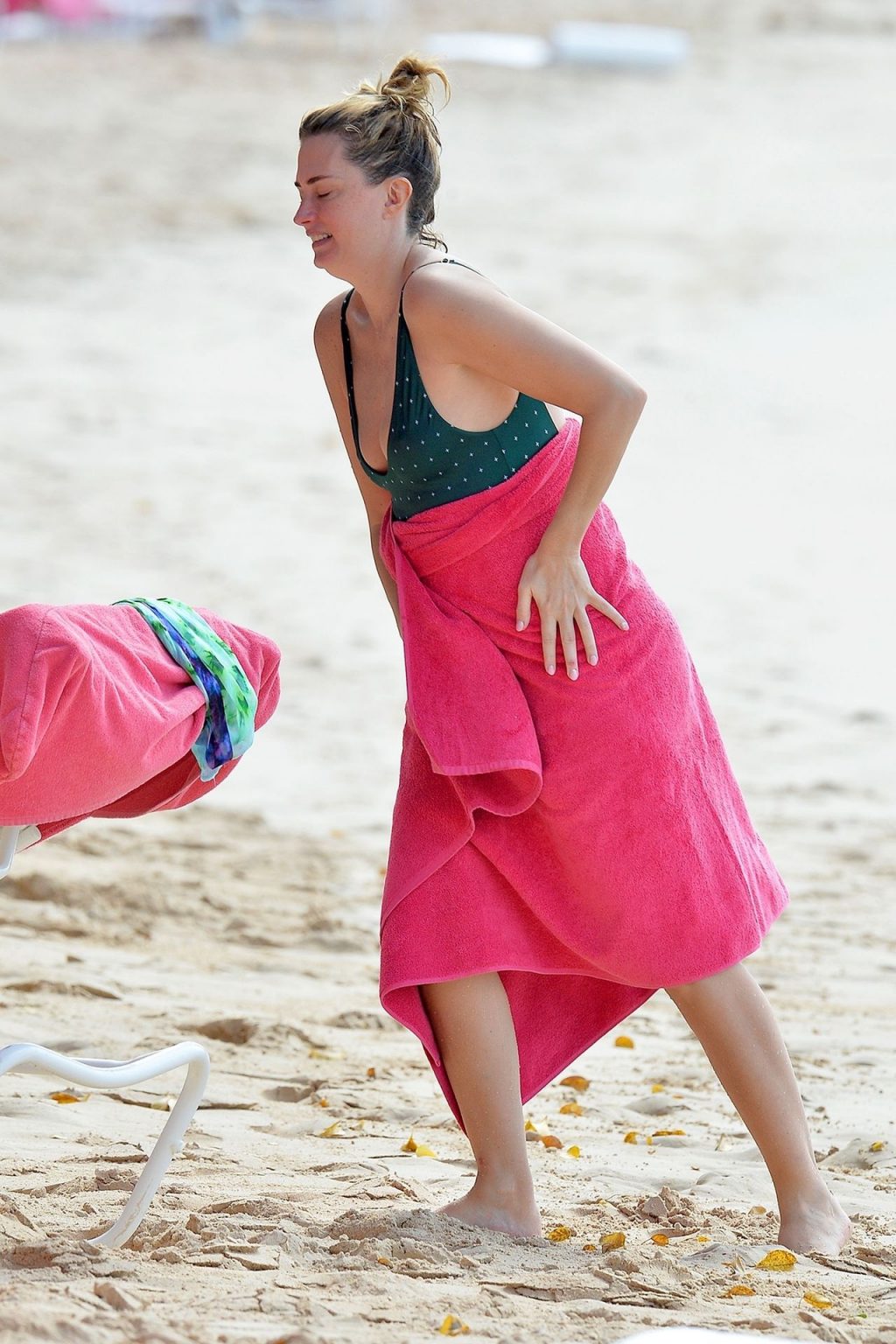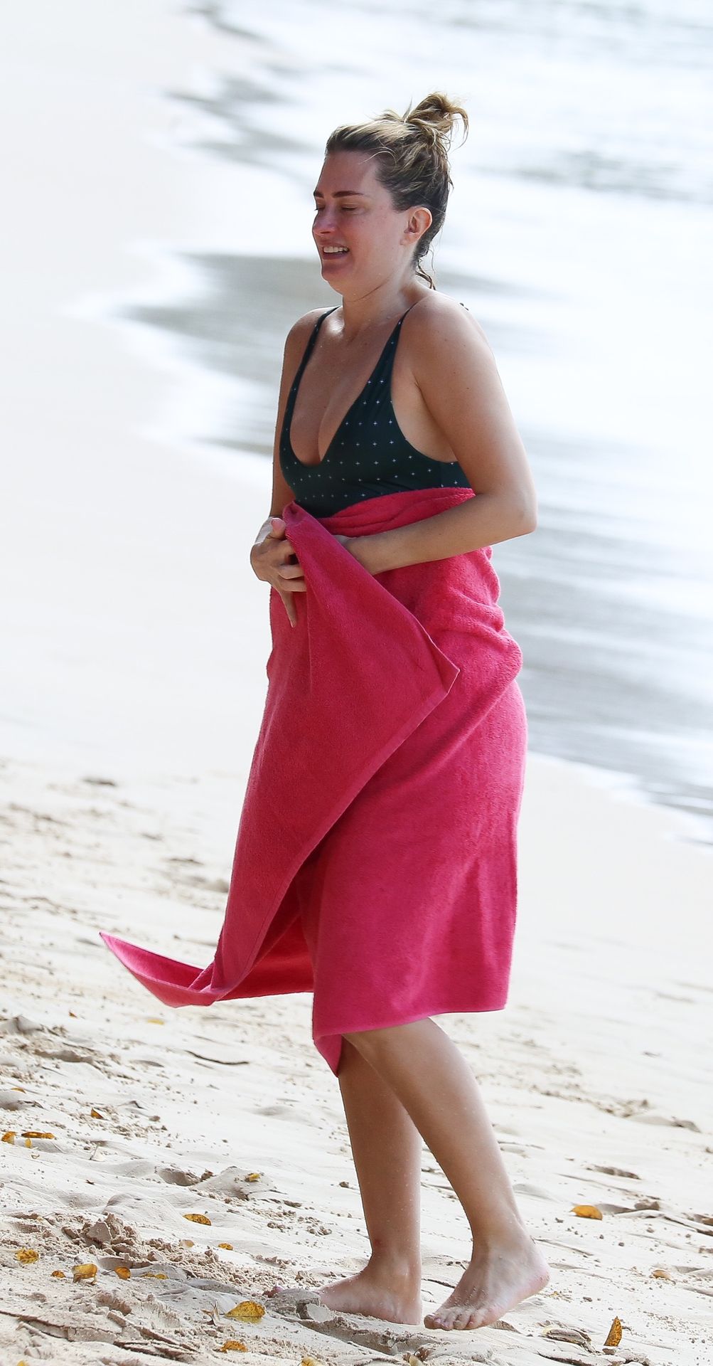 Жена Марка Уолберга Риа Дурхэм была замечена смеющейся с одним из своих детей, наслаждаясь пляжем возле отеля Sandy Lane на Барбадосе, 28.12.2019. После набора веса её попа выглядит отлично.