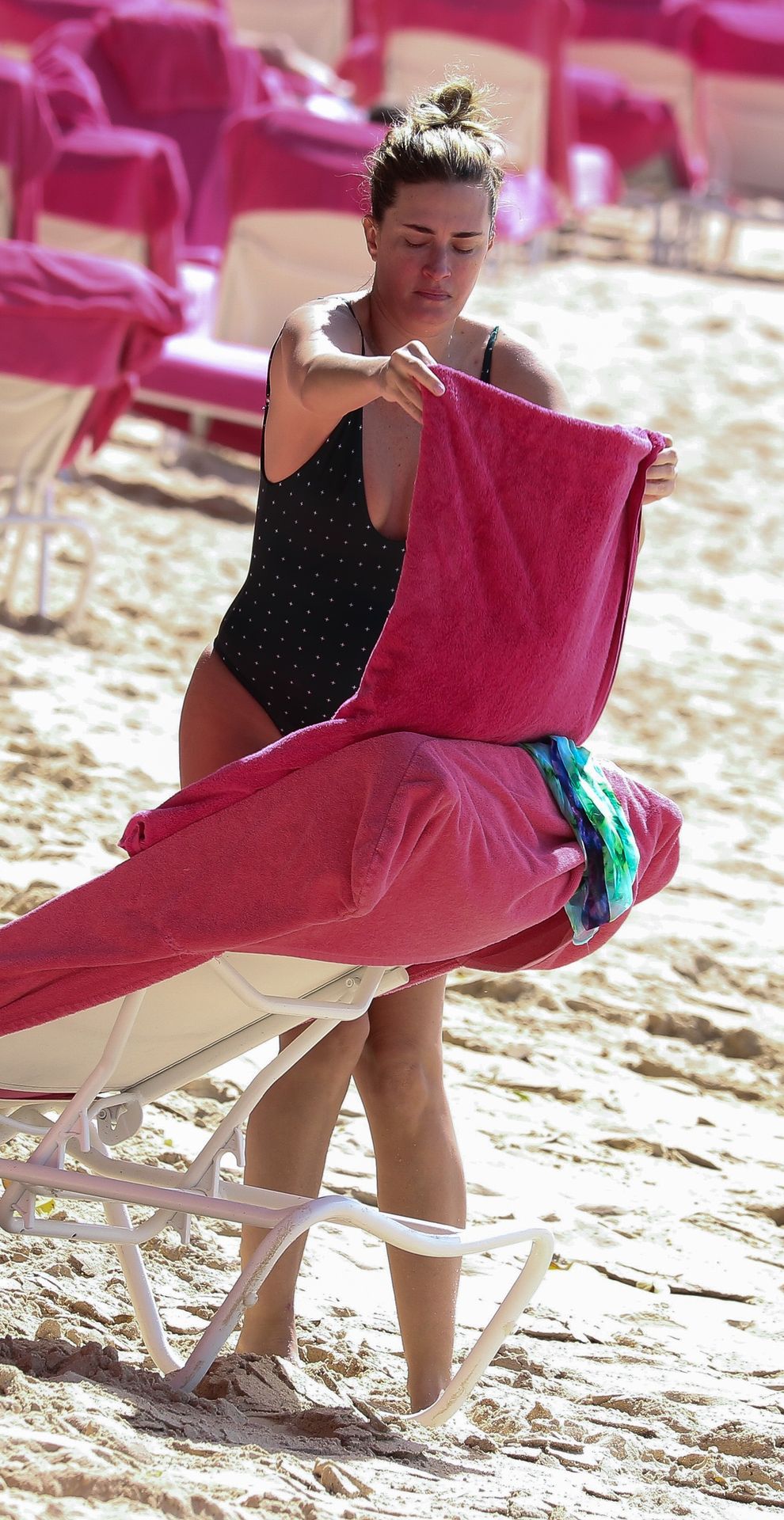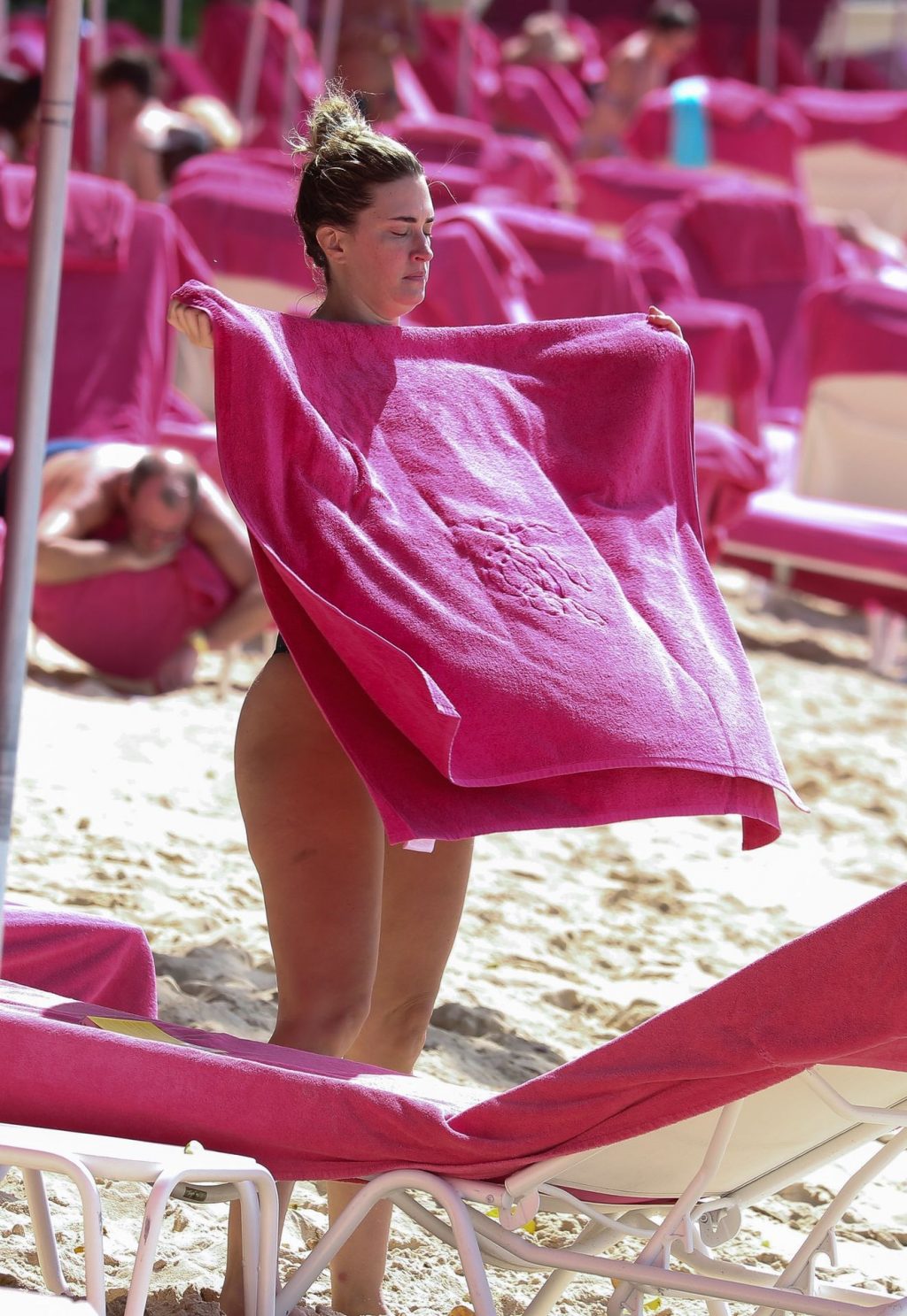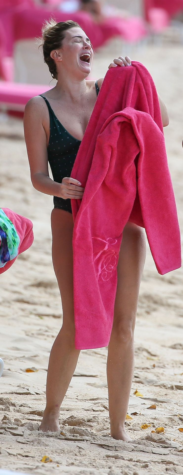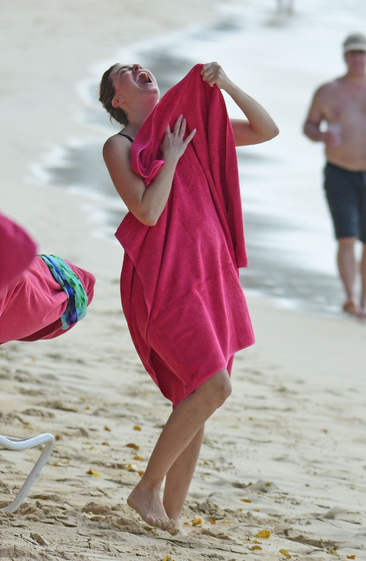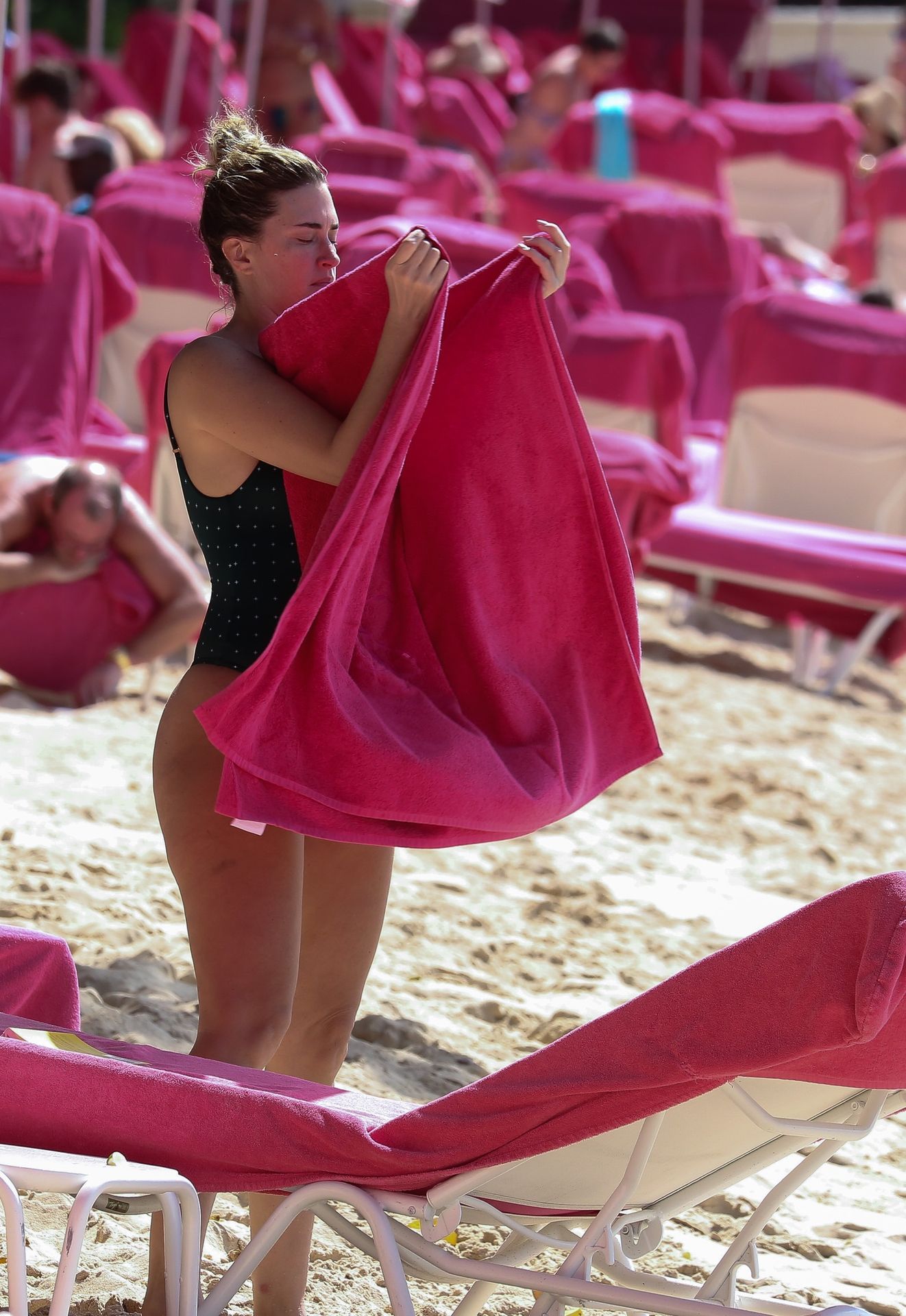 Жена Марка Уолберга Риа Дурхэм была замечена смеющейся с одним из своих детей, наслаждаясь пляжем возле отеля Sandy Lane на Барбадосе, 28.12.2019. После набора веса её попа выглядит отлично.