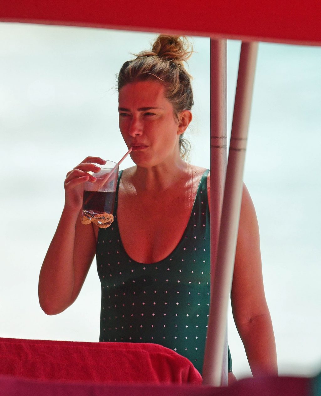 Чувак, у неё классная покачивающаяся попа, но купальник так глубоко заправлен, что двигаться хоть на дюйм, должно быть, больно. Ужас, пятна на этом бедняге после — серьёзная проблема.