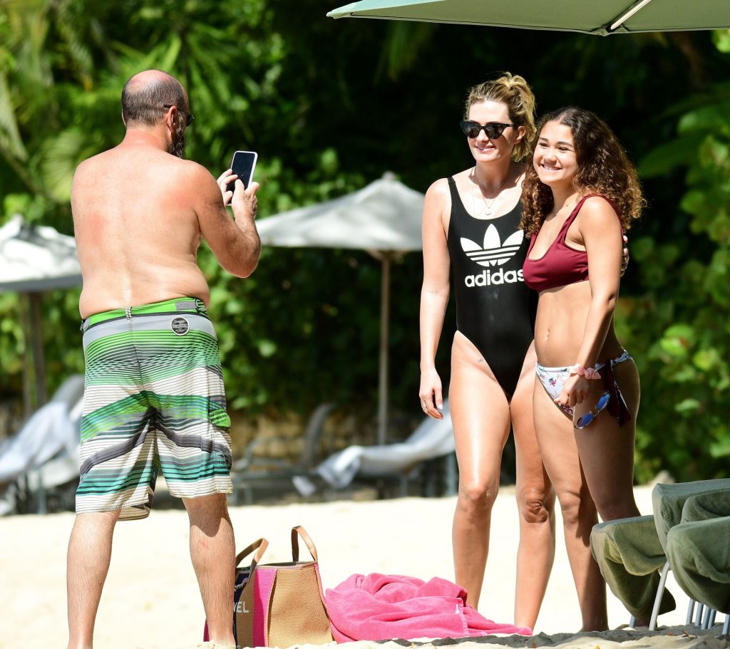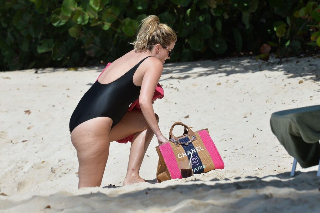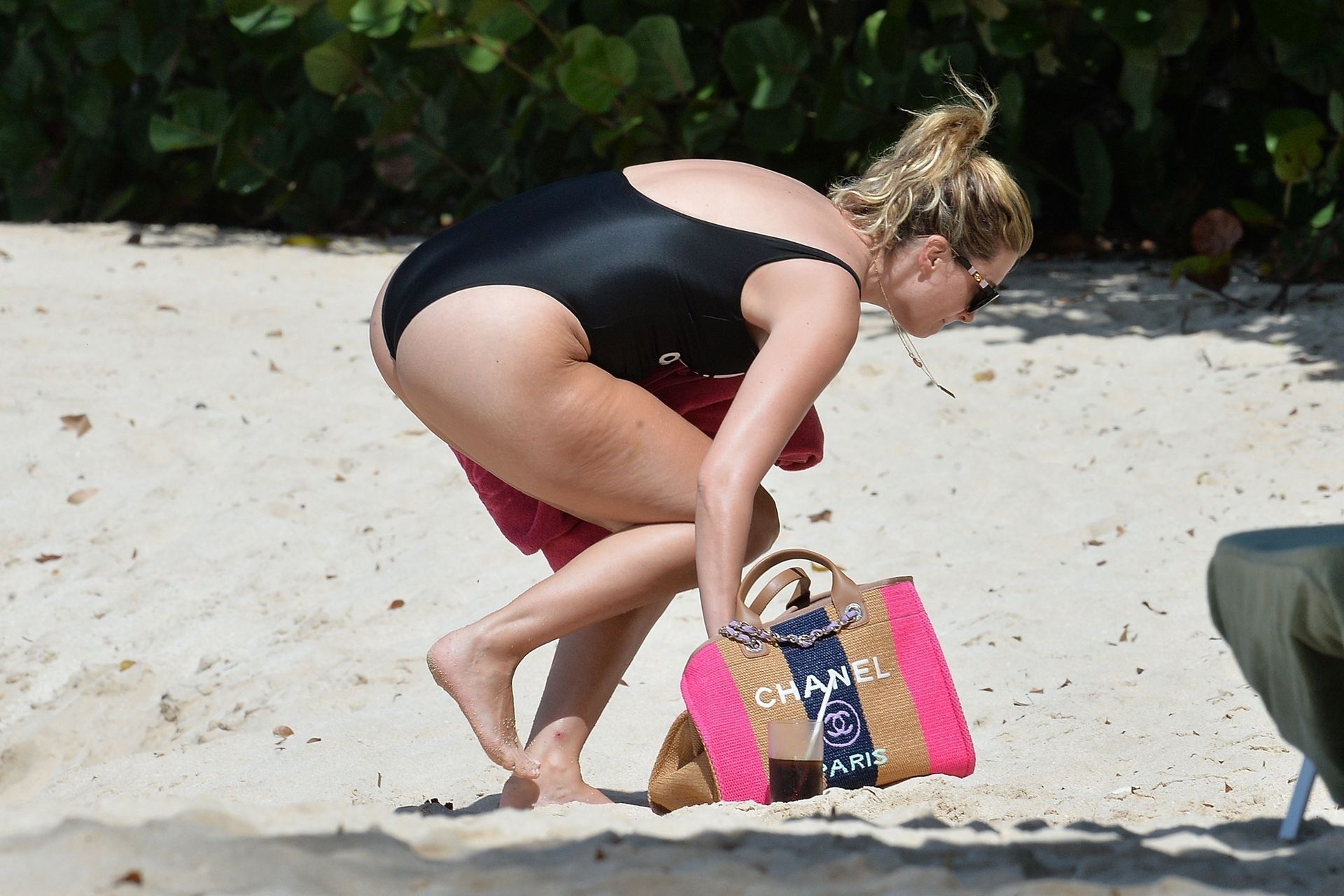 Жена американского актера Марка Уолберга, 41-летняя модель Риа Дурхэм выглядит потрясающе, демонстрируя свои сенсационные изгибы в черном купальнике, на фото она наслаждается зимними каникулами на пляже в Барбадосе, 30.12.2019.
