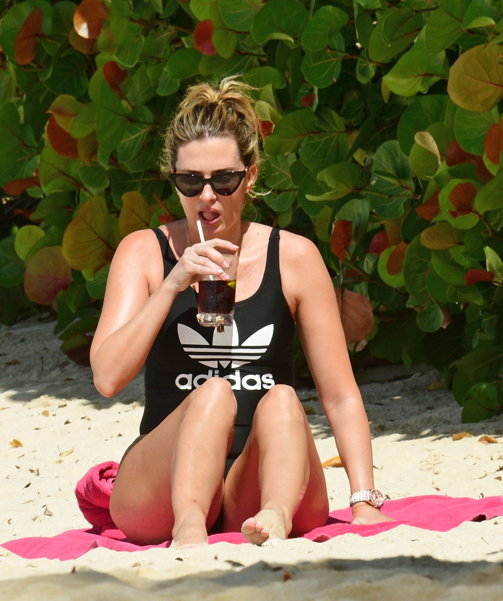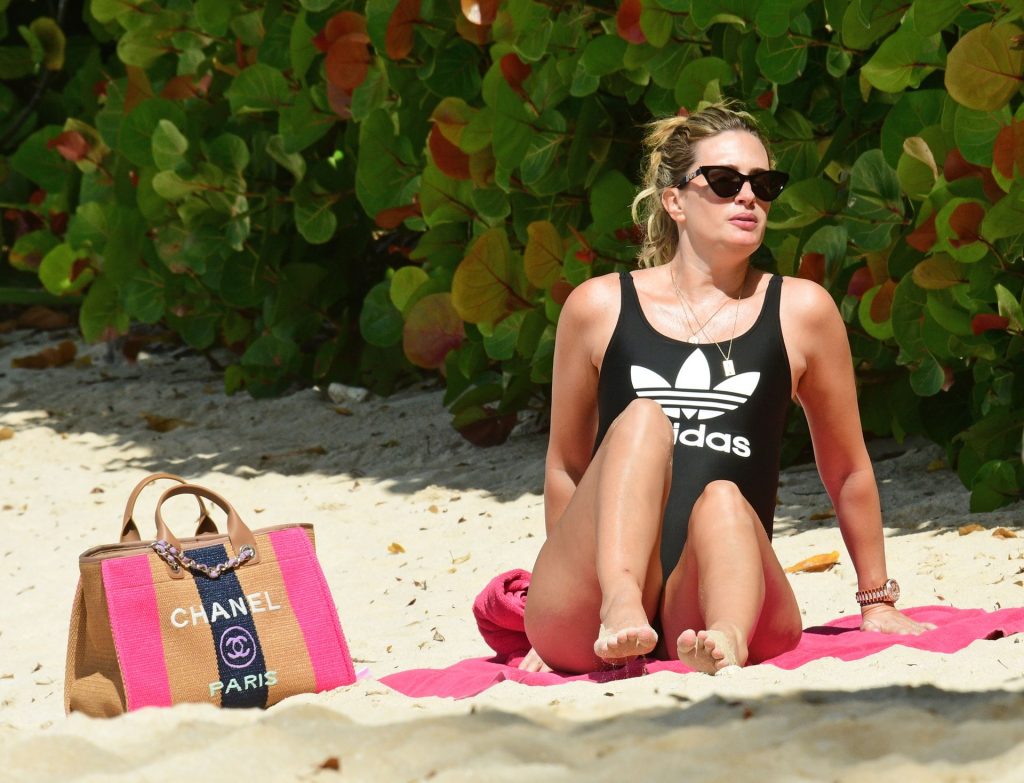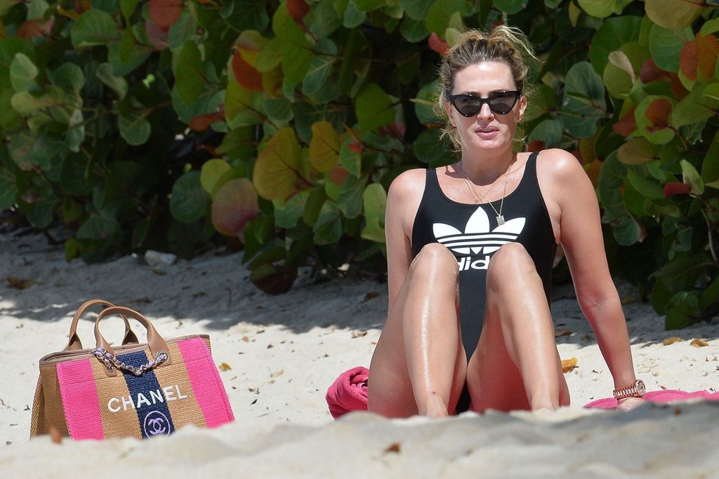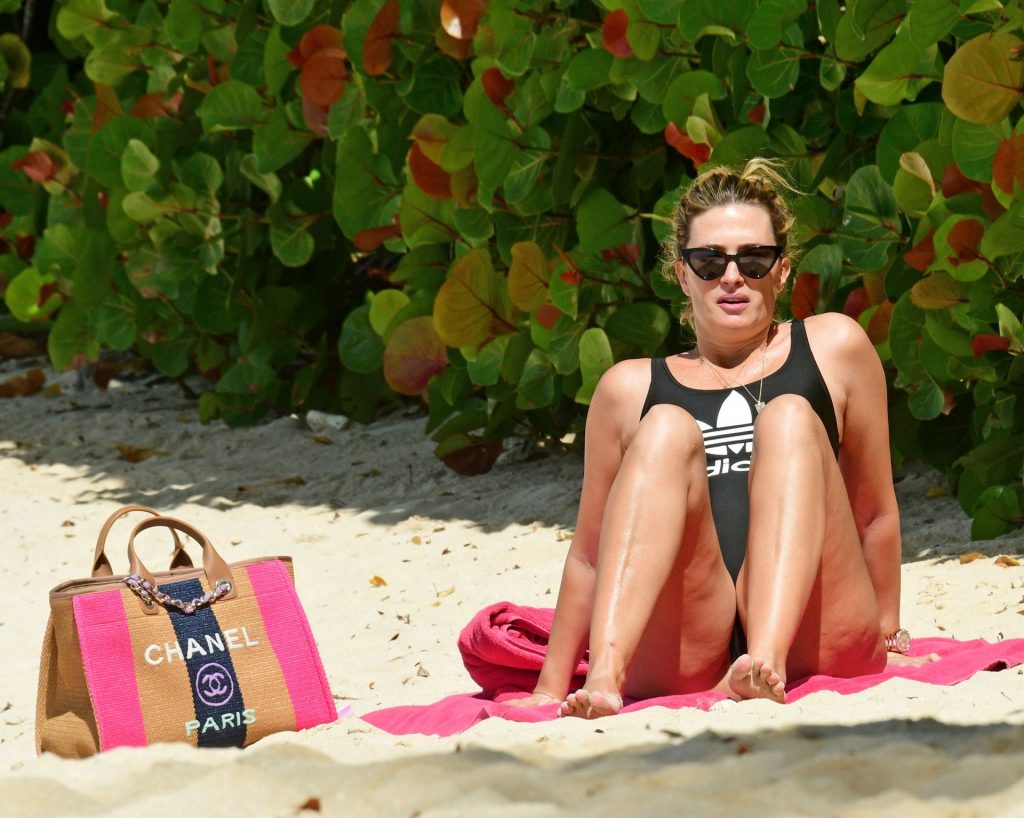 Жена американского актера Марка Уолберга, 41-летняя модель Риа Дурхэм выглядит потрясающе, демонстрируя свои сенсационные изгибы в черном купальнике, на фото она наслаждается зимними каникулами на пляже в Барбадосе, 30.12.2019.