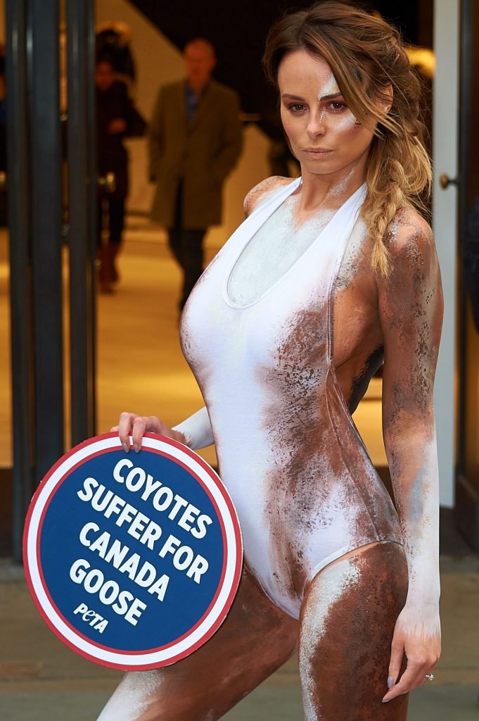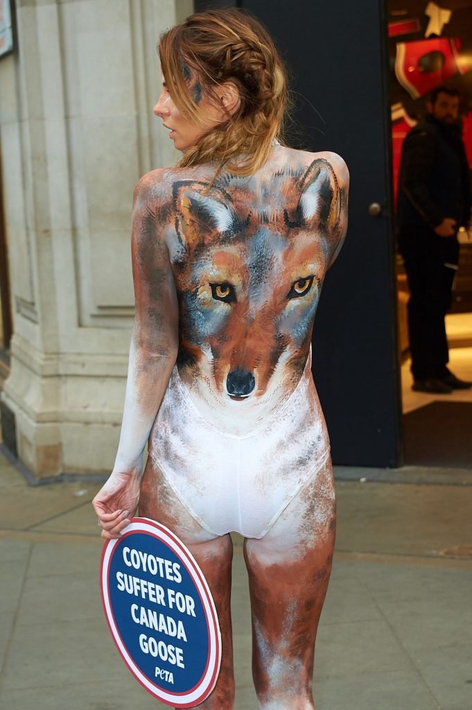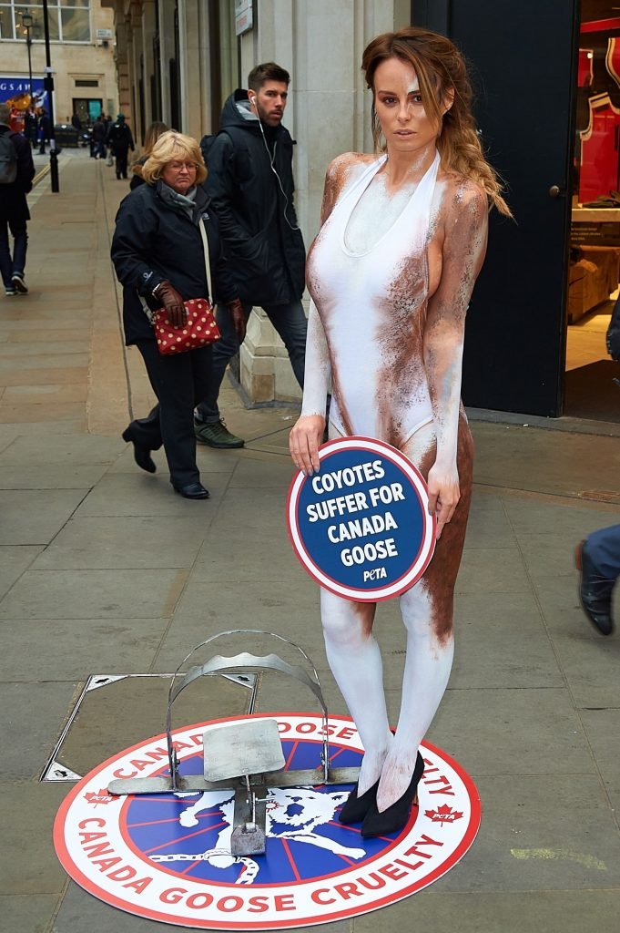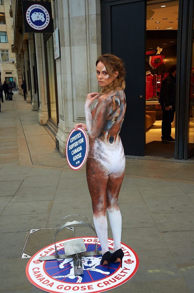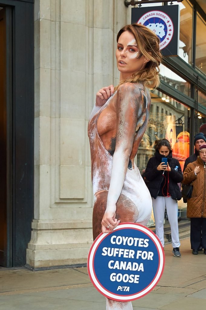 Гламурная модель Риан Сагден, 31 год, позирует для новой кампании PETA в Лондоне, 29.11.2017.