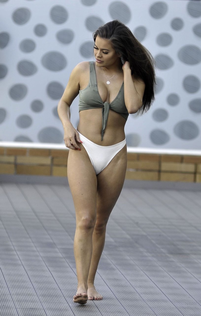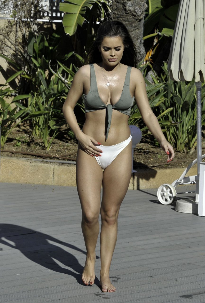Звезда 9 сезона сериала “Ex on the Beach” (2018), Рианна Саксби, вырывается из зелёного бикини во время сольного испанского отдыха, лежа у бассейна (2019).