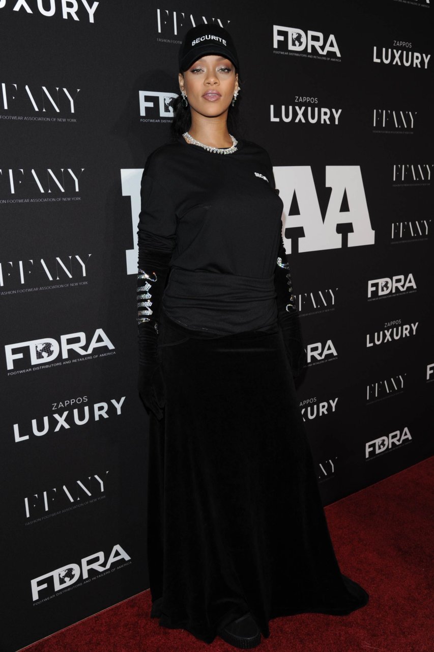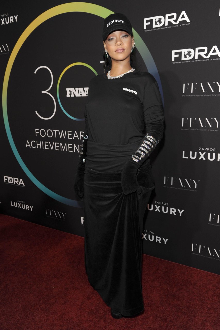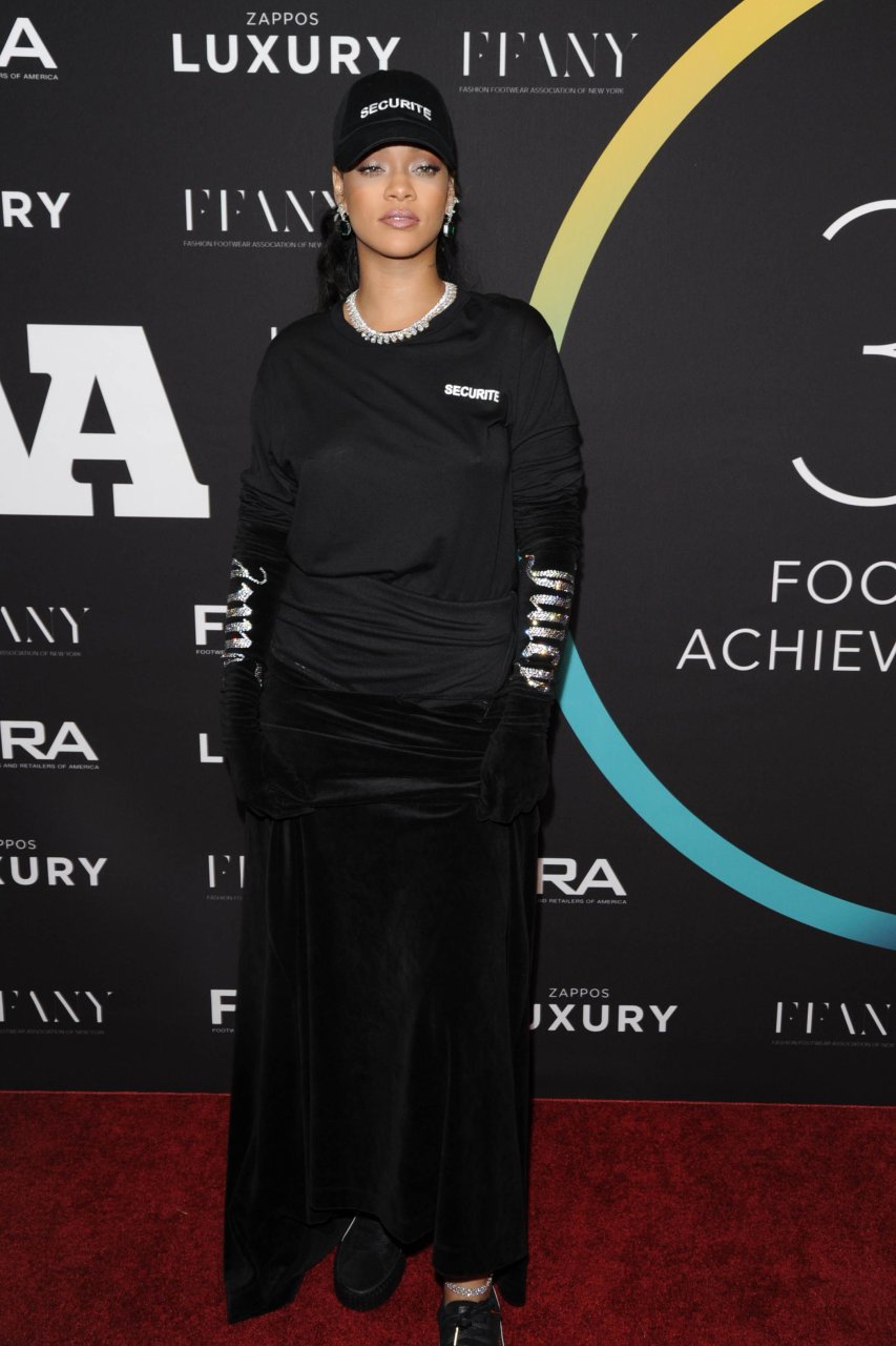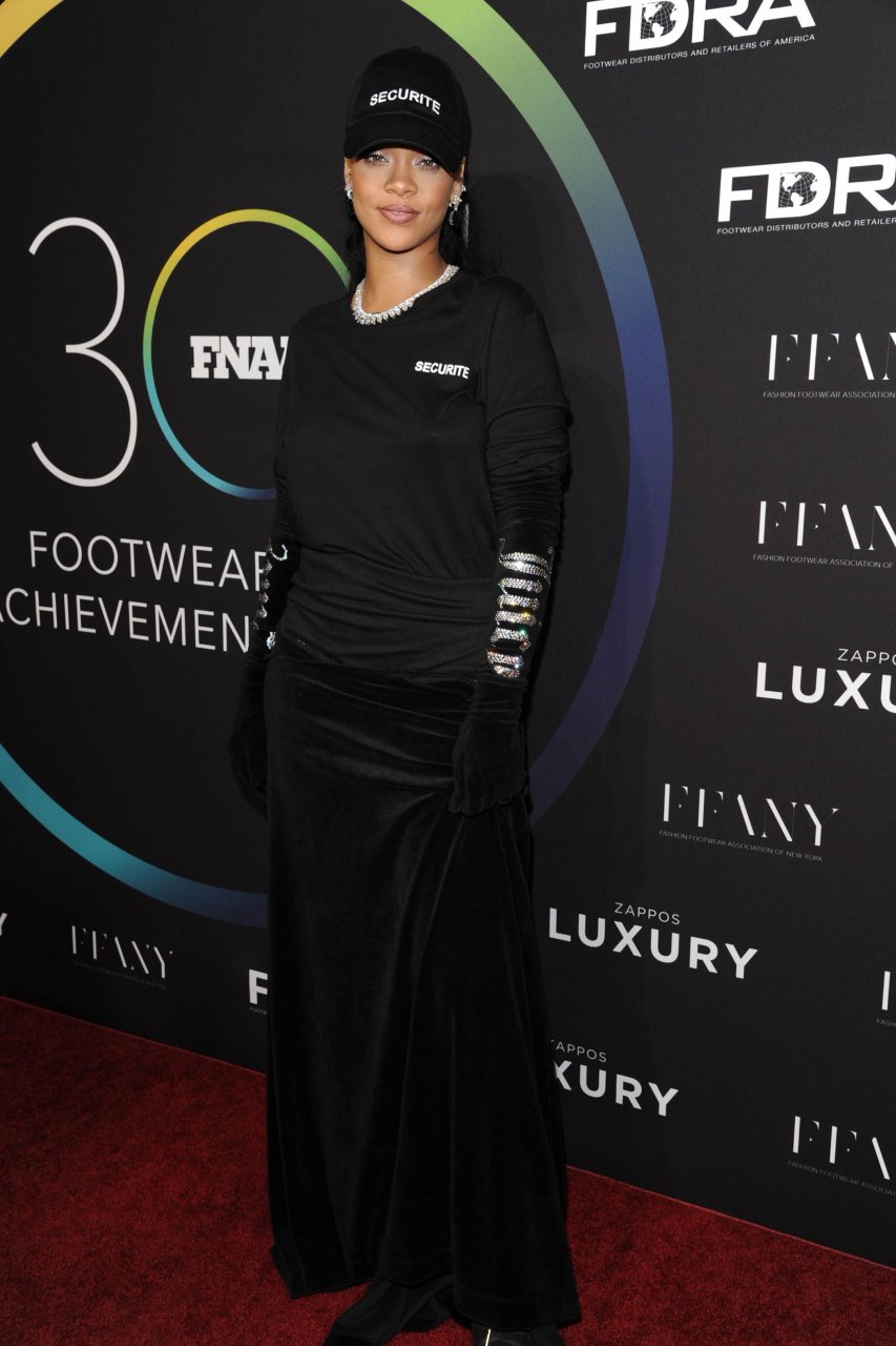 Рианна одета в форму охранника на 30-й церемонии вручения наград FN Achievement Awards в Нью-Йорке, 29.11.2016. Робин Рианна Фенти — барбадосская певица и автор песен. Возраст: 28 лет (20 февраля 1988).