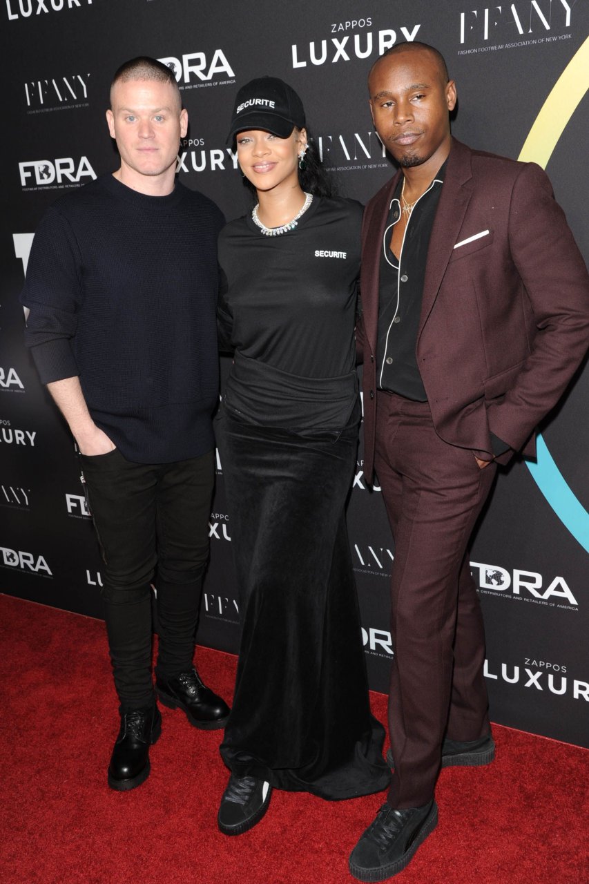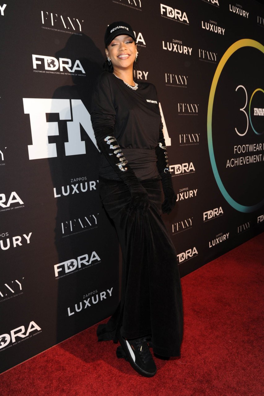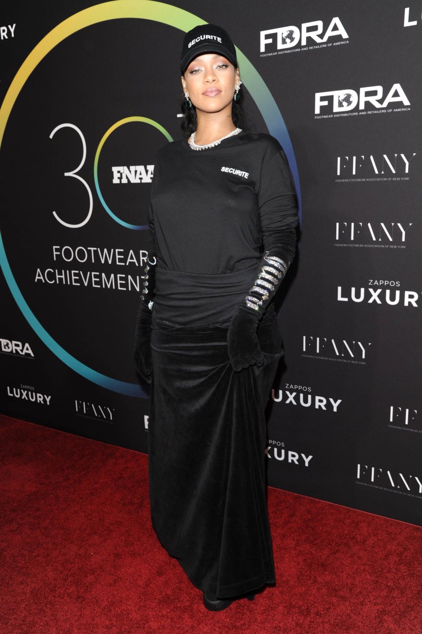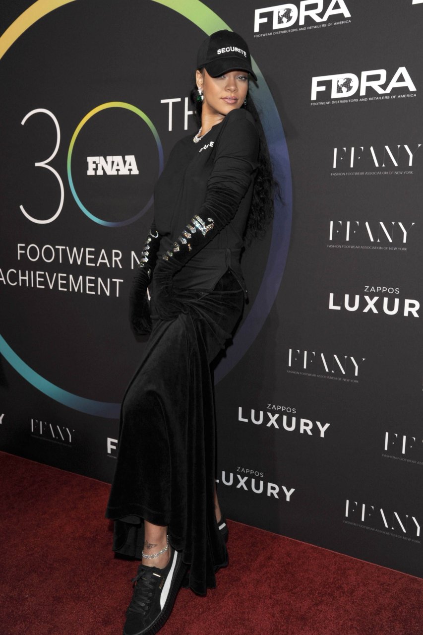 Рианна одета в форму охранника на 30-й церемонии вручения наград FN Achievement Awards в Нью-Йорке, 29.11.2016. Робин Рианна Фенти — барбадосская певица и автор песен. Возраст: 28 лет (20 февраля 1988).