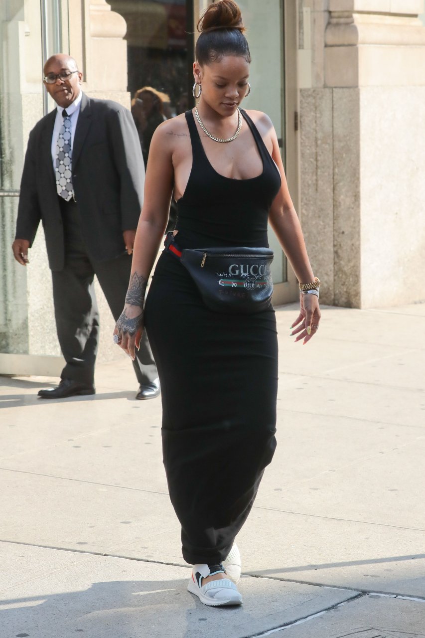 Кто-нибудь может сказать Ри, чтобы она надела штаны, чтобы нормально ходить? И ещё, как ей удалось снова сделать грудь округлой после того, как она надела ту жёлтую рубашку на запуске Fenty Beauty на NYFW?