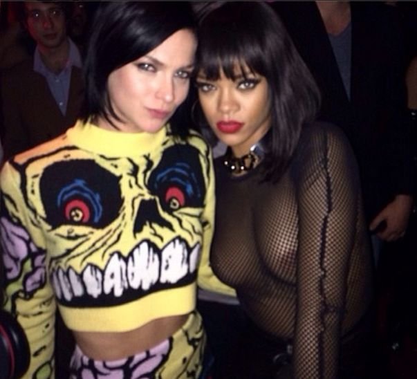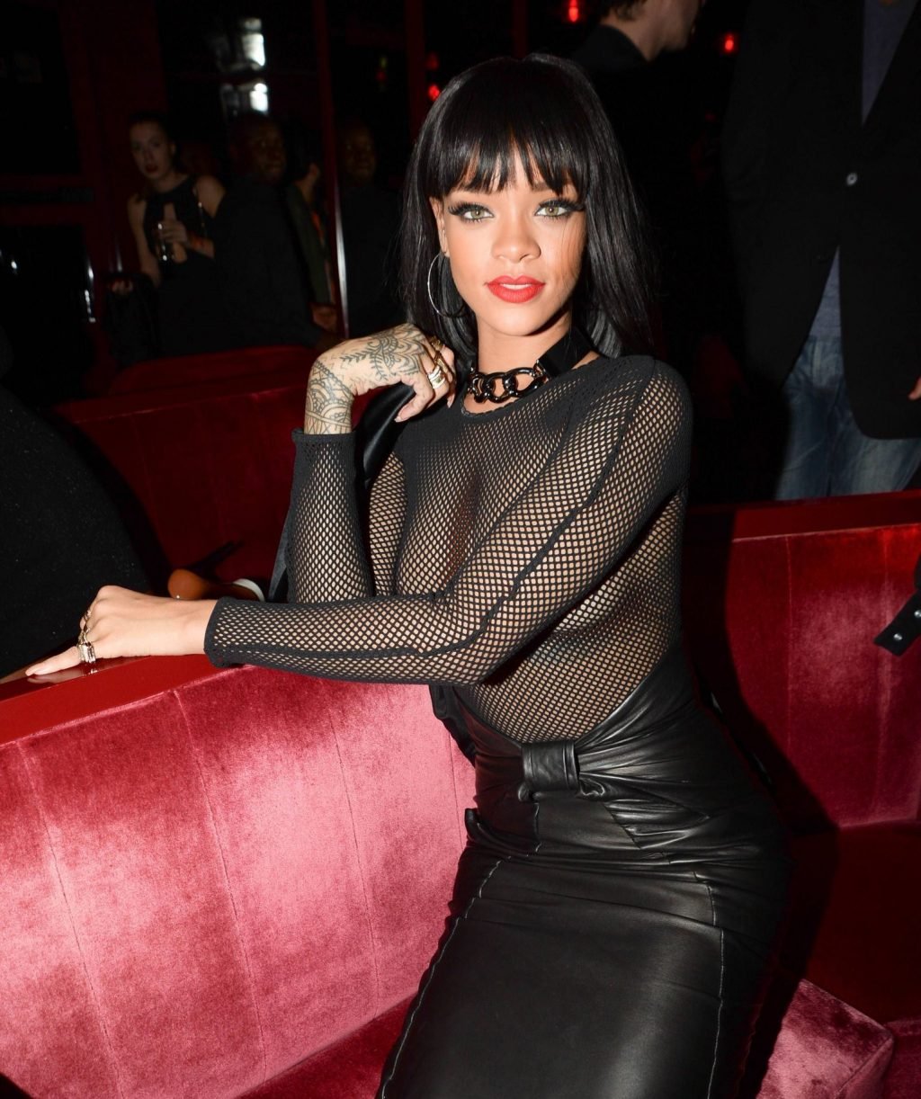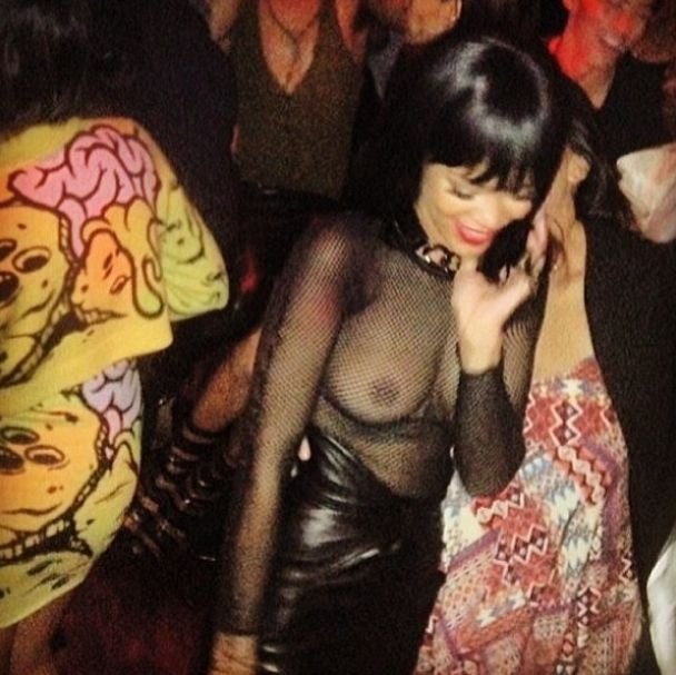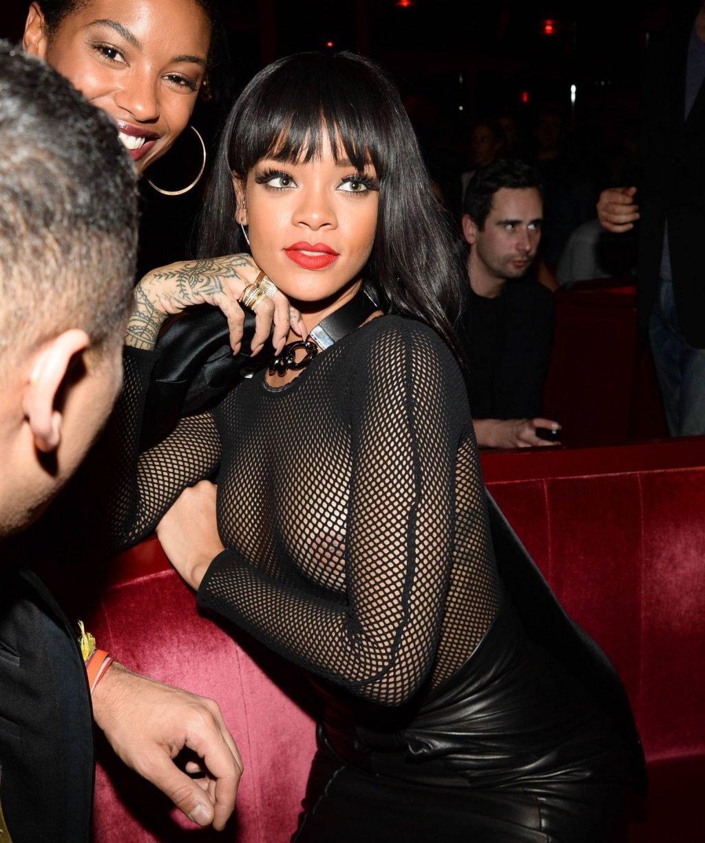 Певица Рианна показала свои сиськи на вечеринке Balmain после показа в рамках Парижской недели моды, 15.09.2014.