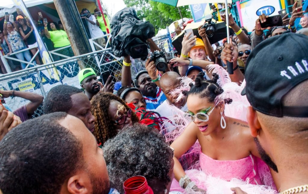 Певица Рианна замечена в розовом платье во время парада «День Кадумент» в приходе Сент-Майкл, Барбадос, 08/05/2019.