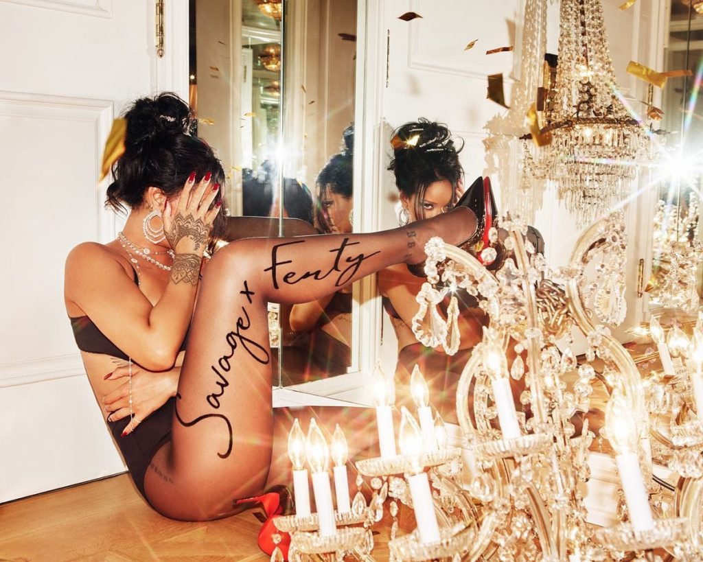 Дизайнер моды и поп-звезда Рианна позирует во время фотосессии Fenty Savage X (2019). Посмотрите разницу между фотографиями и видео.