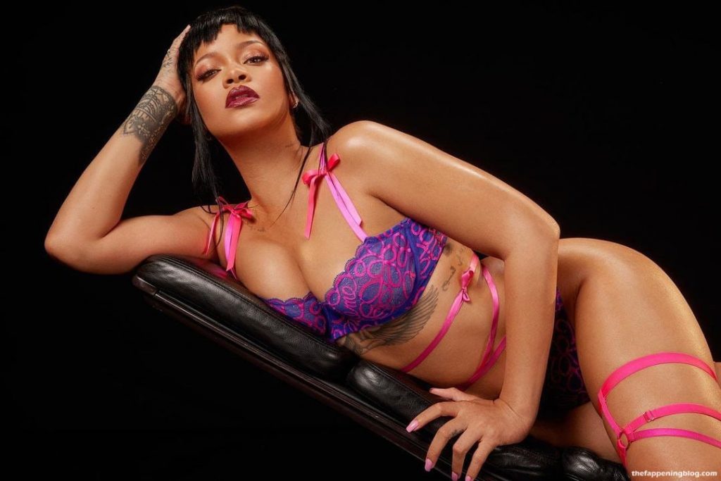 Певица Рианна демонстрирует очень дерзкий образ в фиолетовом и розовом белье, продвигая свою последнюю коллекцию Savage X Fenty в Твиттере, 31.08.2021.