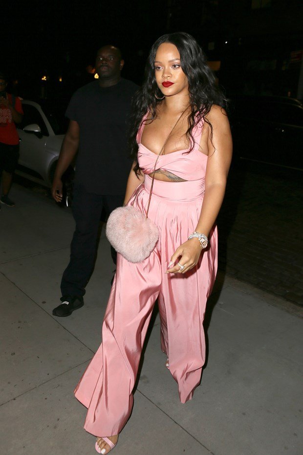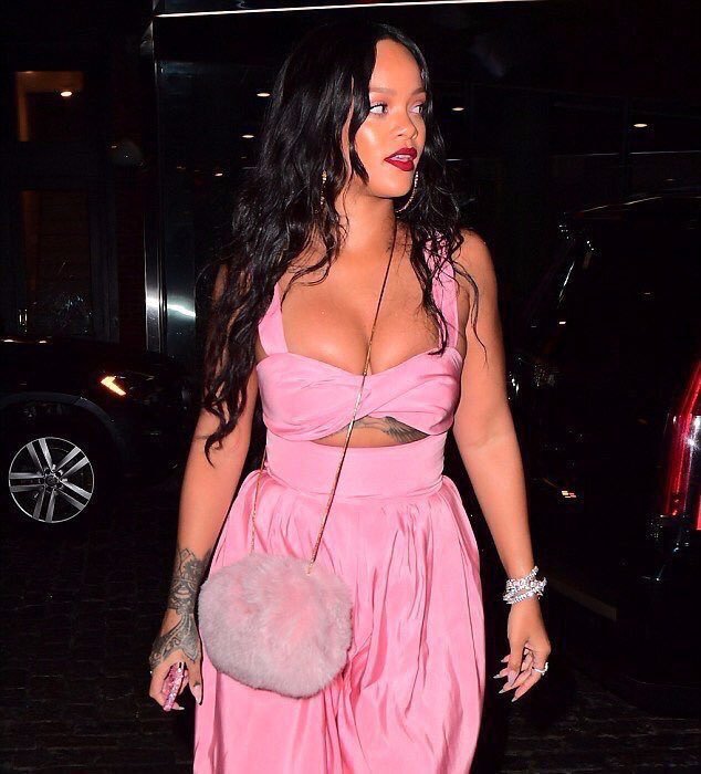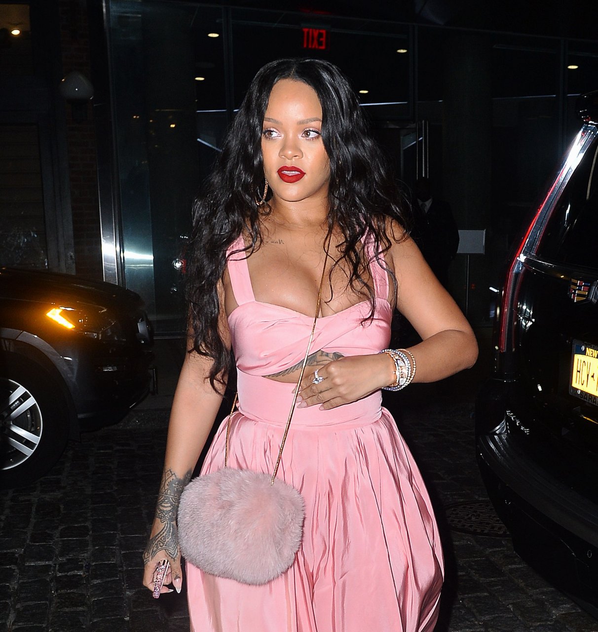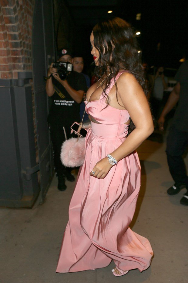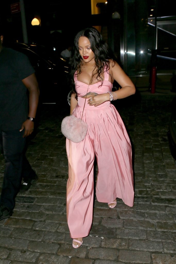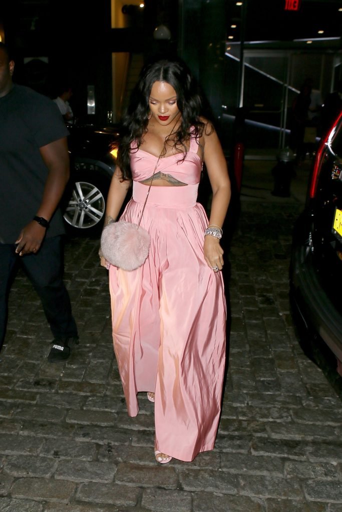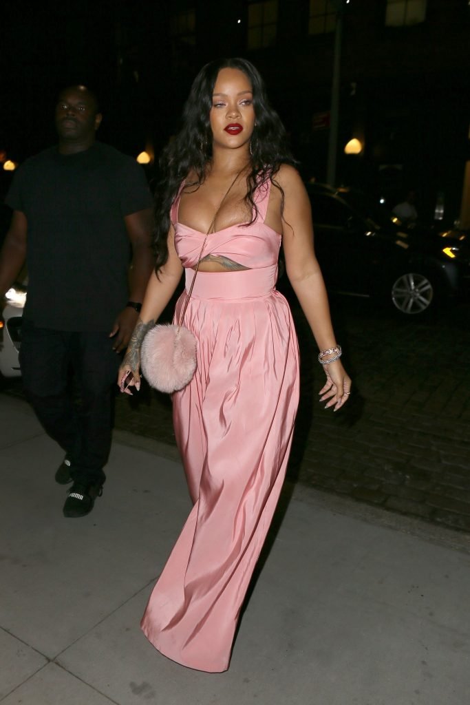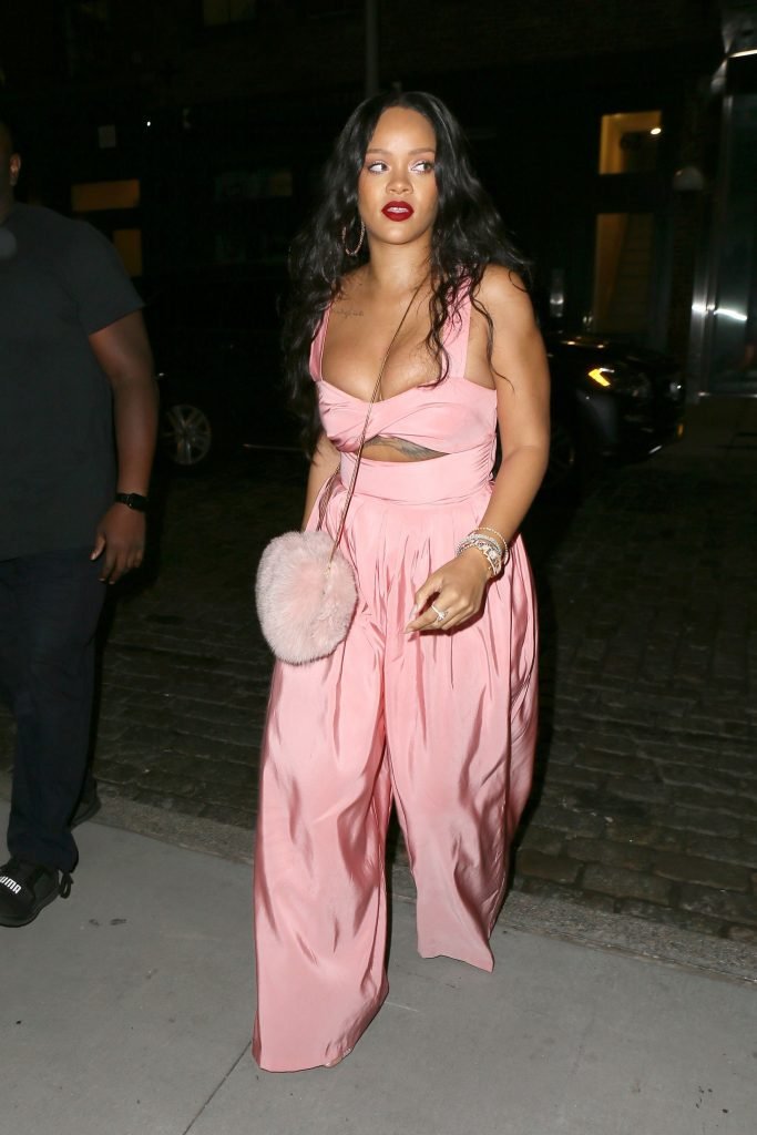 Rihanna демонстрирует обильное декольте и немного больше, когда приезжает в Дамбо, Бруклин на ужин, 16.09.2017. Рианна — барбадосская певица, автор песен, актриса. (Bates Motel). Возраст: 29.