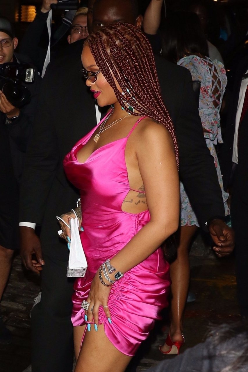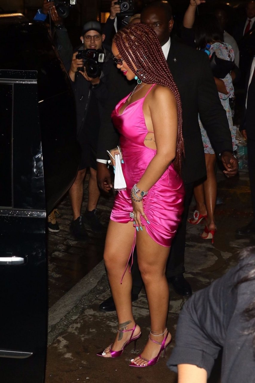 Певица Рианна восхищает в розовом платье, прибывая в Cipriani в Нью-Йорке после вечеринки Fenty Pop Up, 18.06.2019.
