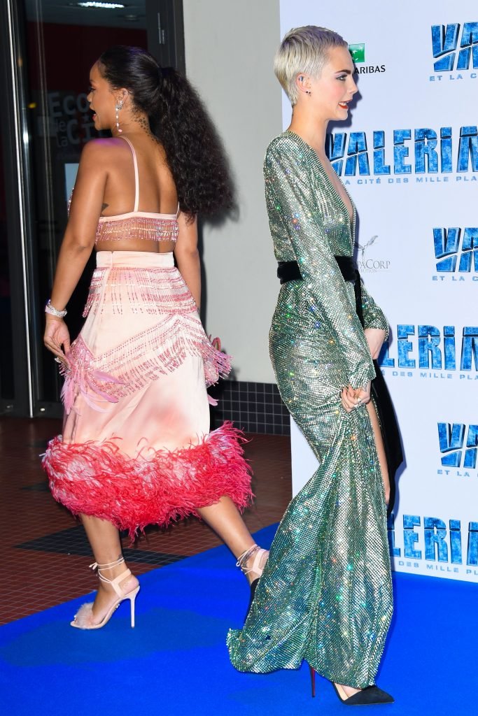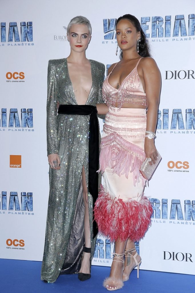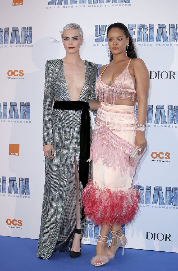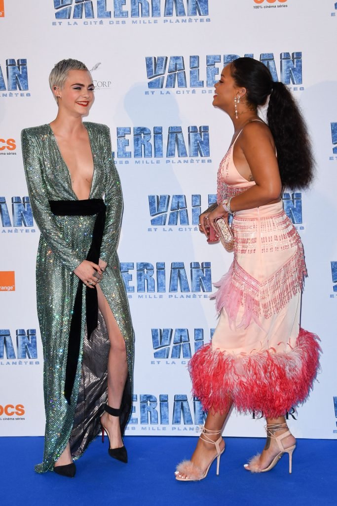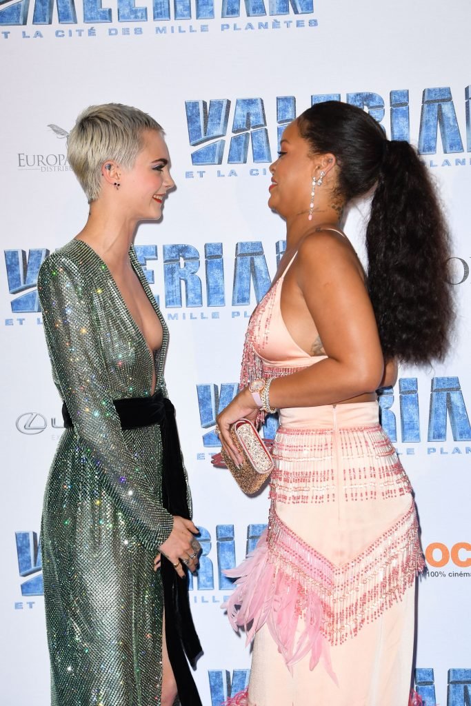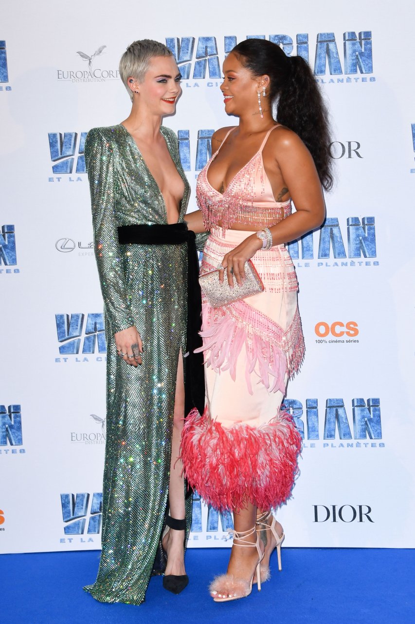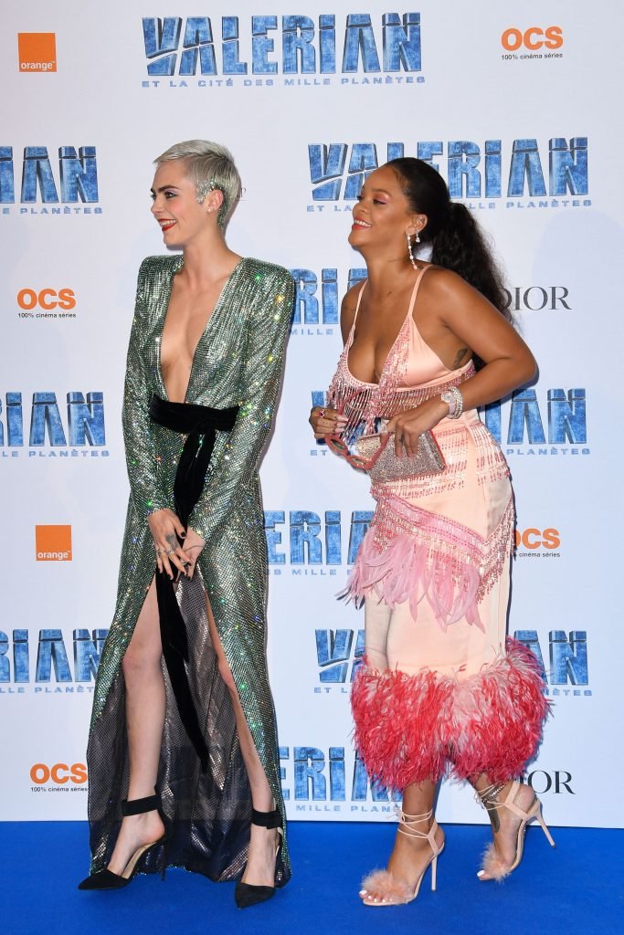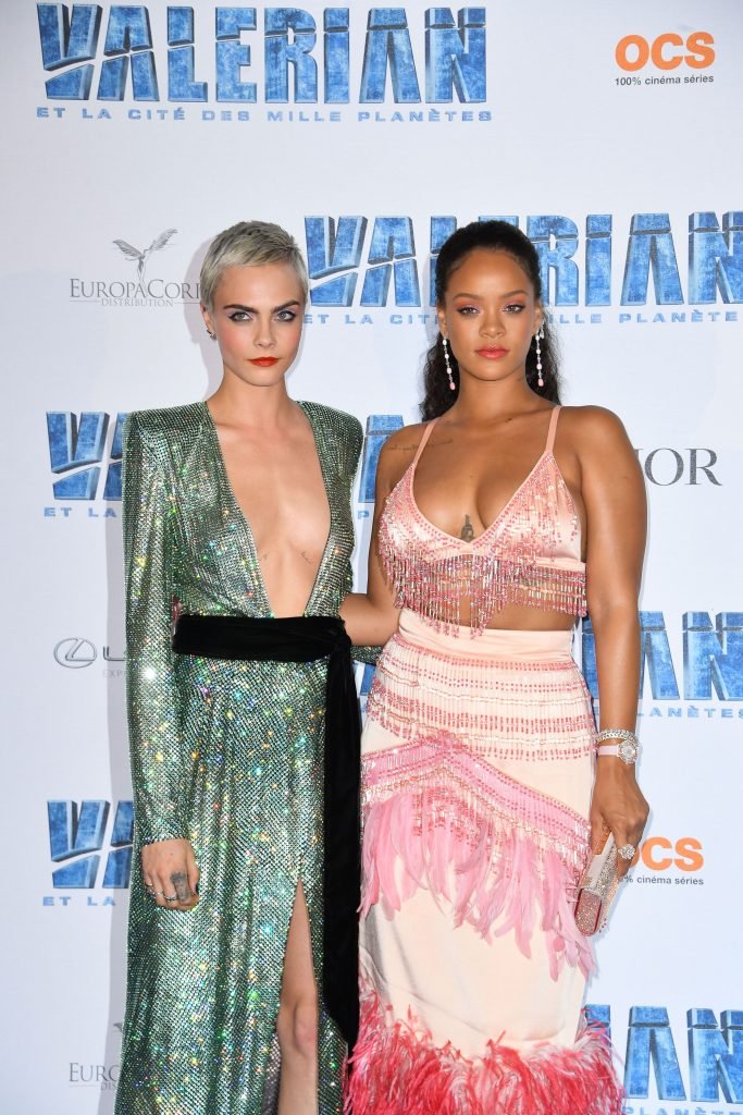 R&B певица Рианна посещает премьеру фильма «Валериан и город тысячи планет» в Париже вместе с Карой Делевинь в La Cité du Cinema, 25.07.2017.