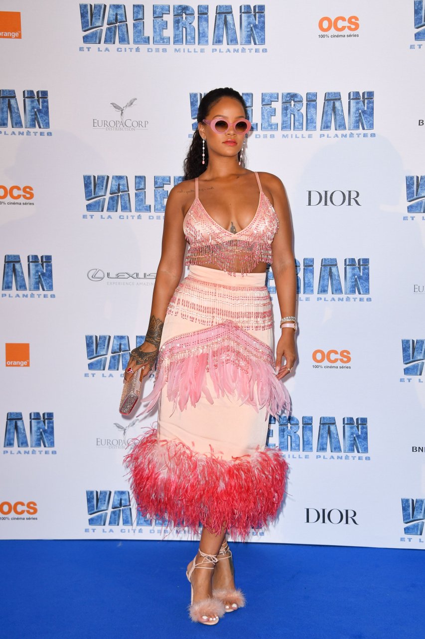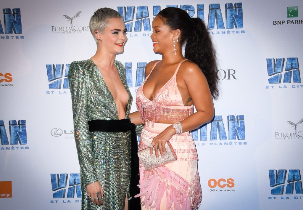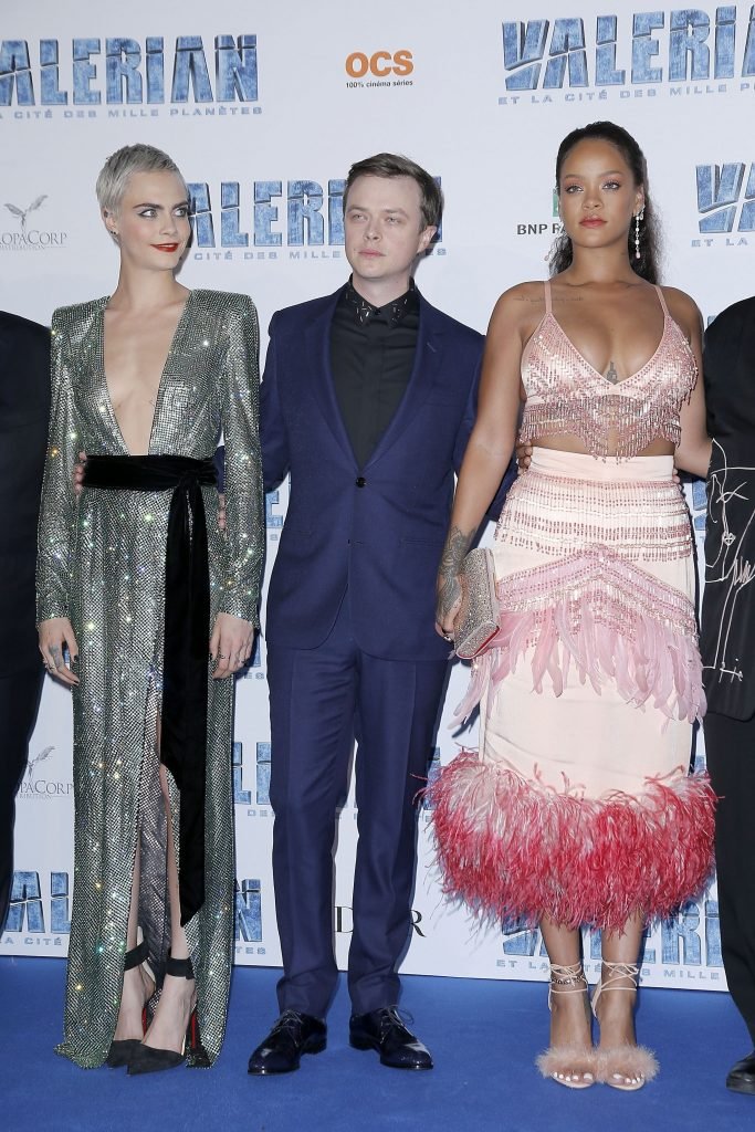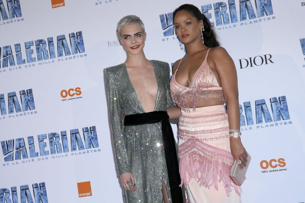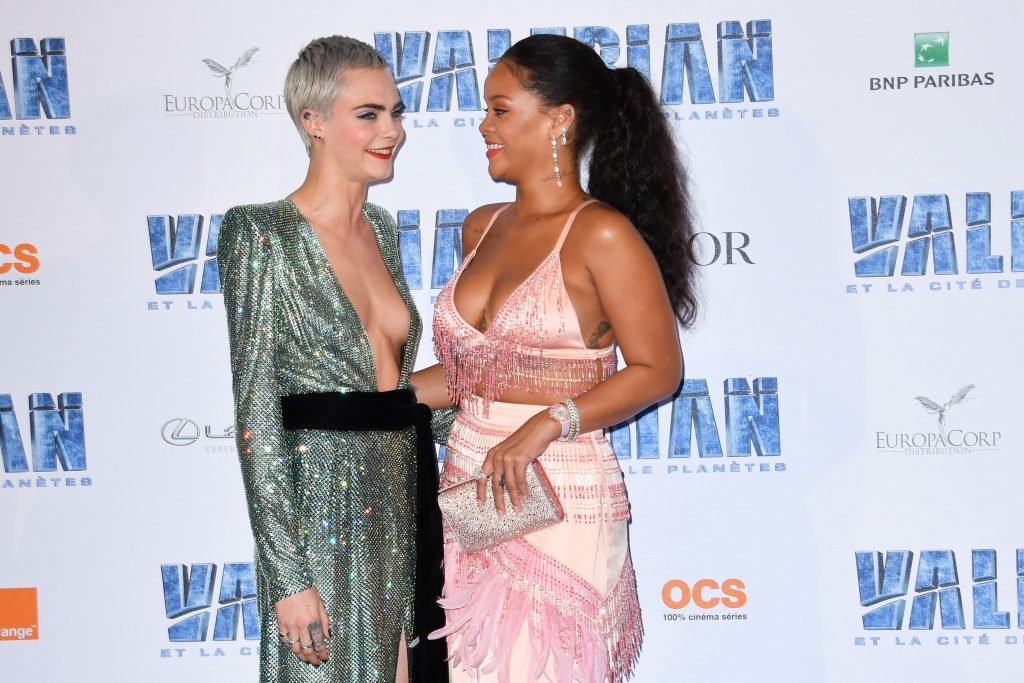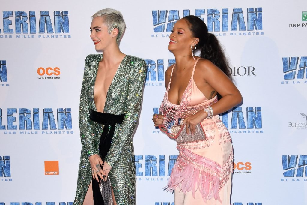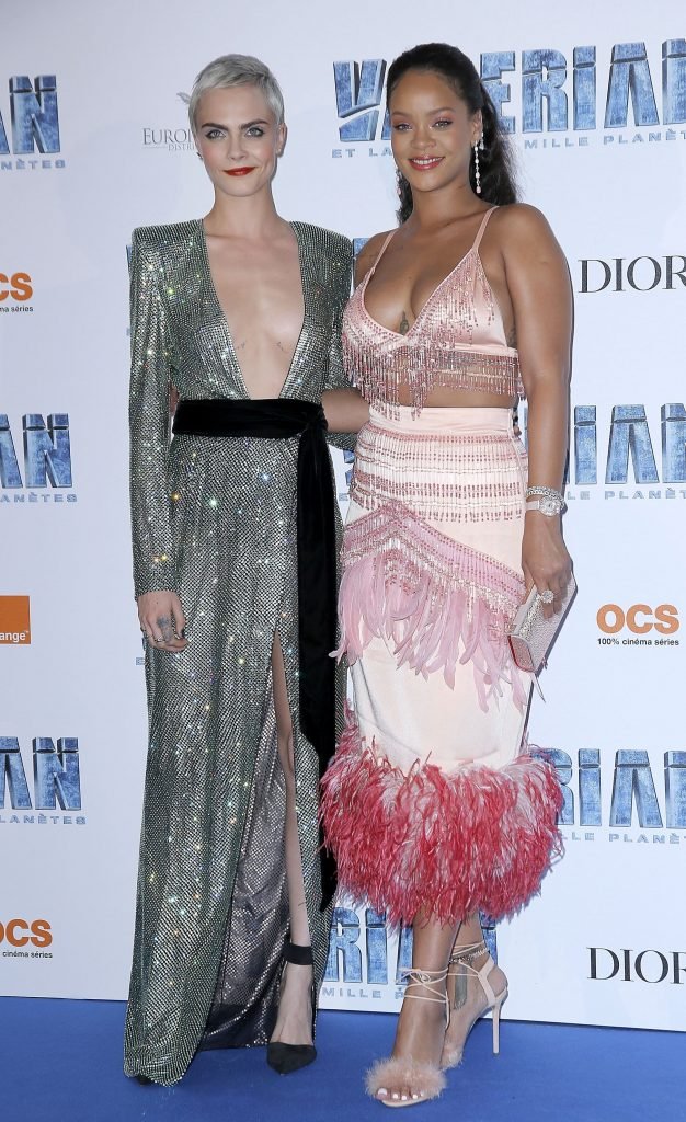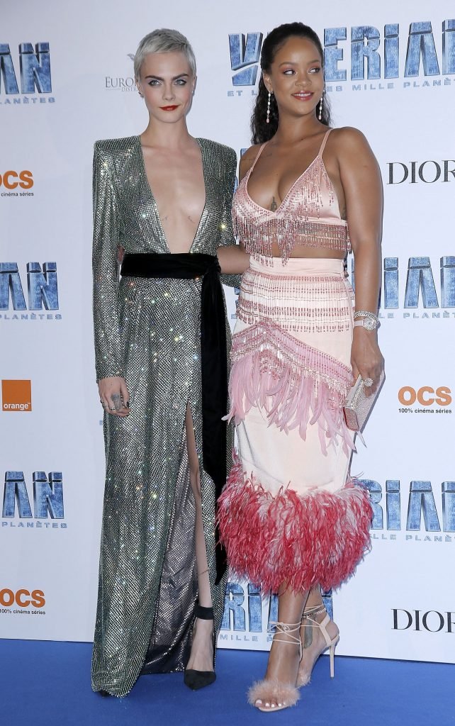 R&B певица Рианна посещает премьеру фильма «Валериан и город тысячи планет» в Париже вместе с Карой Делевинь в La Cité du Cinema, 25.07.2017.