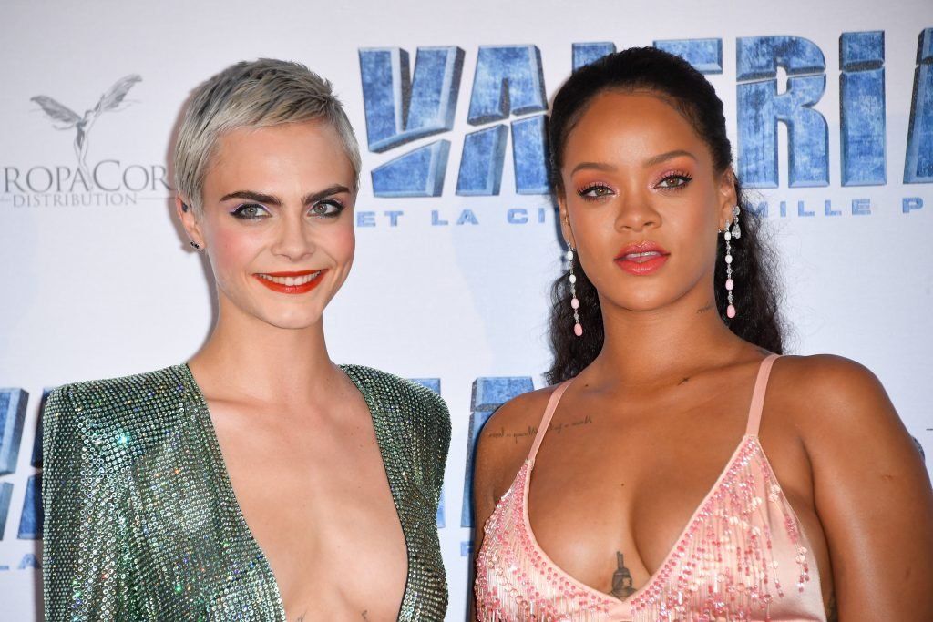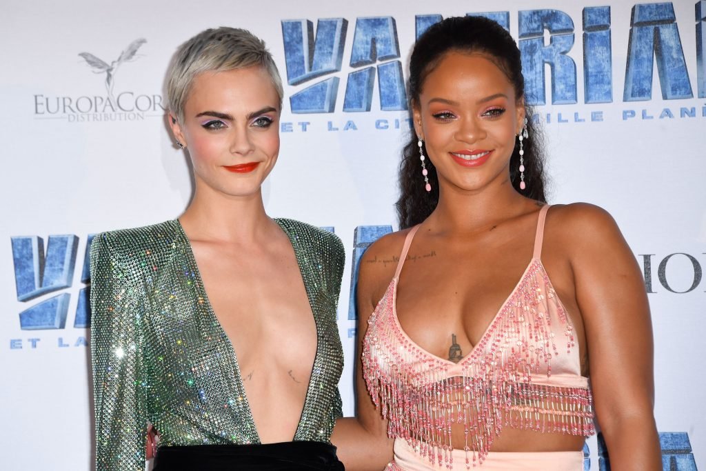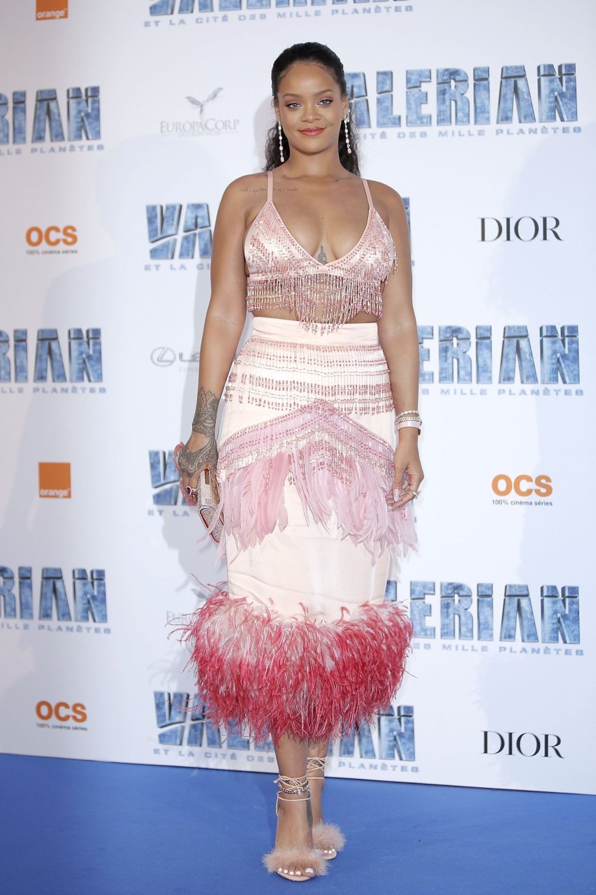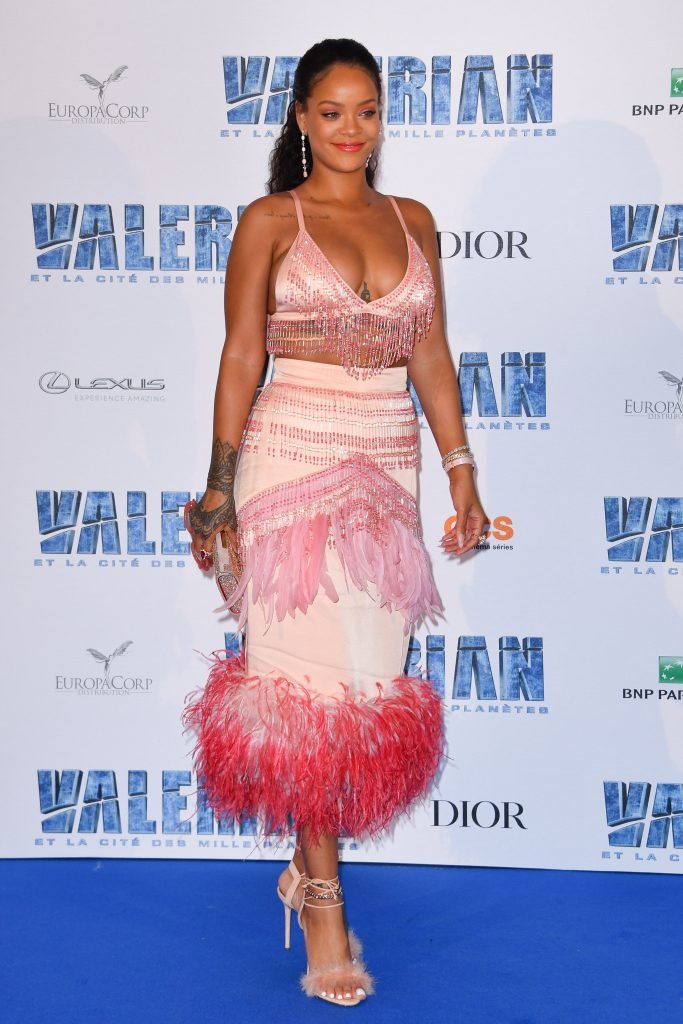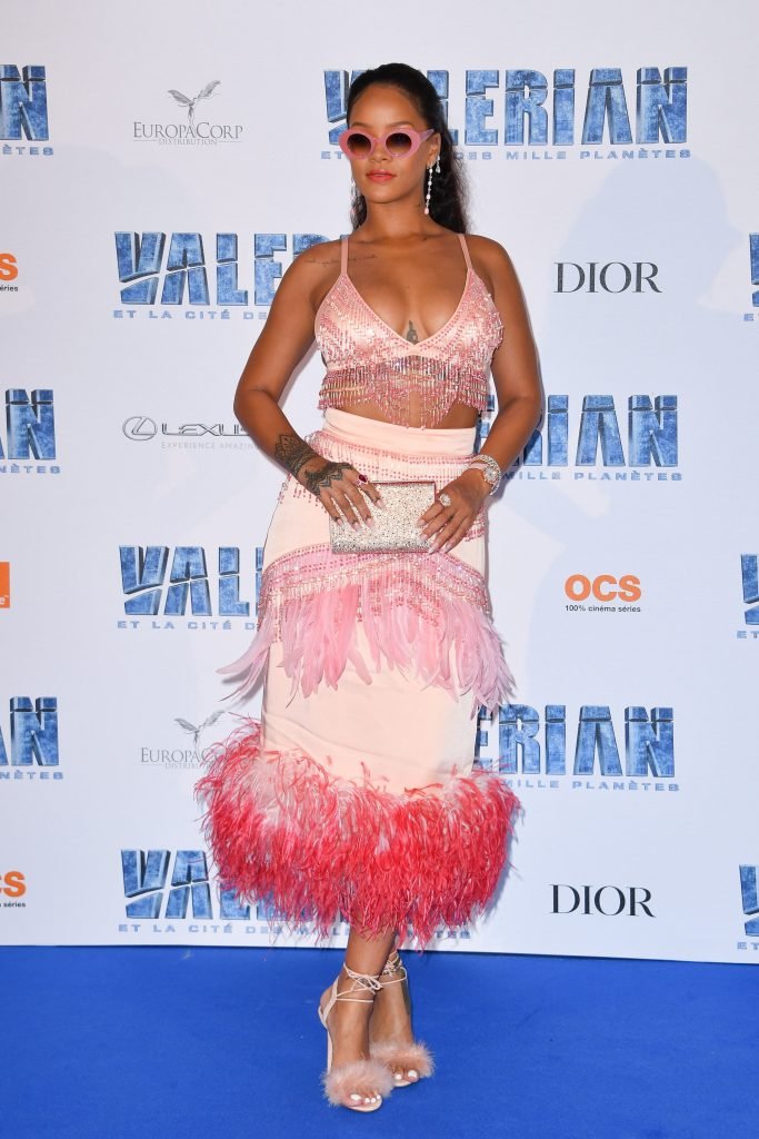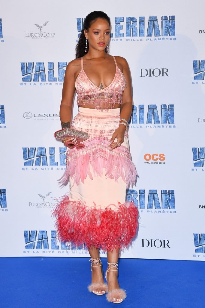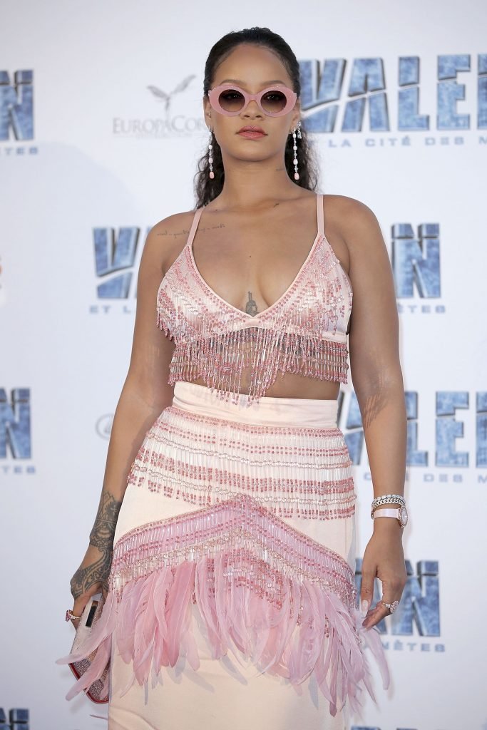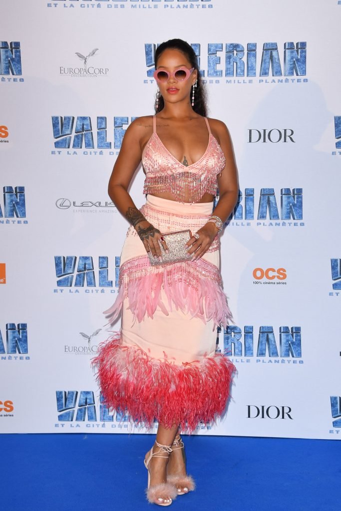 R&B певица Рианна посещает премьеру фильма «Валериан и город тысячи планет» в Париже вместе с Карой Делевинь в La Cité du Cinema, 25.07.2017.
