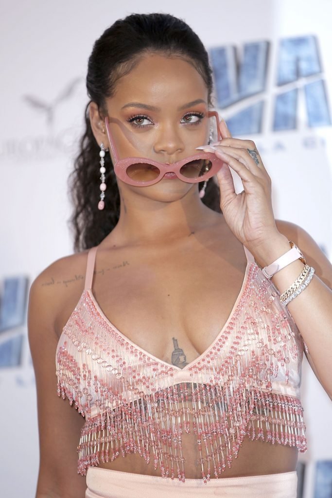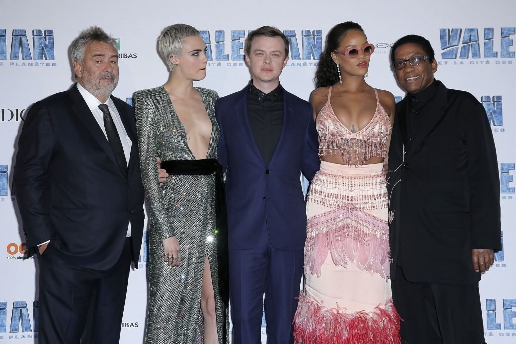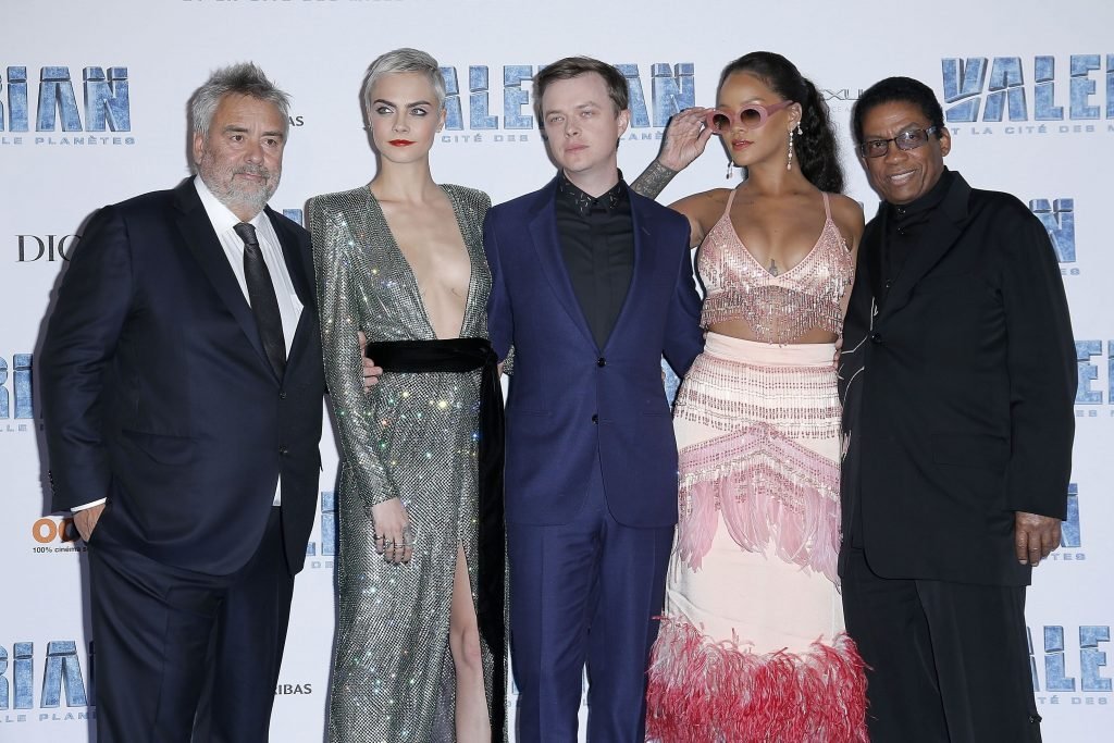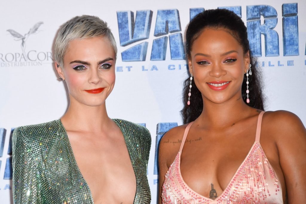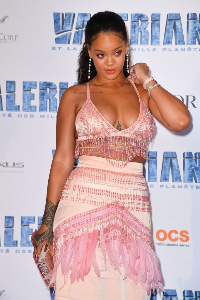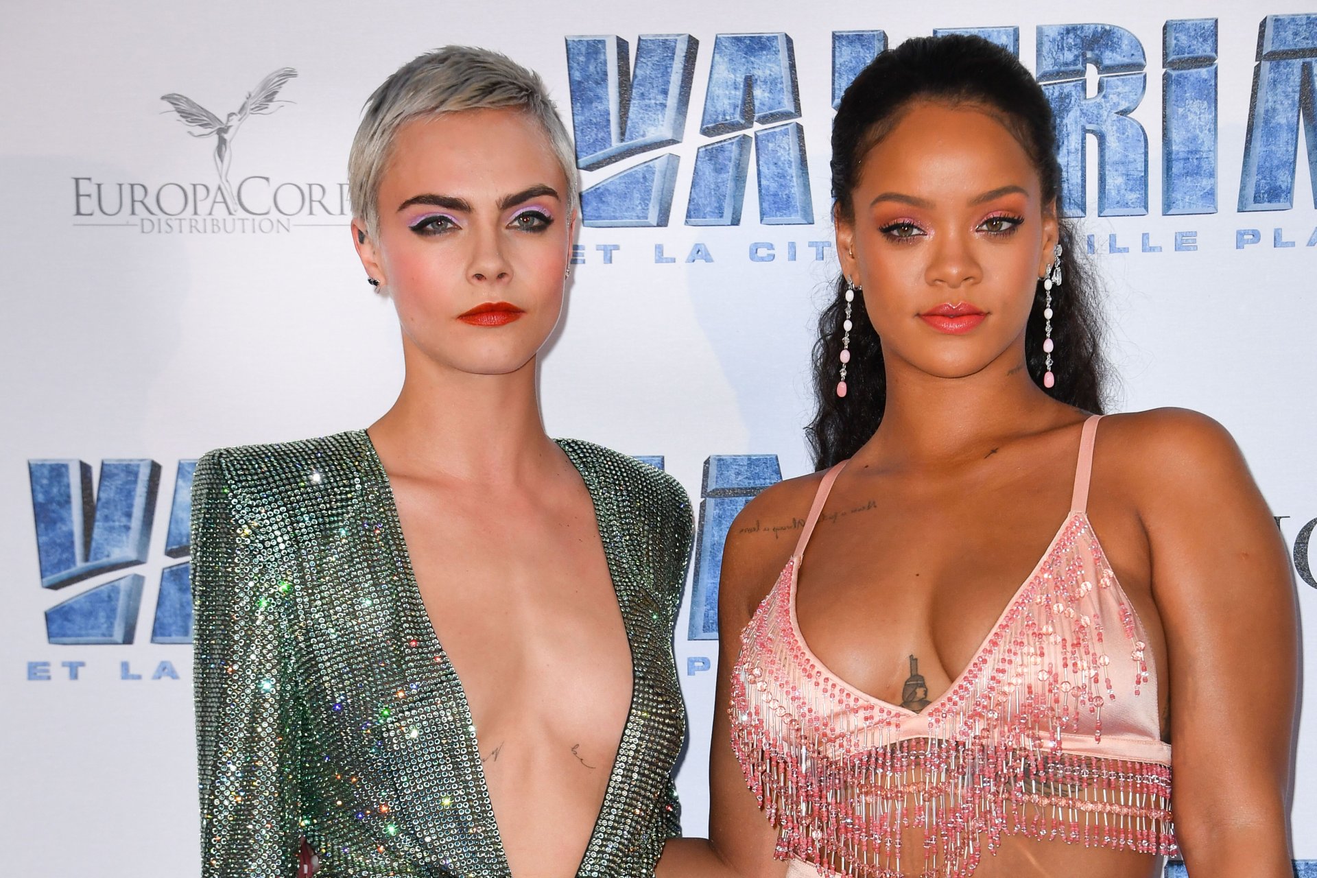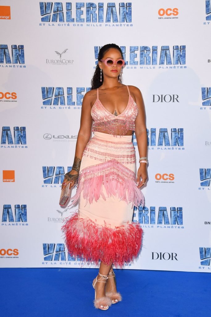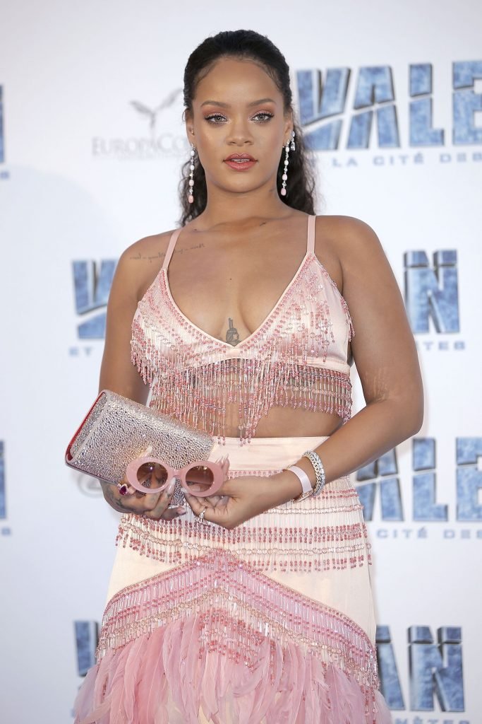 R&B певица Рианна посещает премьеру фильма «Валериан и город тысячи планет» в Париже вместе с Карой Делевинь в La Cité du Cinema, 25.07.2017.
